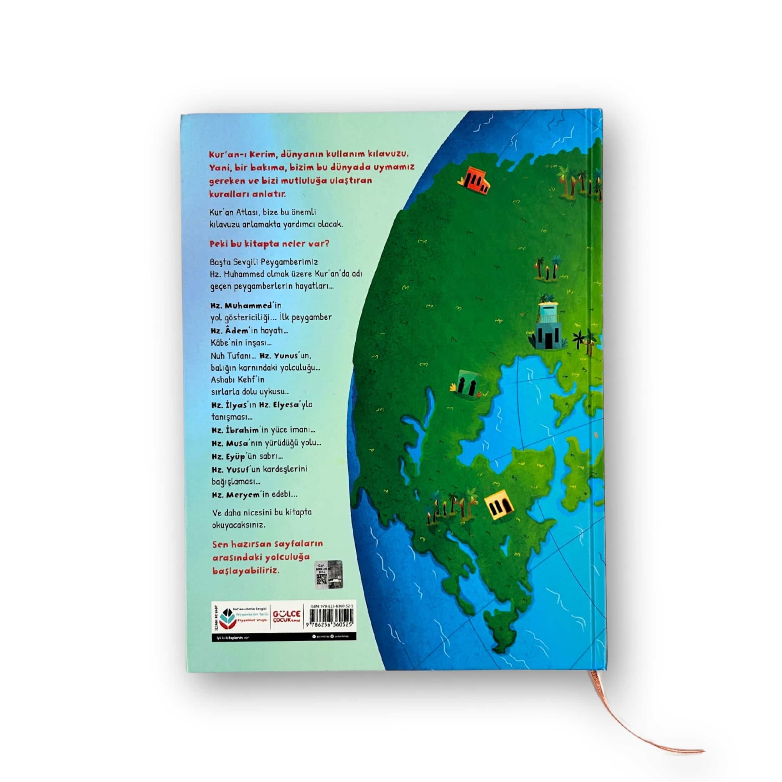 Kur’an-ı Kerim, dünyanın kullanım kılavuzu. Yani, bir bakıma, bizim bu dünyada uymamız gereken ve bizi mutluluğa ulaştıran kuralları anlatır. Kur’an Atlası, bize bu önemli kılavuzu anlamakta yardımcı olacak. Peki bu kitapta neler var? Başta Sevgili Peygamberimiz Hz. Muhammed olmak üzere Kur’an’da adı geçen peygamberlerin hayatları… Hz. Muhammed’in yol göstericiliği… İlk peygamber Hz. Âdem’in hayatı… Kâbe’nin inşası… Nuh Tufanı… Hz. Yunus’un, balığın karnındaki yolculuğu… Ashabı Kehf’in sırlarla dolu uykusu… Hz. İlyas’ın Hz. Elyesa’yla tanışması… Hz. İbrahim’in yüce imanı… Hz. Musa’nın yürüdüğü yolu… Hz. Eyüp’ün sabrı… Hz. Yusuf’un kardeşlerini bağışlaması… Hz. Meryem’in edebi... Ve daha nicesini bu kitapta okuyacaksınız. Sen hazırsan sayfaların arasındaki yolculuğa başlayabiliriz.