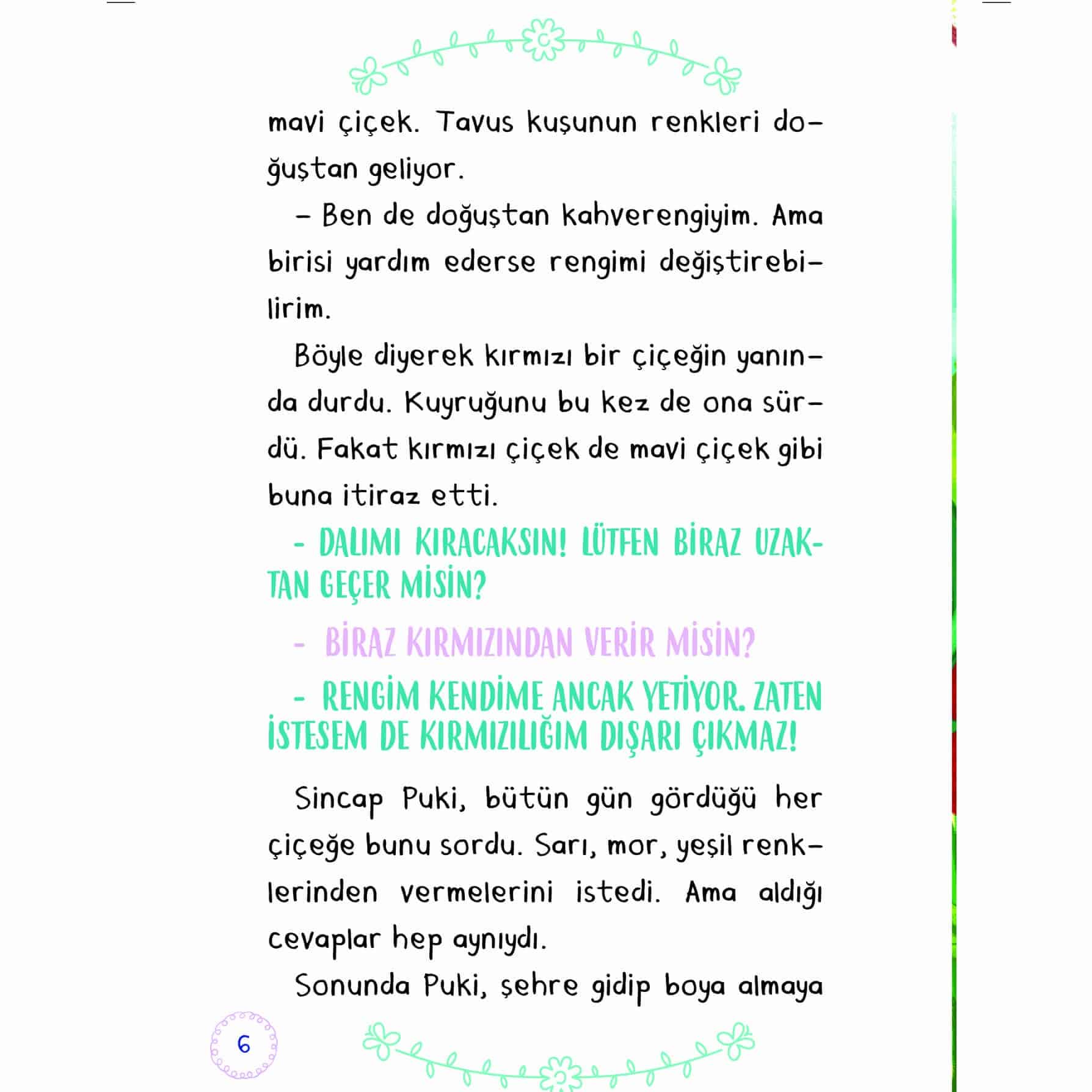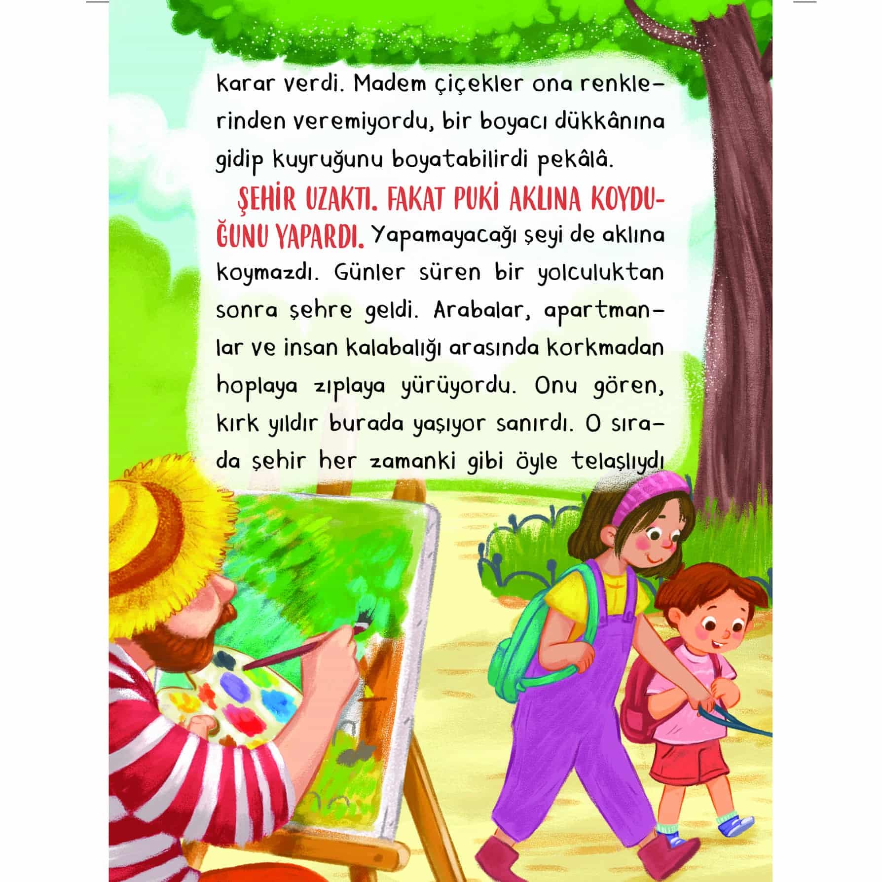 Ormandaki bütün sincapların birbirine benzediğini düşünen Puki’nin aklına bir fikir gelir: Kuyruğunu boyatmak… Şehre giderek kuyruğunu gökkuşağının renklerine boyatır. Artık herkesten farklıdır fakat onu gören diğer sincaplar da kuyruklarını boyatmaya karar verince işler biraz karışır. Kuyruğu boyalı sincapları fark eden insanların gelmesiyle [...]