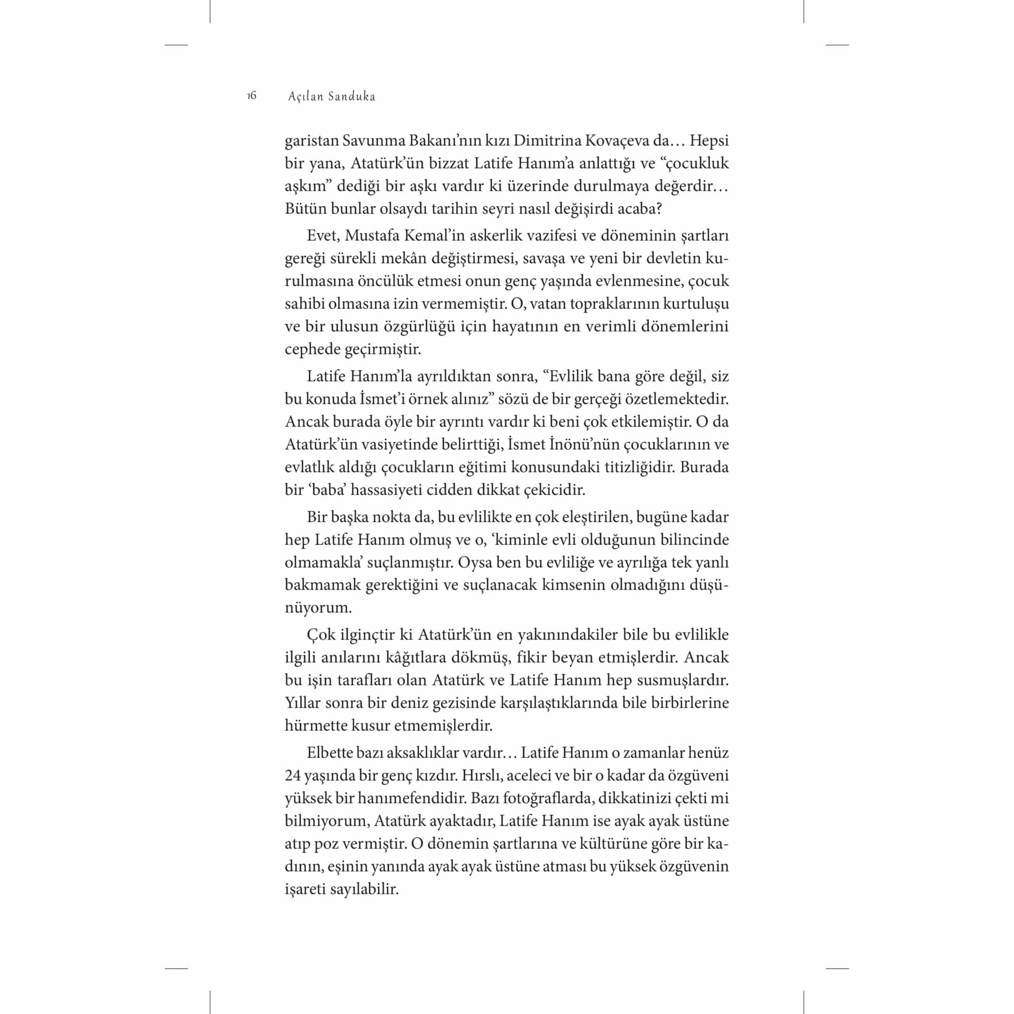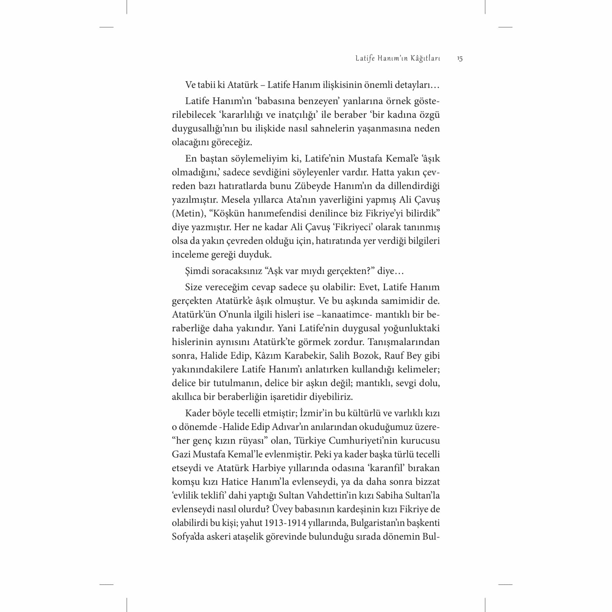 Latife Hanım… Tanıdığımızı sandığımız ama aslında birkaç kare resmin içine hapsedilmiş bir kadın. Çankaya’nın uzun süren sofralarından hiddetle kalkan, Köşk’e ve Mustafa Kemal’e nizam vermeye çalışan, “kiminle evli olduğunu bilmemek”le “suçlanan”, baskın ve otoriter bir karakter. Oysa bu fotoğraf, Uşakizade Latife’nin sadece bir yönü. Yirminci yüzyılın başında beş dil bilen, Sorbonne’da hukuk ve siyasal bilgiler tahsil etmiş, Fransız gazetelerinden takip ettiği Milli Mücadele’ye inandığı için, Fransa’da kalan ailesine rağmen işgal altındaki İzmir’e dönen bir kadın o. Genel kültürü ve cesareti ile etkilediği Mustafa Kemal’e evliliği düşündüren, genç Cumhuriyet’in kadınları için model olan biri. Ayrılıktan sonra, tam elli yıl boyunca susan ve sadık kalan bir eş, yaralanmış bir kalp… Gazeteci yazar Fatih Bayhan uzun araştırmalar neticesinde, roman/belgesel tadında kaleme aldığı Latife Hanım’ın Kâğıtları/Açılan Sanduka’da bilinmeyen bir Latife Hanım portresi sunmakla kalmıyor; ailenin bugün hayatta olan üyelerinden birinci elden edindiği bilgileri ve Latife’nin sandukasından çıkanları paylaşıyor. Son yıllarını geçirdiği ev, kullandığı eşyalar, gelinliği ve özel aksesuarlarına dair bir albümle zenginleşen kitapta Latife Hanım’ın şimdiye kadar bilinmeyen mektupları, terekesinden çıkanlar, fikir ve ruh dünyasının ayrıntıları açığa çıkıyor. • Latife Hanım Yunanlılar tarafından neden casuslukla suçlandı? • Fransa’da eğitim alırken işgal altındaki İzmir’le ilgili nasıl bir rüya görüp yurda döndü? • Zübeyde Hanım’ın onu istemediği doğru muydu? • Köşk’teki bazı zevat tarafından neden sevilmedi? • Evliliği ve ayrılığı Türk ve dünya basınında nasıl yankı buldu? • Terekesinden hangi kitaplar çıktı? • Mektuplarının satır aralarında neler vardı? Latife Hanım’ın hikâyesinde bir devrin panoraması saklı!