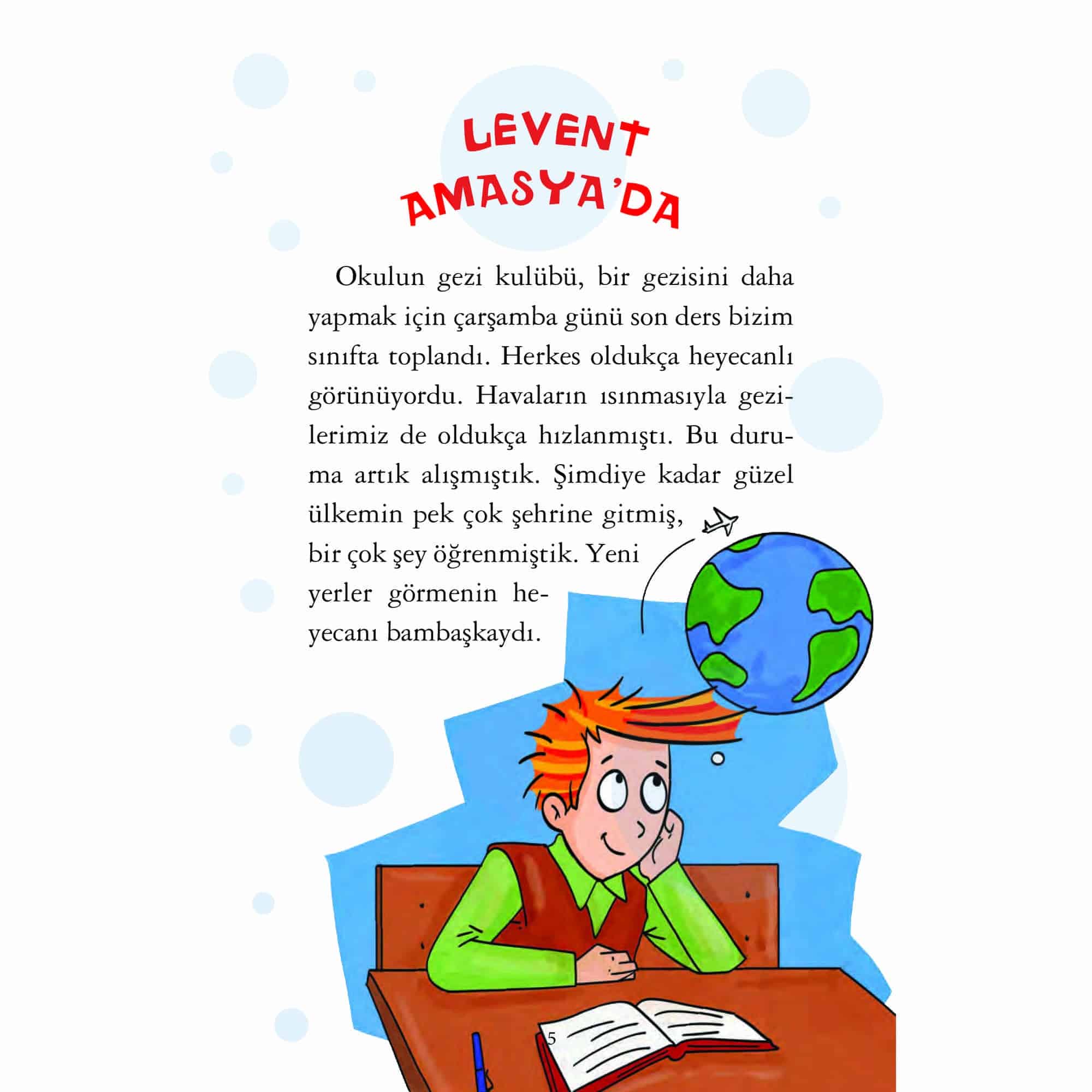 Levent Türkiye'yi Geziyorum serisinde Levent ve tayfası, Türkiye'yi keşfe çıkıyor. Her kitapta o şehre ait doğal güzellikler, tarihî geçmiş, öne çıkan yerler; kimi zaman komik, kimi zaman duygulu maceralar eşliğinde anlatılıyor. Tayfa ziyaret ettiği her şehirde, o şehre ait önemli yerleri geziyor, görüyor ve öğreniyor. Hem ülkemizin doğal ve kültürel güzelliklerini öğreniyorlar hem de millî kültür ve bilinç ediniyorlar. Aynı zamanda heyecanlı maceralar yaşıyor, çok mu çok güldürüyorlar.