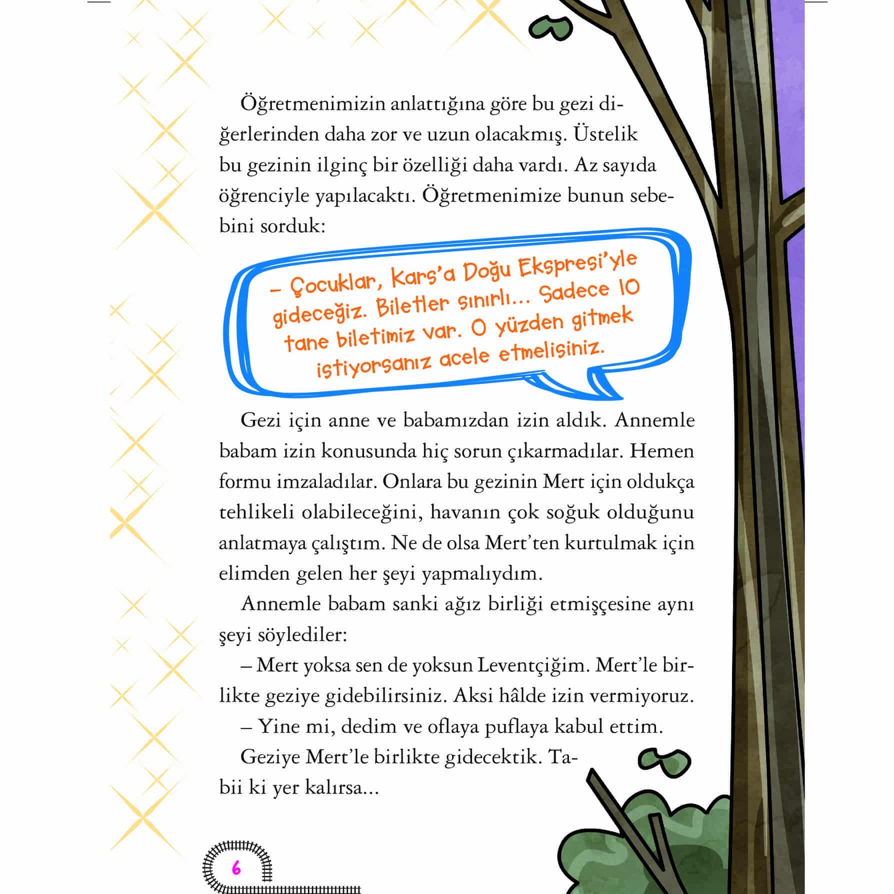 Okumayı sevdiren seri Levent, eğlenceli üslubuyla çocuklarda merak duygusu uyandırarak onları eğlenceli bir maceraya sürüklüyor, okuma alışkanlığını pekiştiriyor. Levent'in özelliği bir rol model, süper kahraman, çok zeki, çok başarılı vs bir çocuk olmaması. O da herkes gibi kardeşini çok seviyor ama bir o kadar da ondan şikâyetçi, arkadaşlarıyla olmaya bayılıyor, annesinin babasının sözünden çıkmamaya çalışıyor ama her zaman değil; hatalar da yapıyor ama bunlardan ders çıkarmayı biliyor ve yoluna devam ediyor. Levent ‘in bu özelliği, çocuklar tarafından çok seviliyor ve benimseniyor. Bu kitapta da aynı Levent’i göreceğiz... Doğu Ekspresi'nde soygun kitabında Levent ve tayfasının doğrudan ayrılmadan, soyguncuları yakalayarak adalete teslim ettiği, bu sırada başlarından yine eğlenceli maceraların geçtiği bir eser. Bu eserle çocuklar hem çok eğlenecekler, hem de sevgi, saygı, arkadaşlık, iş birliği, dayanışma, doğrudan ayrılmama gibi değerleri edinecekler.