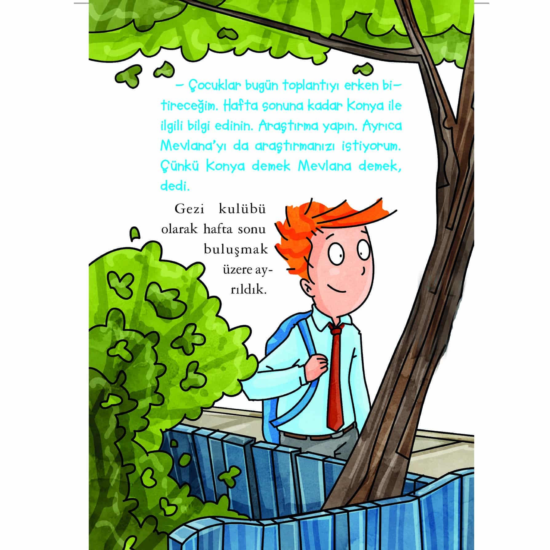 Türkiye'yi Geziyorum-Levent Konya'da kitabında tayfa, Mevlana'nın şehri konya'yı ziyaret ediyor. Nasreddin Hoca’yı yâd ediyor, Mevlana Hazretlerinin türbesinde dua ediyor, Tebrizli Şems’i tanıyor, meşhur etli ekmekten yiyor ve Çatakhöyük’te kazı yapıyorlar. Çocuklar, bu kitapla belki gezip gördükleri belki de hiç gitmedikleri Konya'yı, Konya'nın tarihî ve doğal güzelliklerini öğreniyorlar. Aynı zamanda tayfa arasındaki sevgi, saygı, sorumluluk, dayanışma gibi değerlere de şahit oluyor, bu değerleri öğreniyorlar.