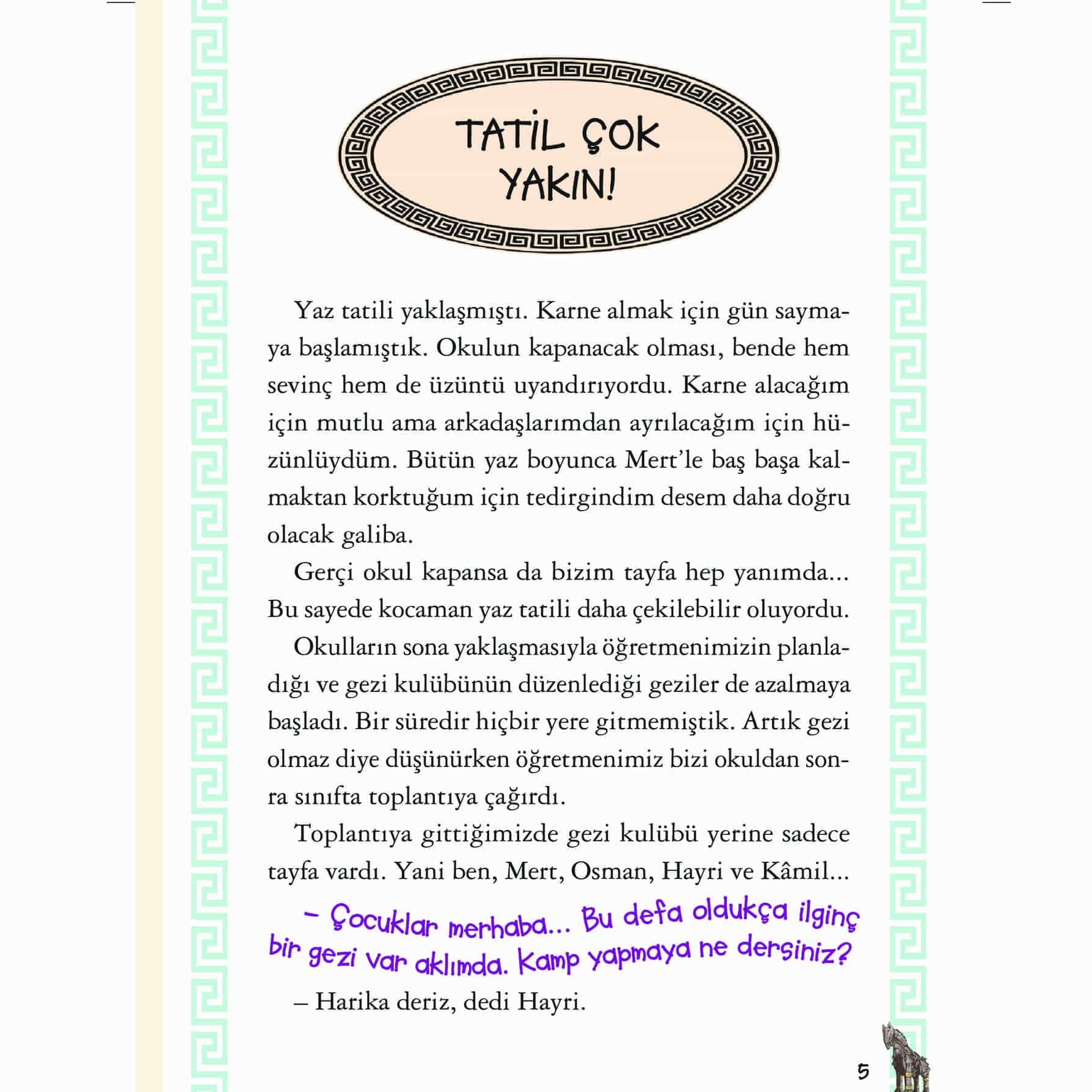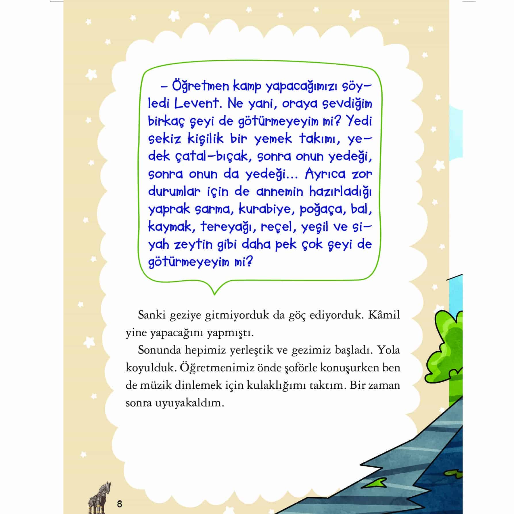 Komik, saf, deli dolu Levent ve tayfası, yepyeni bir geziye çıkıyor, hem de ne gezi! Hep birlikte kamp yapmak için Çanakkale’ye gidiyorlar. Fakat karşılaşmayı hiç ummadıkları kişi de orada: Cesur Taş! Doğanın tadını çıkarmak isteyen tayfa, Troya Efsanesi’ni dinlerken Troya Müzesi’ni de ziyaret ediyor. Tabii Cesur Taş da! Troya hazinesini Cesur Taş’tan korumaya çalışan tayfa, yine başını binbir belaya sokuyor. Her şey, yurduna geri dönen Troya hazinesi için! Kendilerini eğlenceli olduğu kadar heyecanlı, tehlikeli mi tehlikeli bir maceranın içinde buluyorlar. Troya hazinesi, onlar için her şeyden önemli. Bu önemli hazineyi anavatanında tutmak için korumaya hazır mısın? Bambaşka bir Levent macerası seni bekliyor!