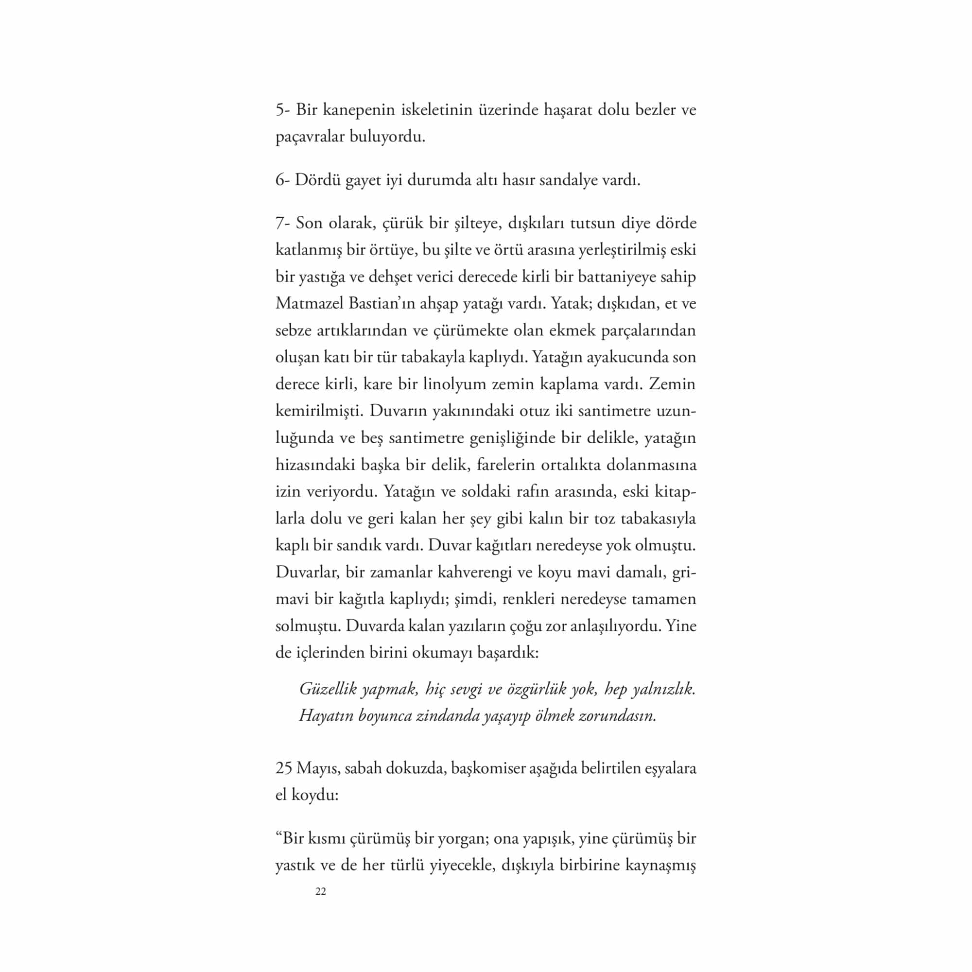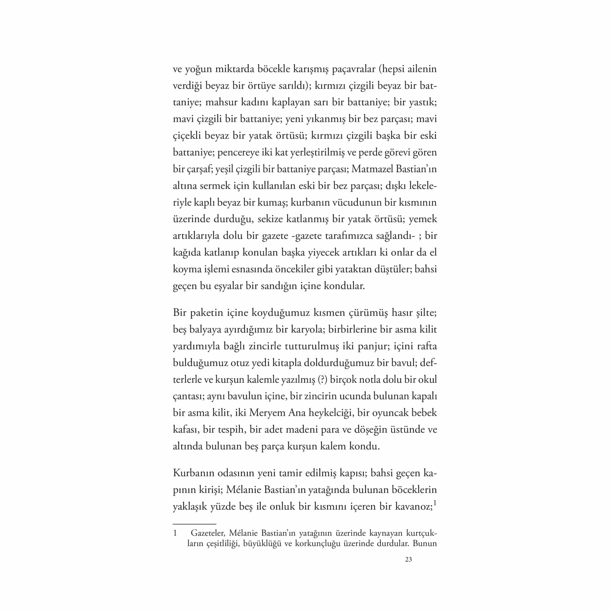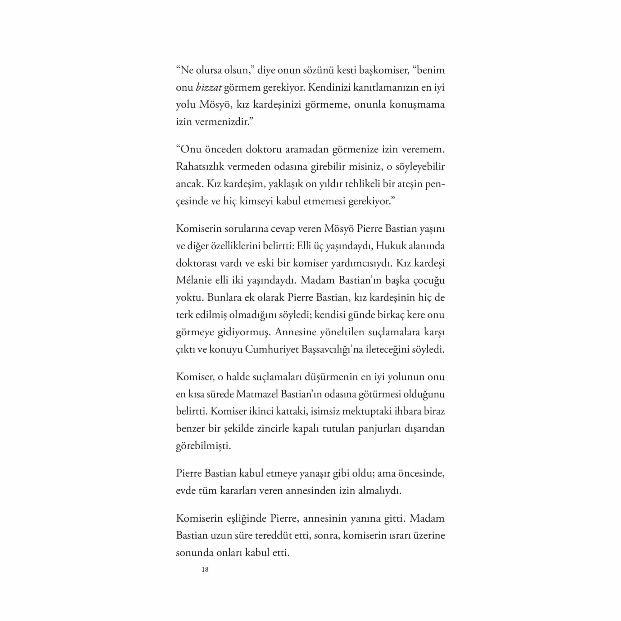 Mahsur Kadın, Nobel Edebiyat Ödüllü yazar André Gide’in jüri üyesi olarak yer aldığı ceza mahkemelerinde görülmüş ve toplumda infial yaratmış iki davayı konu alır. Öyle ki bu davaların hikâyesi bugüne kadar taşınmış, efsaneleşmiştir. 22 Mayıs 1901'de Poitiers başsavcısı, elli iki yaşındaki Mélanie Bastian'ın, annesi tarafından yirmi beş yıldır tavan arasına kapatıldığını isimsiz bir mektupla öğrenir. Bakımsız bir odada, çöplerin arasında, yiyecekten uzak yaşamıştır yıllarca. Peki bu dava, failleri apaçık ortadayken nasıl olur da sanığın beraatıyla sonuçlanır? Bu davayı Redureau Vakası izler. Yaşına göre haddinden fazla çalıştırılan, hatta sömürülen genç Marcel Redureau çalıştığı bağın sahibini ve tüm ailesini öldürür. Peki bu katliamın arkasında yatan sebep nedir? Gide, bu iki davayı kanıtların ışığında ustaca parçalara ayırıyor, sorular soruyor ve adaletin tecelli edip etmediğini hem hür bir vatandaş hem de bir yazar olarak izlenimlerini okura aktarırken hukuk ve adalet kavramlarını masaya yatırıyor. “André Gide, sade adı söylendiği zaman bir medeniyeti, bir kültürü en iyi taraflarıyla hatırlatan nadir insanlardandır.” –Ahmet Hamdi Tanpınar