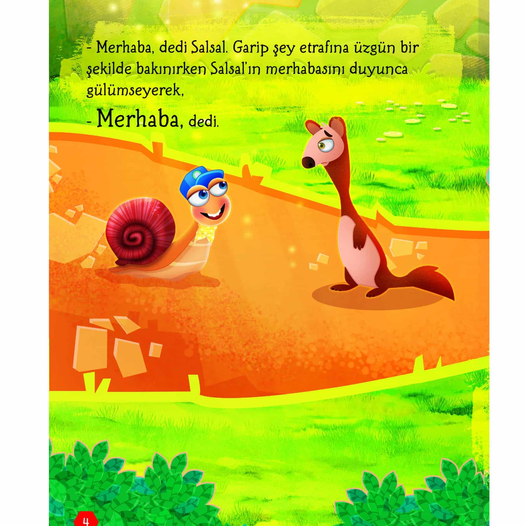 Meraklı Salsal kardeşi, annesi ve babasıyla yemyeşil bir ormanda yaşıyor. Biraz saf, biraz meraklı... Bazen muzır, bazen çok uslu... Yani tüm minik salyangozlar gibi... Araştırmayı çok seviyor, hayatı yeni yeni öğreniyor. Bu kitaplarda Salsal'ın yaramazlıklarına, deneyimlerine, öğrendiklerine şahit olacaksınız. Onun saf soruları, endişeleri, arkadaşlarıyla yaşadığı maceralar hepinizi çok eğlendirecek!