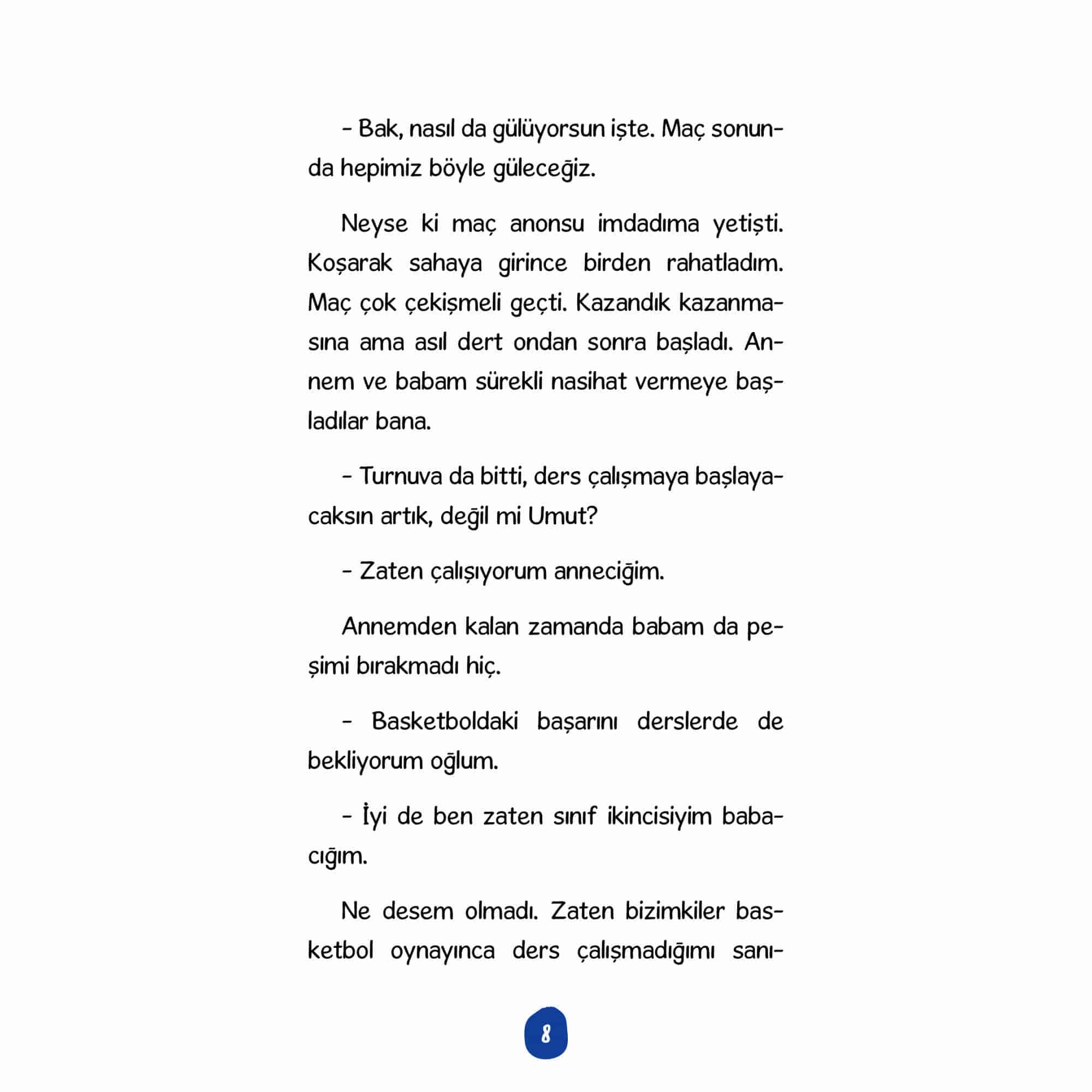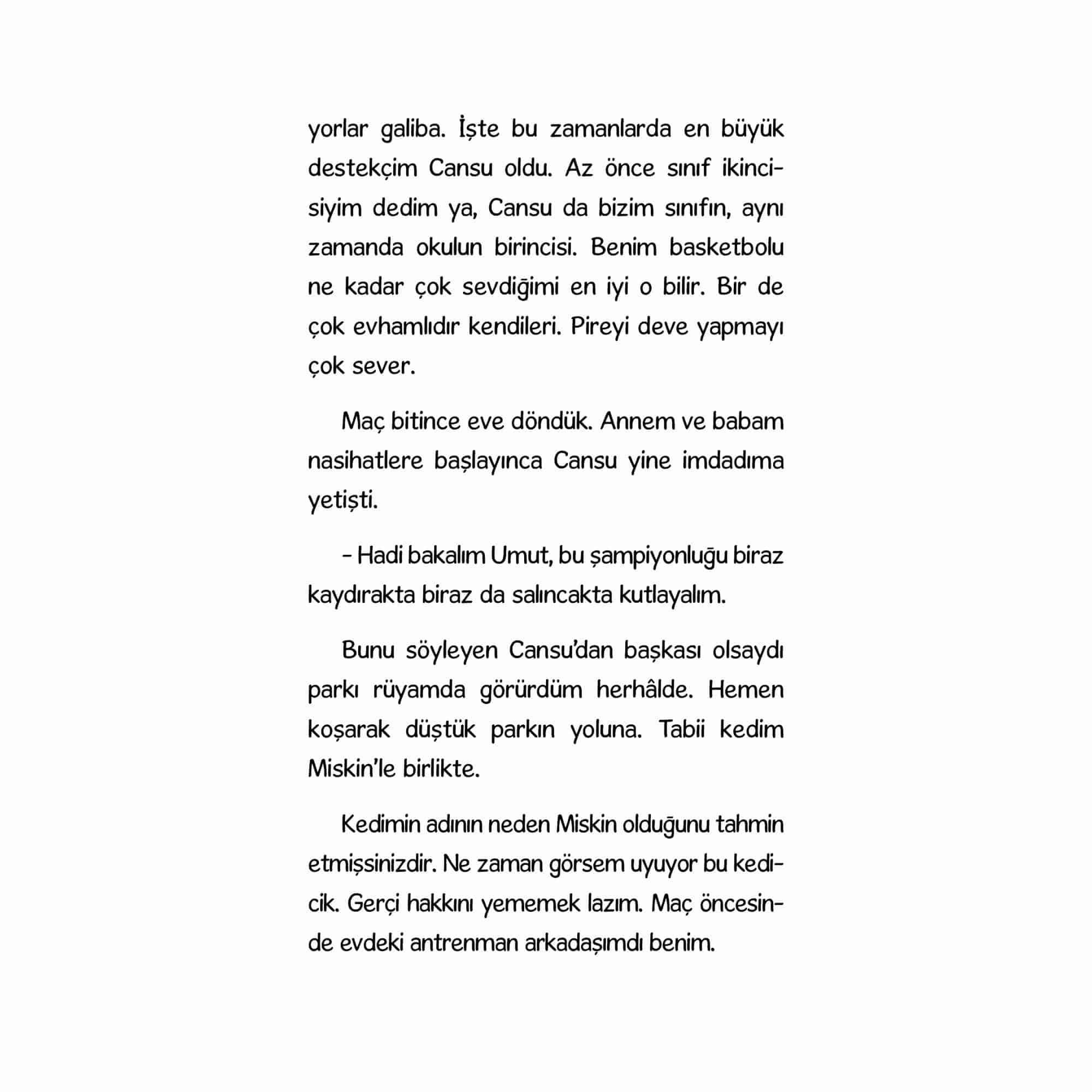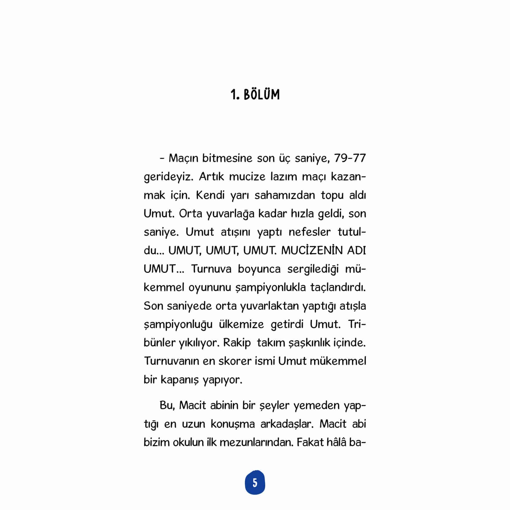 Hayalleri ve hayatı basketboldan ibaret olan Umut, geçirdiği kaza sonrasında sahalardan uzak kalır. Ancak bu bile onu basketboldan uzak tutamaz. Arkadaşı Cansu ve kedisi Miskin’le basketbol macerası devam eder.Umut’un kartonlardan yaptığı mini basketbol oyunu bir anda dilden dile dolaşmaya başlar ve çocuklar için basketbol yeni bir soluk kazanır. Öğretmen Baba’dan pes etmeme, geri dönüşüm ve zorluklarla mücadele konularında muhteşem bir macera!