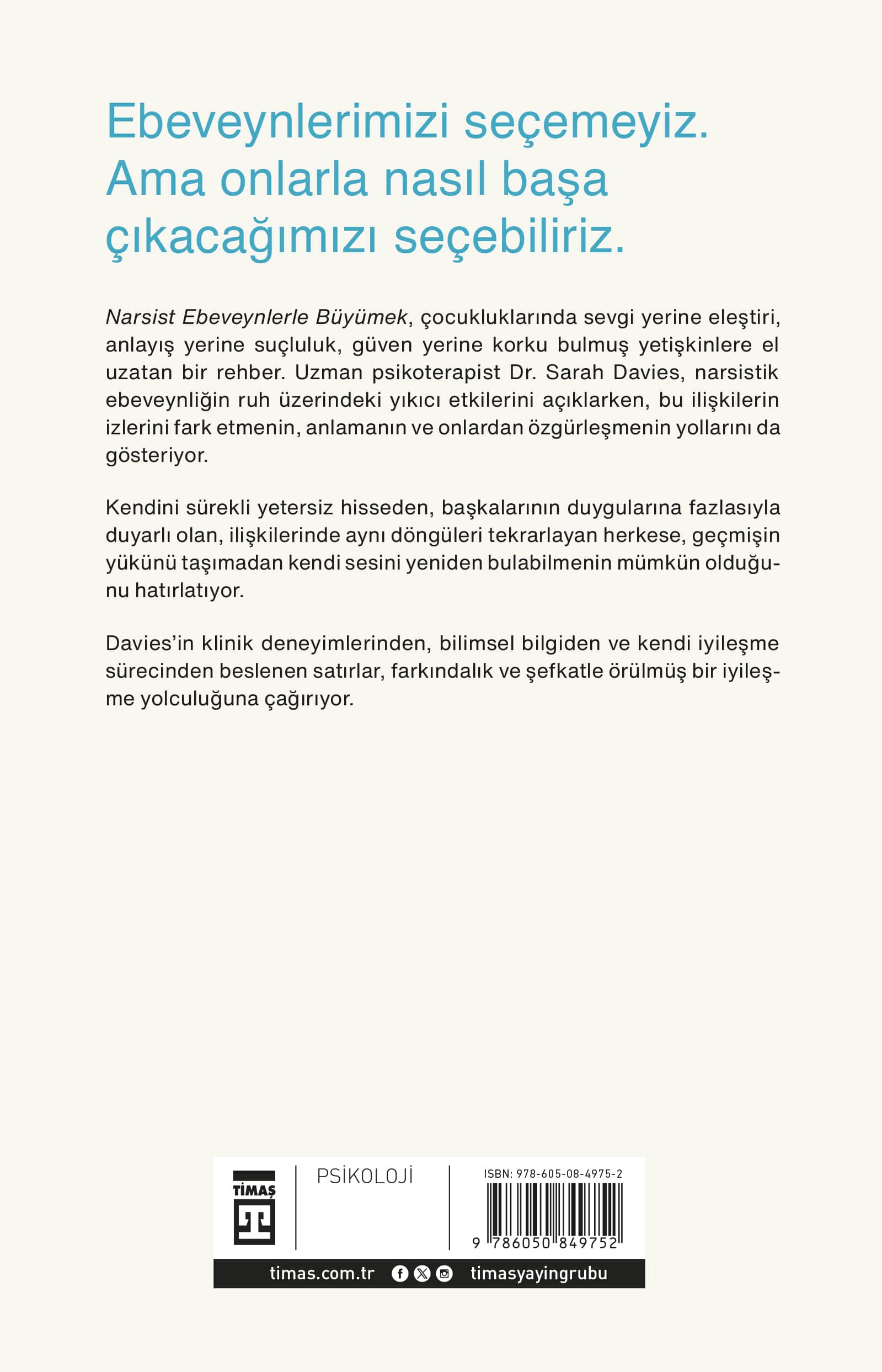 • Dr. Sarah Davies, İngiltere merkezli tanınmış bir terapisttir. Bir önceki kitabı Narsist Birinden Nasıl Kurtulursunuz? 9 ülkede yayımlanmış; birçok dile çevrilmiş ve dünya çapında büyük satış başarısı elde etmiştir. Yeni kitabı da aynı çizgiyi sürdürüyor. • Son yıllarda psikoloji ve kişisel gelişim alanında en çok okunan konulardan biri “narsist ebeveynler” ve “toksik aileler”. Sosyal medyada ve terapötik içeriklerde bu konuda büyük bir farkındalık dalgası var. Kitap, bu ihtiyaca doğrudan yanıt veriyor. • Yalnızca teorik değil, “iyileşme adımları”, “kendini koruma stratejileri” ve “duygusal iyileşme egzersizleri”yle okura somut fayda sağlıyor.