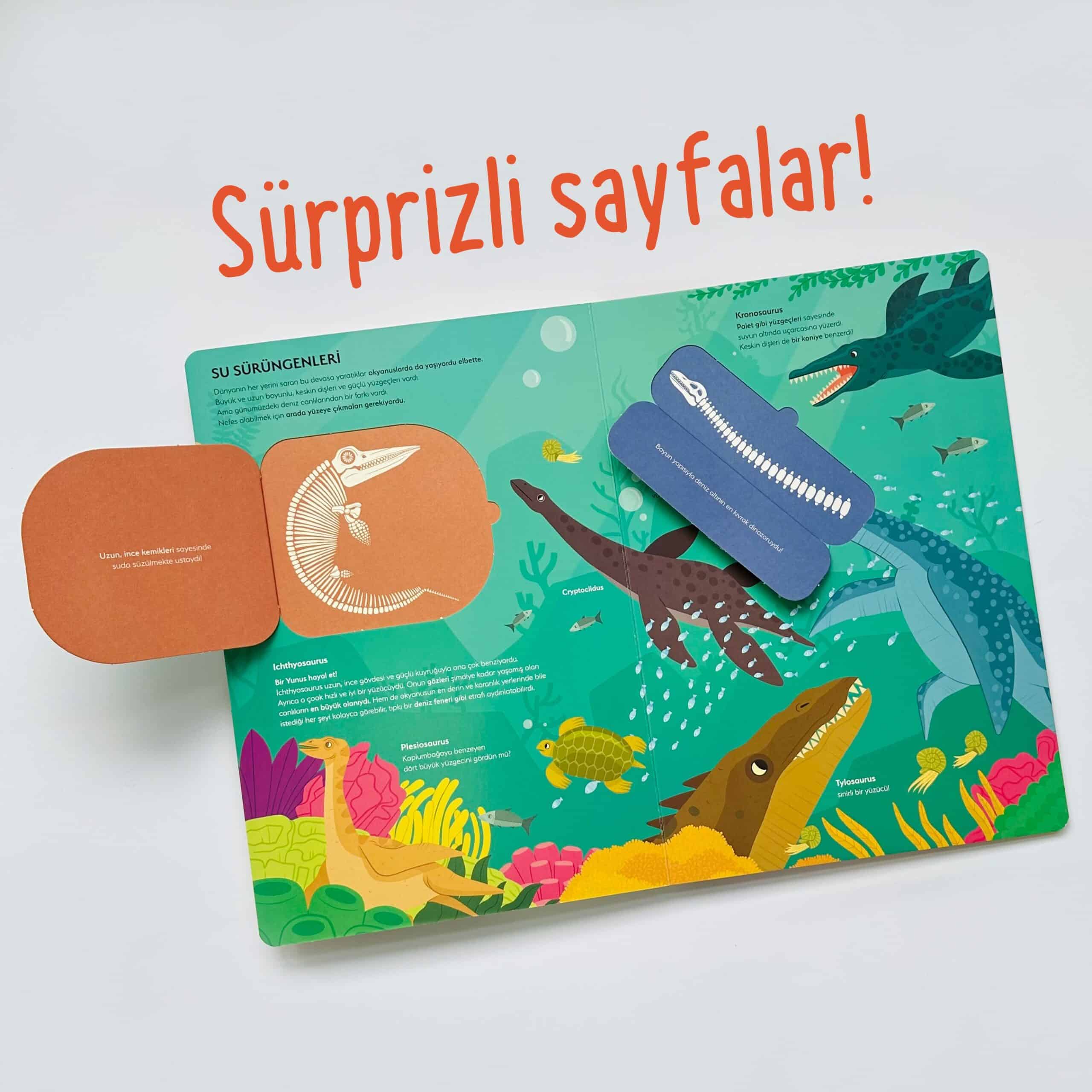 Okul öncesi müfredatına uygun olarak hazırlanmış olan NE SORSAN BİLİR MİNİK serisinin kitapları çocukların; • Sözcük dağarcığın gelişmesine • Görsel materyalleri okumasına • Nesne ve varlıkları gözlemleyerek öğrenmesine yardımcı oluyor. Serinin Dinozor kitabında ise; Sürpriz kapakçıklarda şaşırtıcı bilgiler meraklı okurlarını bekliyor. Dinozorları ve o çağda yaşayan diğer canlıları, yaşam alanlarında canlandırılmış görsellerle anlatan bu resimli çocuk ansiklopedisi sayesinde çocuklar kitabı kendi başına inceleyebilir, resimlerle hikâye oluşturabilir, hayal dünyasında keyifli macera dolu bir yolculuğa çıkabilir.