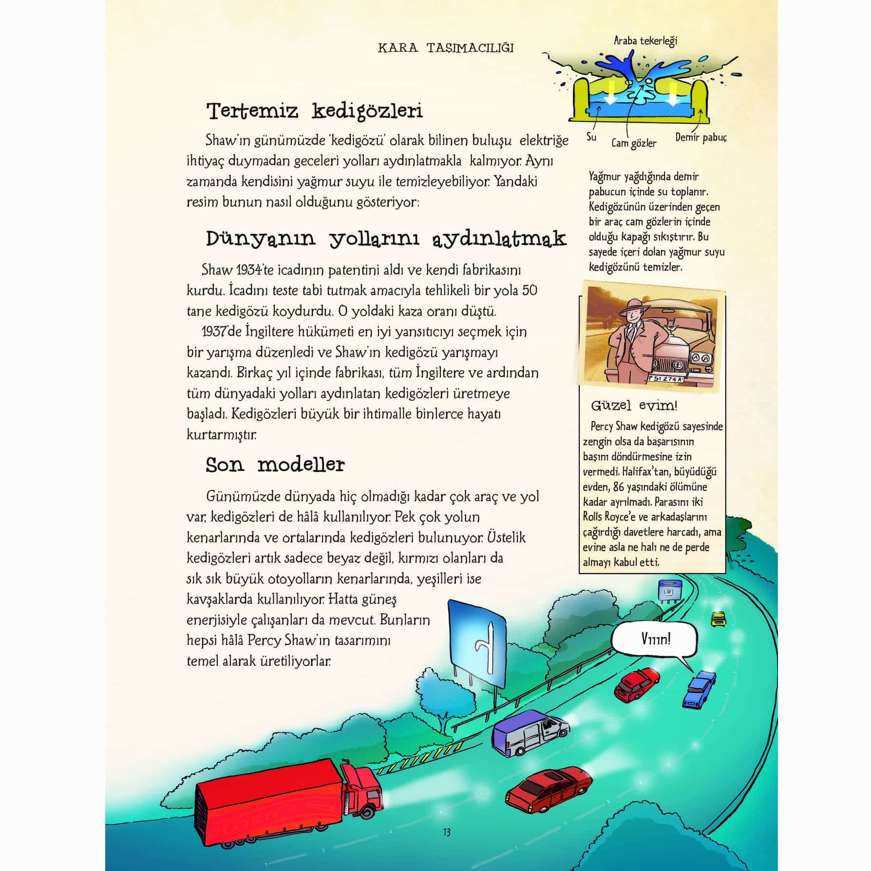 Ekmek kızartma makineleri, tuvaletler, televizyonlar, arabalar, çeşit çeşit çikolatalar, uçmak için yapılan aletler ve makineler, tabii kot pantolonlar... Birilerinin bulmak için gerçekten çok çaba sarfettiği günlük hayatımızda çok sık kullandığımız bütün bu şeyler ve çok daha fazlası bu kitapta... Gerçek hayattan hikâyeler ve mucitlerin mükemmel fikirlerinin ardındaki parlak kıvılcımlar ile bu kitap sizi, antik gelişmelerden modern dünyanın yüksek teknolojili buluşlarına doğru heyecan dolu bir yolculuğa çıkaracak.