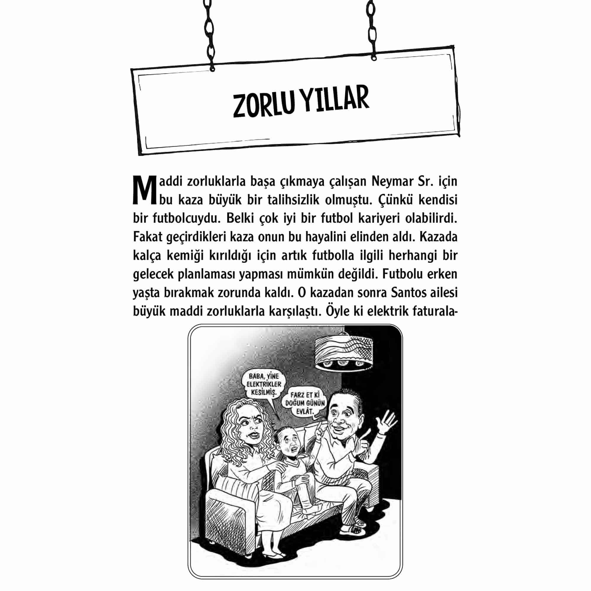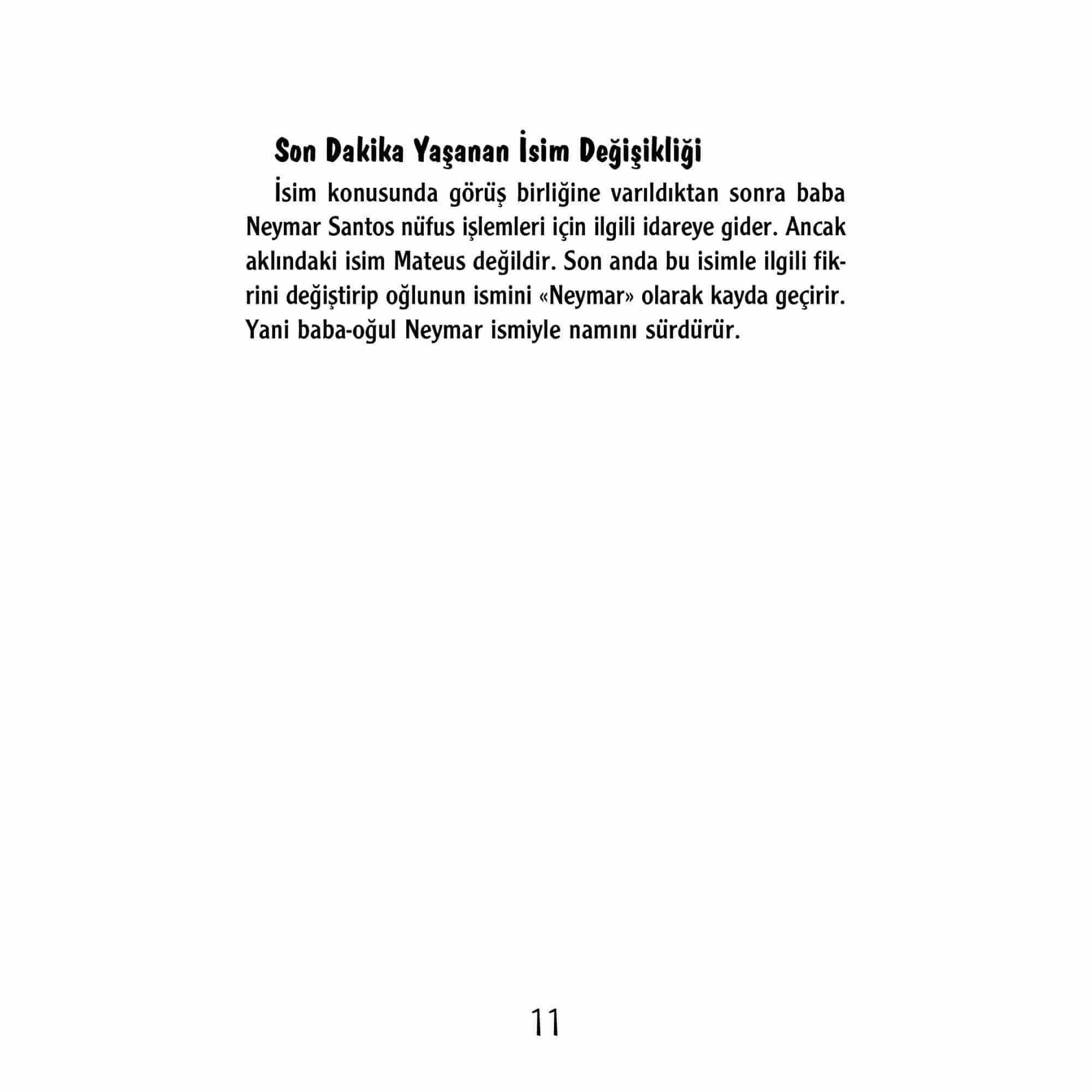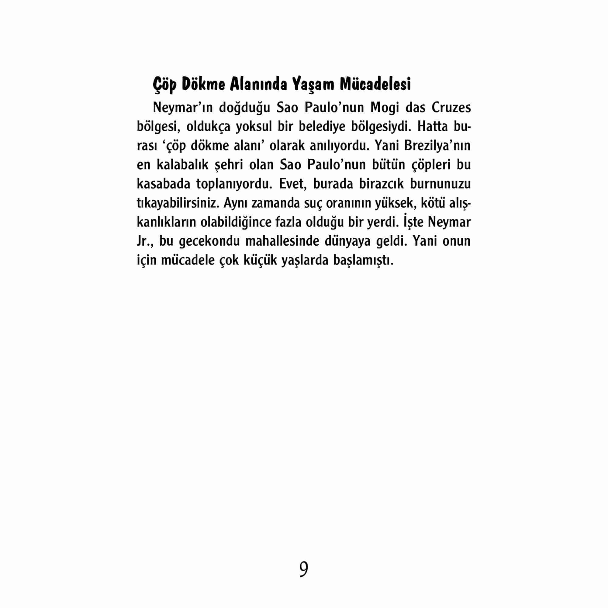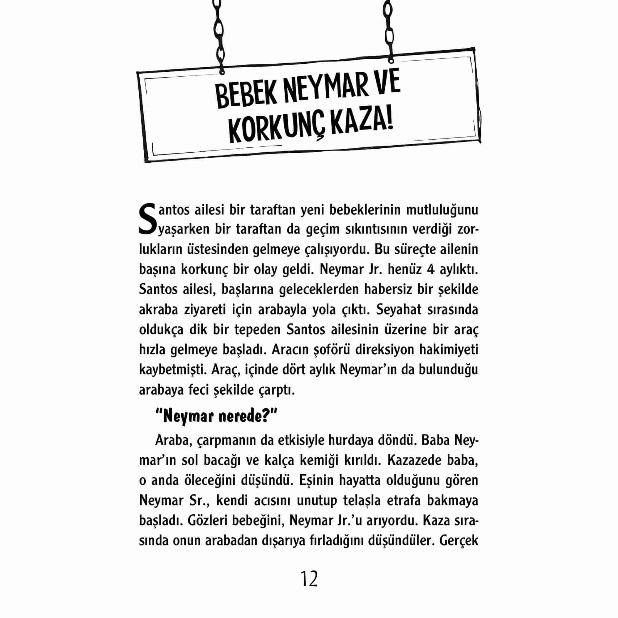 Bu kitapla, çocuklar dünya futbol tarihinin en önemli futbolcularından biri olan Brezilya efsanesi Neymar, daha çocuk yaşlarda hayallerinin peşinden koşmak için verdiği mücadeleyi öğrenecektir. Başarı merdivenlerini çıkarken gösterdiği disiplin çocuklara ve gençlere ilham olacaktır. Kitap; mücadele, azim, kararlılık, çalışma, disiplin, hayal gücü, saygı ve spor sevgisi gibi kazanımları içinde barındırırken aynı zamanda Neymar'ın, titizlikle ve onlarca yerli, yabancı kaynaktan yararlanılarak kaleme alınan hayatı için referans niteliği taşımaktadır.