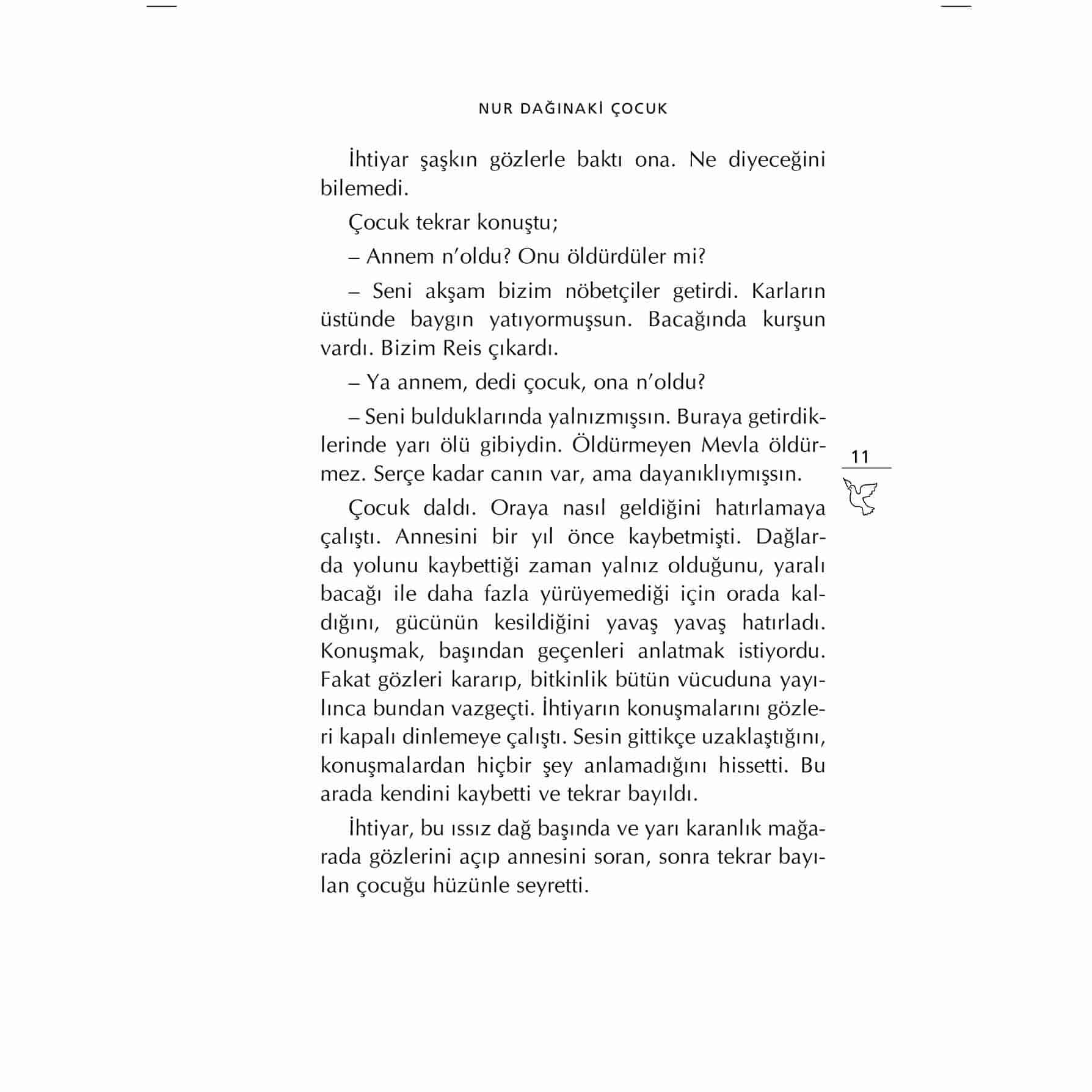 "Oraya nasıl geldiğini hatırlamaya çalıştı. Dağlarda yolunu kaybettiği zaman yalnız olduğunu, yaralı bacağı ile daha fazla yürüyemediği için orada kaldığını, gücünün kesildiğini yavaş yavaş hatırladı. Konuşmak, başından geçenleri anlatmak istiyordu..." Bu kitapta, Afganistan'ın karlı dağlarında yaşam mücadelesi veren Kerem'in başından geçenleri okuyacak, Hasan Nail Canat'ın usta kalemiyle o zorlu mücadeleye şahit olacaksınız!