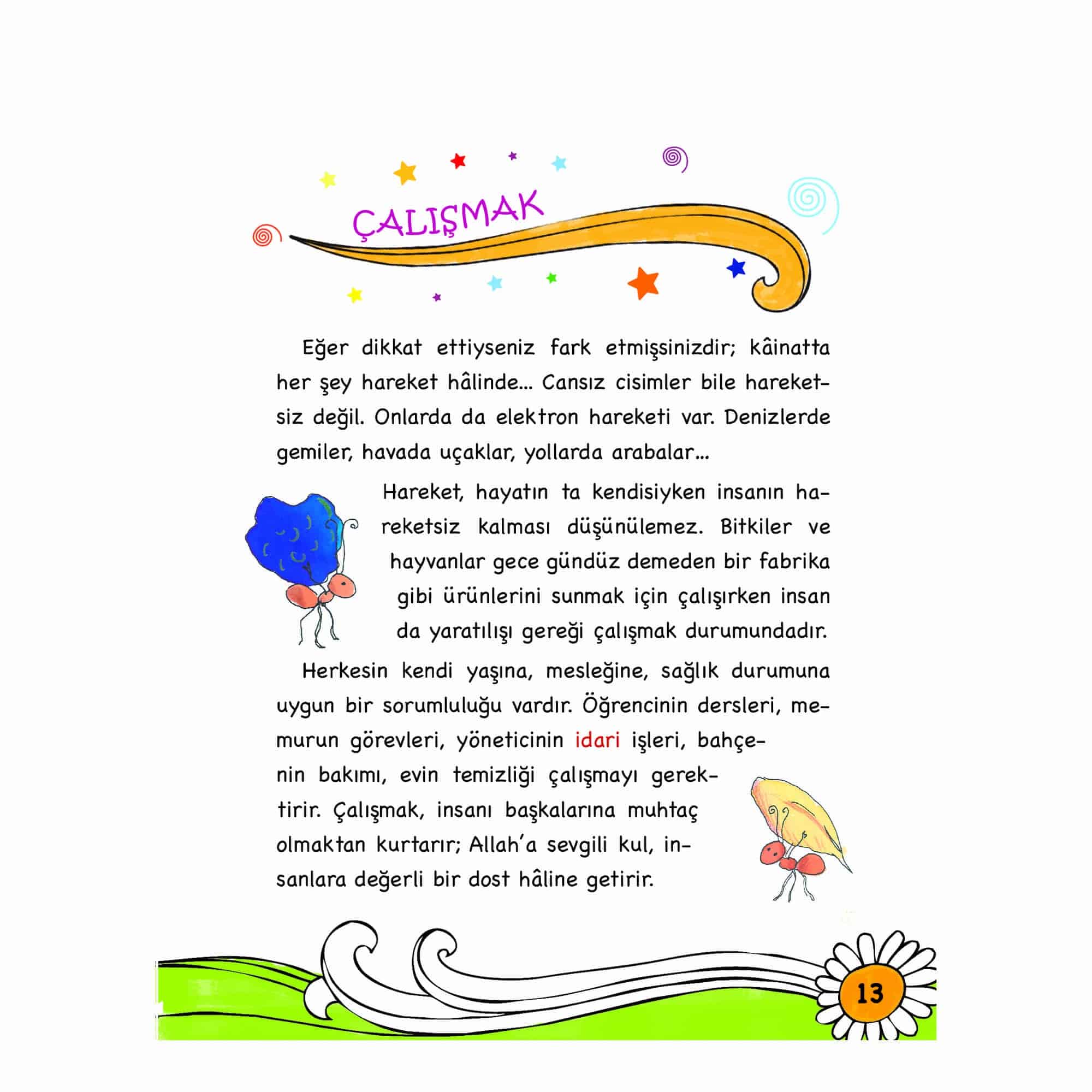 Sevgili Çocuklar, Sevgi, dostluk, yardımlaşma, cömertlik, affedici olma, dürüstlük, sözünde durma gibi değerleri eğlendirerek öğreten eser, içerdiği renkli çizimler ve yaşanmış hikayelerle “Nurdan Tacım Güzel Ahlakım – Çocuk ve Ahlak” kitabı siz çocuklar için bir rehber niteliğinde. Kitaptan Bir Bölüm: Vefa, sevgi ve dostlukta devamlı olmak demektir. Uzun zamandan beri görmediğimiz bir akrabamıza ve arkadaşımıza telefon açıp hatırını soruvermek vefadır. Uzaktaki bir yakınımıza mektup yazmak vefadır. Sevdiğimiz bir insana hediye alıvermek vefadır… Sevgiyi bir ömür boyu sürdürmek vefadır… Anne babaya, arkadaşlara, dostlara vefalı olmak, onların yaptıkları iyilikleri unutmamak, onları her zaman sevmek, onların mutluluklarıyla mutlu olmak, dertleriyle dertlenmek, hem iyi günde hem kötü günde onların yanında olmak ne güzel bir duygudur…