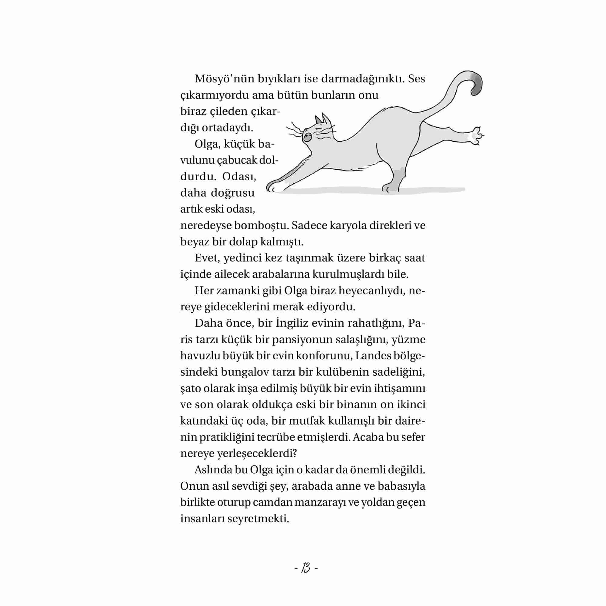 Olga, dokuz yaşındaydı ve bu yaşına kadar altı kez ev değiştirmişti. Babası Bernard, bir sabah kalkıp kahvaltının tam ortasında, “Prenseslerim! Yeni bir maceraya çıkıyoruz!” diyerek yedinci kez taşınacaklarını ilan ettiğinde, yeni evlerinde başlarına gelecek olan tuhaf şeylerden hiçbirinin haberi yoktu. Olga, taşındıkları evde, duvar kâğıtlarını sökmeye çalışırken duvarda minik bir kapı keşfeder. Acaba bu kilitli kapının arkasında ne vardır? Sonunda kapıyı açmayı başardığında kendini esrarengiz bir hikâyenin içinde buluverir. Gizemli bir ormanda, kedisi Mösyö ve yeni tuhaf arkadaşıyla birlikte, kayıp olan anne babasını aramaya çıkan Olga’yı inanılmaz bir macera beklemektedir.