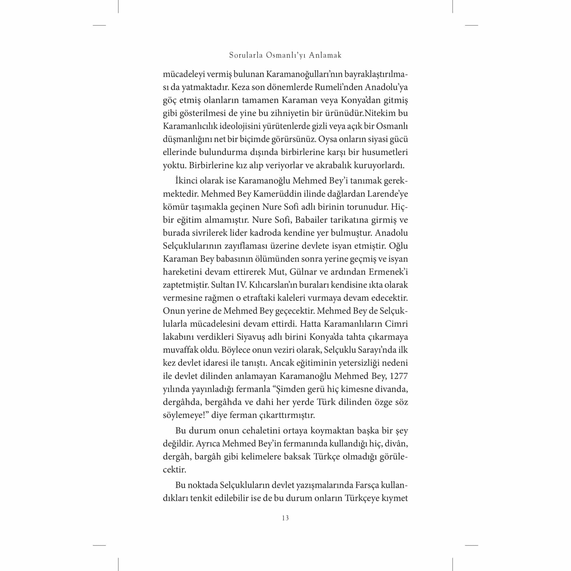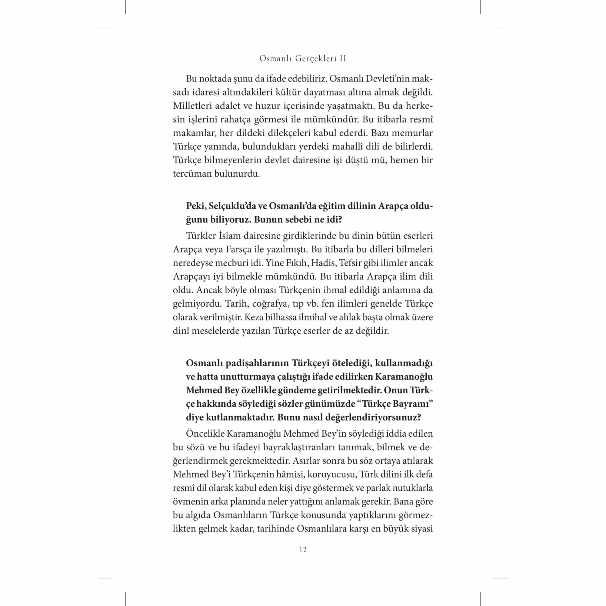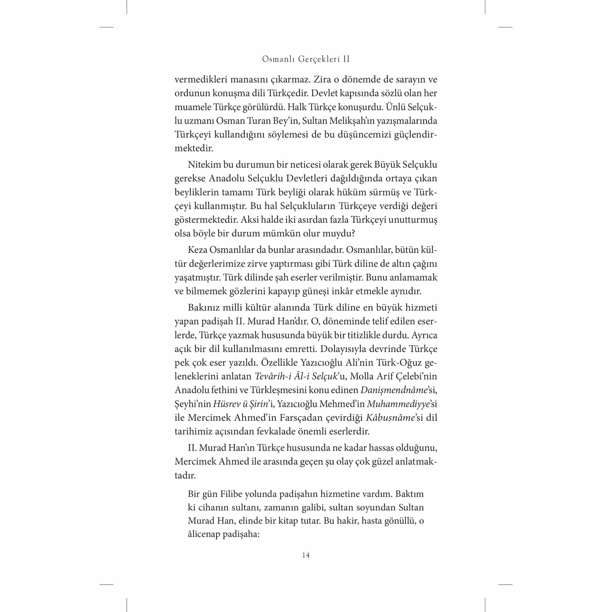 KAYI serisi ile 7’den 70’e herkese ulaşan Prof. Dr. Ahmet Şimşirgil, OSMANLI GERÇEKLERİ dizisinin ikinci kitabıyla da, Osmanlı’nın kuruluşundan yıkılışına kadarki tartışmalı konuları akıcı üslubu, soru cevap usulü ve temel kaynak referansları ile açıklamaya devam ediyor… * Osmanlı padişahları Yavuz Sultan Selim’den evvel halife unvanını kullandılar mı? * Yavuz Sultan Selim mukaddes emanetleri zorla mı alıkoydu? * Yavuz, seferlerinde neden hep doğuyu seçti? * Safevi Devleti’nin hükümdarı Şah İsmail Türk müdür? * Osmanlı fetihlerindeki başarı sırları nelerdir? * Osmanlı’nın yeni fethettiği yerlerde uygulamış olduğu istimalet politikası ne demektir? * Osmanlılar 200 bin kişilik orduların ihtiyaçlarını nasıl karşılıyorlardı? * Osmanlı Devleti’nin resmî dili ne idi? * Osmanlılar Türkleri kötülediler veya ötelediler mi? * Yeniçeriler ile ilgili ilginç detaylar… * Tarihin tartışmalı isimlerinden biri: Şeyh Bedreddin saltanat hırsının kurbanı mı oldu? * Osmanlı sarayında bulunan köle ve cariyelerin akıbetleri ne oldu? Prof. Dr. Ahmet Şimşirgil, Osmanlı Gerçekleri II’de okurlarının zihnine takılan daha pek çok ilgi çekici meseleyi aydınlatıyor… Onu okudukça tarihi daha çok seveceksiniz!