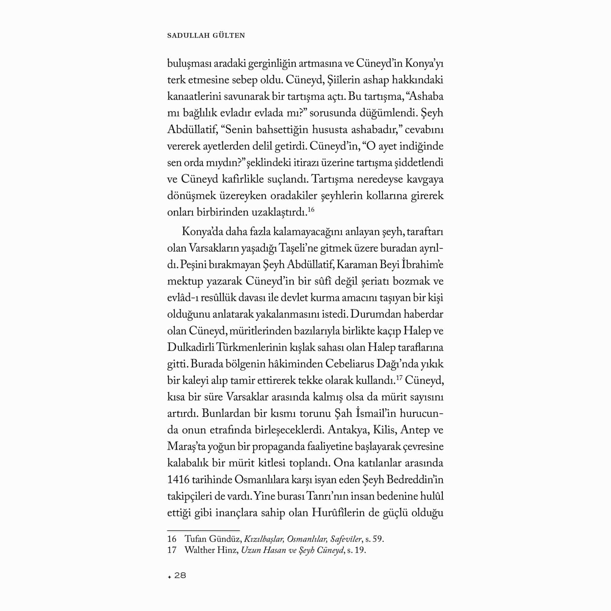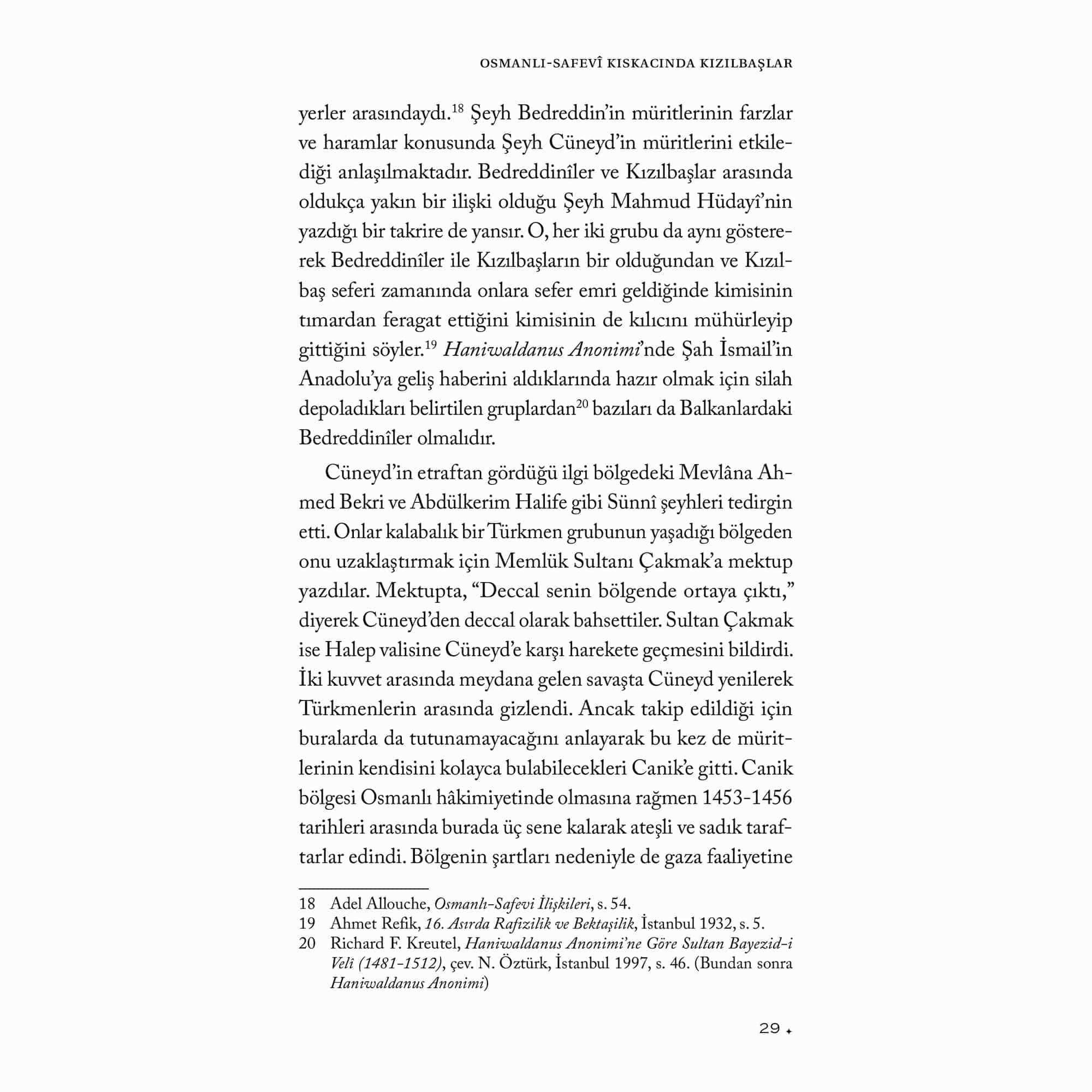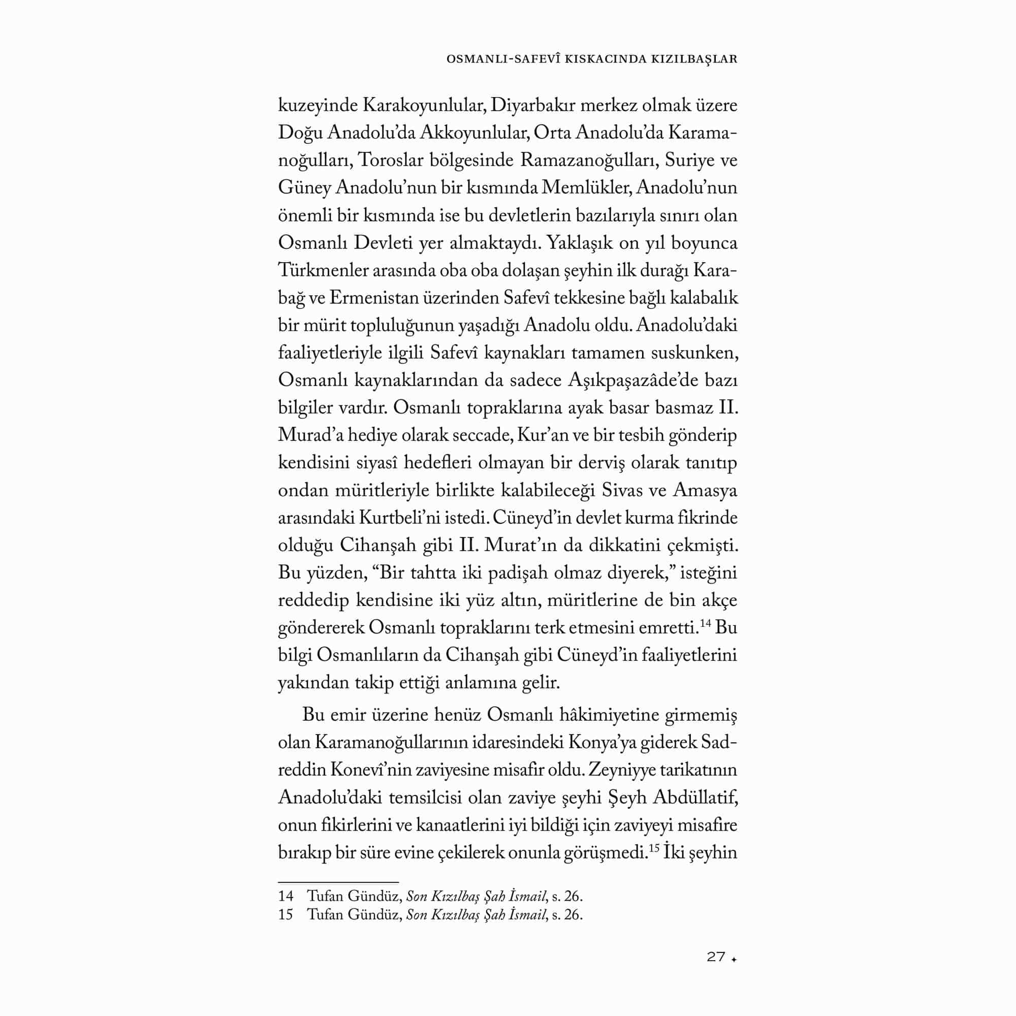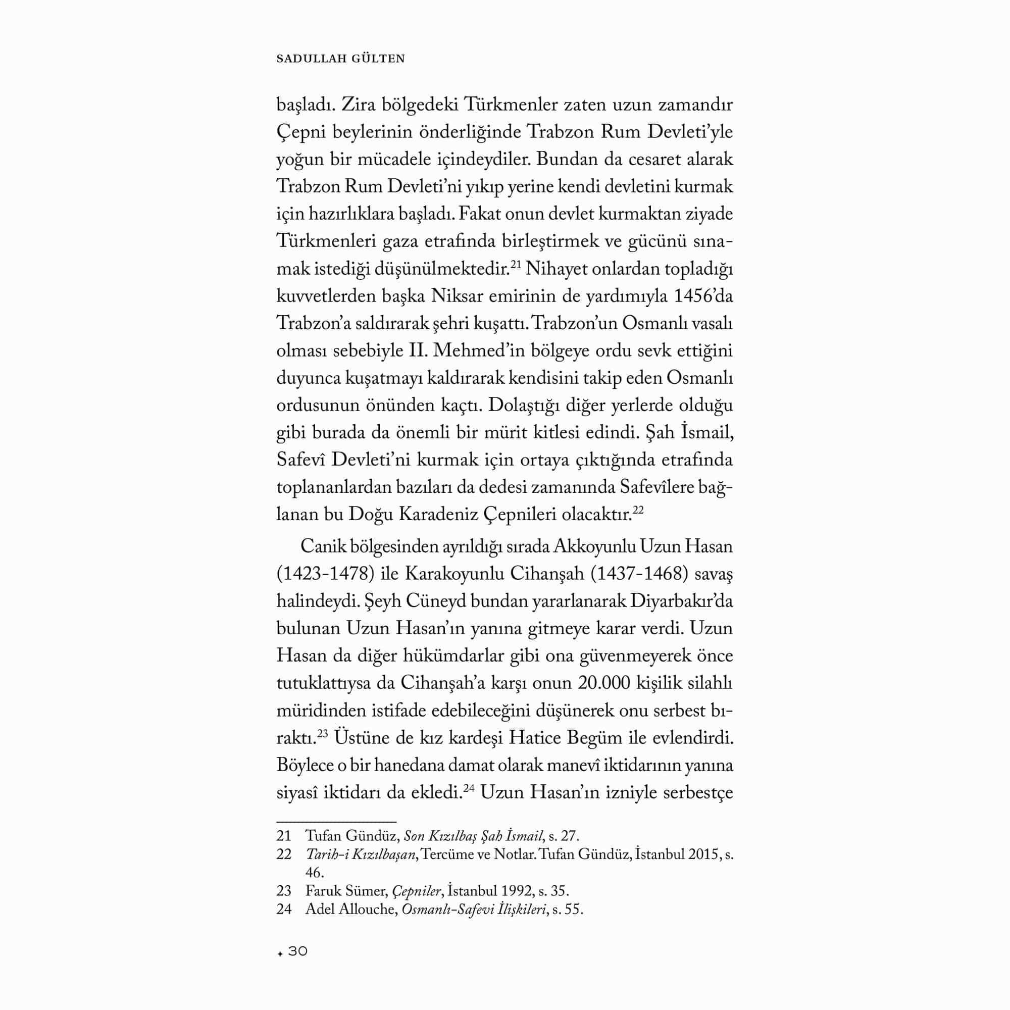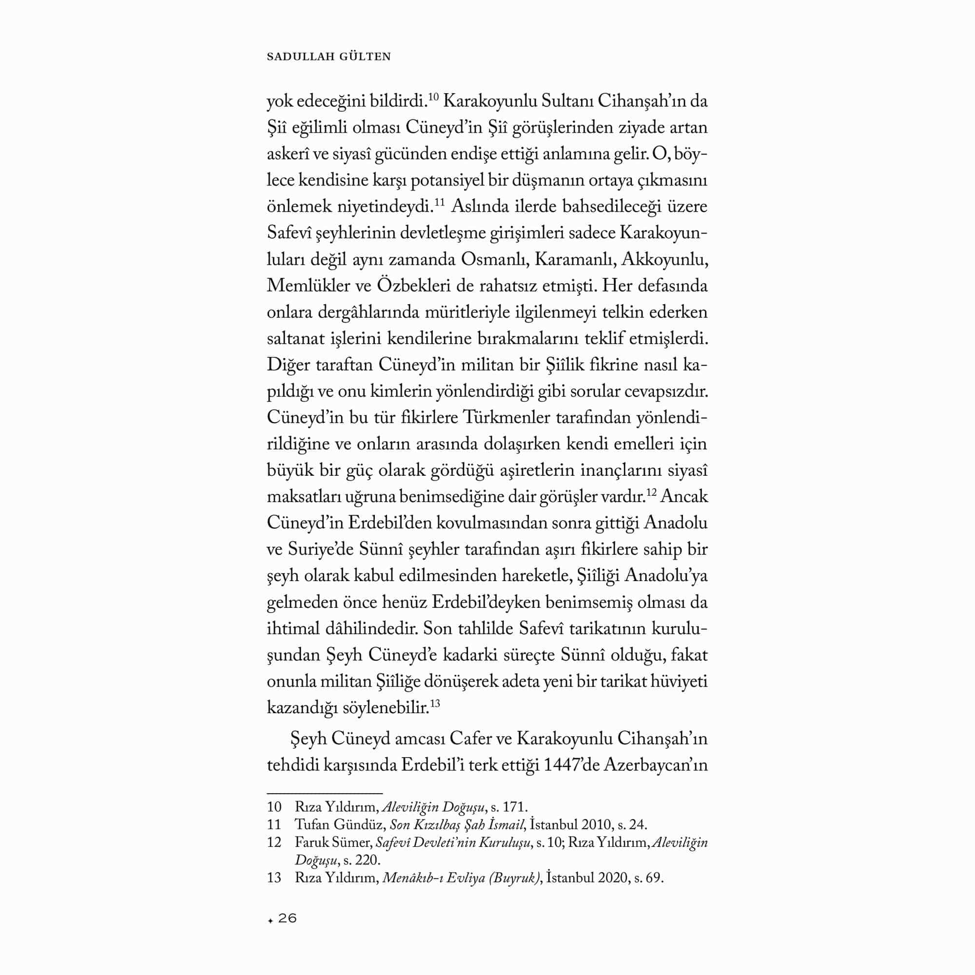 Kızılbaşlığın doğuşu ve Safevî Devleti’nin kuruluşu Safevî şeyhlerinin dinî-siyasî etkisinde kalan Osmanlı, Karakoyunlu, Akkoyunlu, Memlûk, Dulkadirli, Karamanlı ve Ramazanlıların hâkimiyeti altındaki Anadolu, İran, Azerbaycan ve Suriye gibi geniş bir coğrafyaya dağılan konar-göçerlerden koparak şeyhlerin etrafında birleşen oymakların eseridir. İsyanlar, isyan girişimleri ve Kızılbaşların İran şahlarıyla ilişkilerini devam ettirmeleri Osmanlı Devleti’ndeki güvenlik kaygılarını had safhaya taşımıştır. Bu yüzden 16. yüzyıldan itibaren Kızılbaş ismi devlet muhalifi ve isyancı zümreler manasında kullanılmıştır. Ayrıca zamanla buna dinî bir boyut da eklenerek zındık, râfizî ve mülhid deyimleriyle sapık, yoldan çıkmış ve inkârcı olarak tanımlanmışlardır.• Kızılbaşlık nasıl doğdu?• Kızılbaş inancının esasları nelerdir?• Alevîlik ile Kızılbaşlık arasındaki fark nedir?• Anadolu’da Kızılbaşlığın doğuşunu tetikleyen sebepler nelerdi?• Kızılbaşlar en çok Anadolu’nun hangi bölgelerindeydi?• Safevî şeyhlerini hangi Türkmen oymakları destekledi?• Osmanlı yönetimi ile Kızılbaşların arasındaki anlaşmazlıkların sebepleri nelerdi?• Osmanlı belgelerine Kızılbaş Fetreti olarak yansıyan 1510-1530’lu yıllarda neler yaşandı?• I. Selim 1514’teki Çaldıran Seferi öncesinde 40.000 Kızılbaş’ı katlettirdi mi?• Bu konuyla alakalı dönemin Osmanlı-Safevî kaynaklarıyla nüfus verilerini barındıran tahrir defterlerinde neler yazıyor?• Osmanlı yönetiminin Kızılbaşlarla aynı inançlara sahip Bektaşîlere karşı tutumu nasıldı?• Şah İsmail’in hurucuyla Osmanlı Devleti için başlayan “Doğu Sorunu” nasıl çözüldü?Türkmenler ve Alevîler üzerine yaptığı çalışmalarla bilinen Prof. Dr. Sadullah Gülten, Osmanlı-Safevî Kıskacında Kızılbaşlar adını verdiği çalışmasında, bu toprakların en çok tartışılan dinî gruplarından biri olan Kızılbaşlarla/Alevîlerle alâkalı tüm bu soruları cevaplamakla kalmıyor, doğru bilinen birçok yanlışı da düzeltiyor.