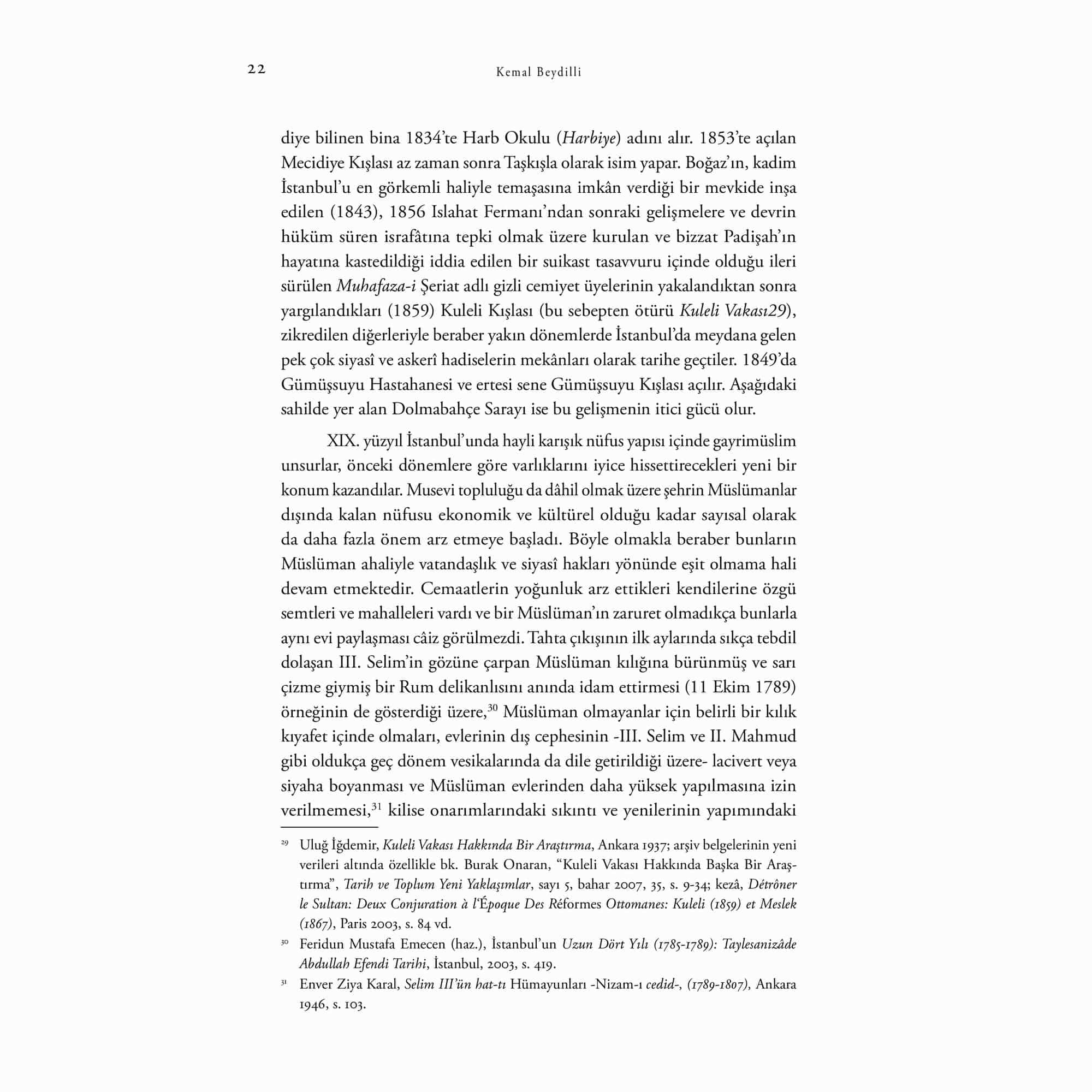 “Osmanlı’nın son yüzyılındaki yenileşme ve Batılaşma, zaruretin meziyet haline gelişinden başka bir şey değildir.” Prof. Dr. Kemal Beydilli Osmanlı Tarihi alanında yaptığı orijinal çalışmalarla hem yurt içinde hem de yurt dışında maruf, İslam Ansiklopedisi’nin birçok maddesini yazan Prof. Dr. Kemal Beydilli’nin kendi seçtiği makalelerinden oluşan Osmanlı’da Devletlerarası İlişkiler-2 kitabı, Osmanlı’nın son yüzyılında kendi kimliğini de değiştirmek zorunda kalan, İmparatorluk döneminin en önemli yeri olan tahtın ve bahtın merkezi İstanbulʼu ele alan bir çalışmayla başlar. Uzun yüzyıllar bir iç denizi gibi algılanan ve böyle olduğu yabancı devletlere de kabul ettirilen Karadenizʼin Rusya karşısında edindiği yeni hukuk, Osmanlı’nın akıbetini belirleyen bir gelişme oldu. Karadenizʼin kapalılığı ve bir Osmanlı iç denizi olarak algılanması bu uzun maceranın hacimli bir çalışmasıdır. Büyük coğrafyası içinde Müslüman nüfus ile yarışan, hatta bölgelere göre onun fevkinde bir sayısallığı temsil eden Hristiyan nüfusun devlet içindeki konumu, şerʽȋ hukukun ve zimmȋ mevzuatın kısıtlamaları dâhilinde gördükleri muamele ve özellikle kiliseler siyaseti ile gözler önüne serilir. II. Mahmud devrindeki kilise siyaseti bu kitabın detaylı çalışmaları içinde ayrı bir yer işgal eder. 19. asrın başlarında yenilenme ve yeniden yapılanma çabaları bir dizi darbe ve karşı darbeyle sonuçlanır. III. Selimʼin tahttan indirilmesi, IV. Mustafaʼnın tahta oturması ve bunun üzerinden bir buçuk sene geçmeden bir başka darbeyle tahttan indirilmesi, Selimʼin öldürülmesi, II. Mahmudʼun hayatını zor kurtarmış olarak tahta oturması, nihayet mukabil bir yeniçeri ayaklanması neticesinde karşı darbeci Alemdar Mustafa Paşaʼnın da ortadan kaldırılması ve ertesi gün Mustafaʼnın katli, daha sonraki dönemlerde de örneklerini verecektir. Birkaçının konusundan bahsettiğimiz birbirinden önemli sekiz makaleden oluşan ve serinin ikinci kitabı olan bu çalışma, Osmanlı’nın son dönemini anlamak için bir rehber niteliğinde…