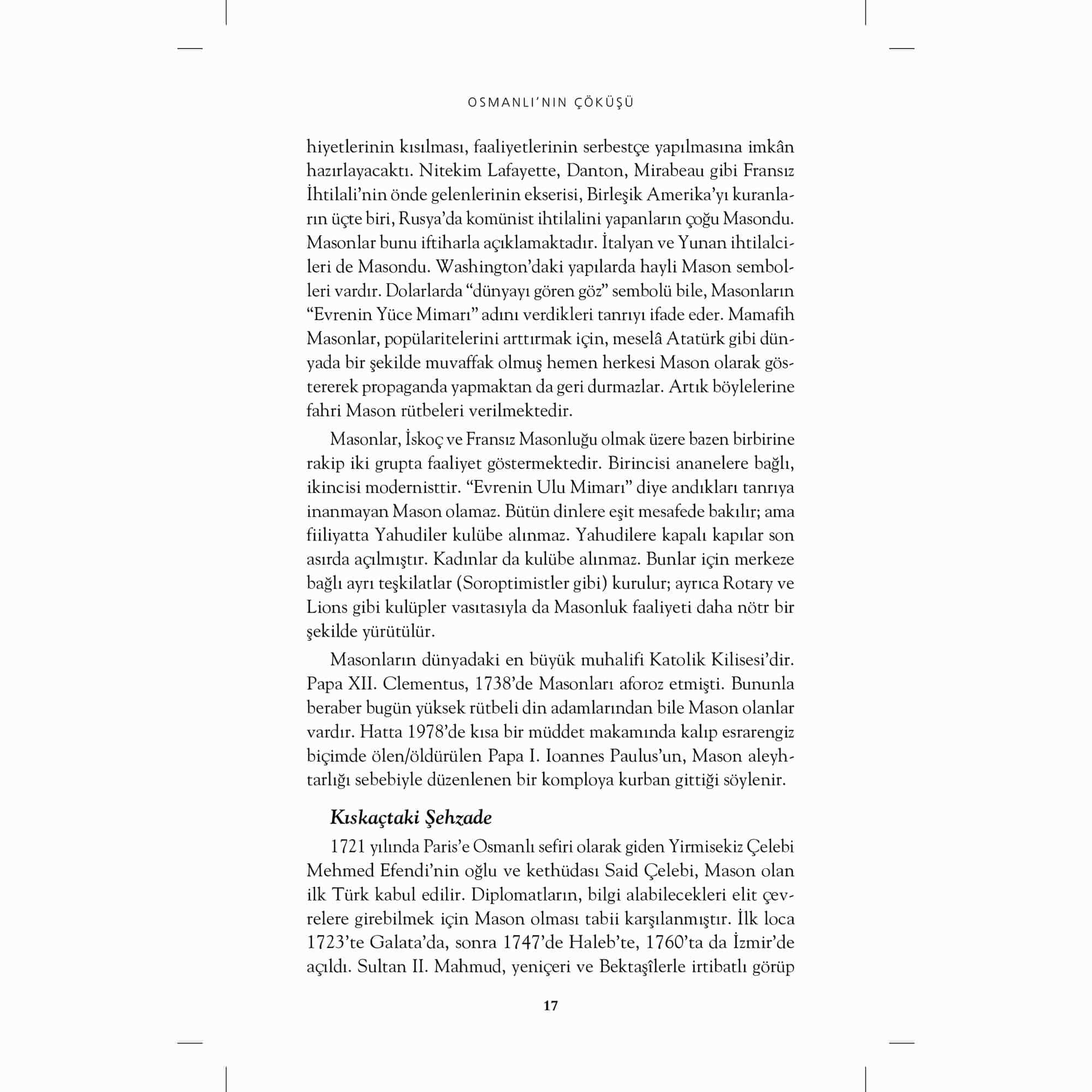 Kimi “Hasta Adam” dedi… Kimi kendi menfaati uğruna hastayı iyileştirmeye kalkıştı… İsyanlar, darbeler, Jön Türkler, İttihat ve Terakki, Balkan Harbi derken Osmanlılar, ellerinde kalan son toprak parçasını kurtarma derdine düştüler. Ancak bilanço ağır oldu. İmparatorluk, pek çok parçasını geride bırakırken bambaşka bir hâle dönüştü. Türkiye Cumhuriyeti, kalan topraklarda, dokuz asırlık bir imparatorluğun üzerinde kuruldu. Bütün bu olup bitenlerin ardında yatan gerçekler neydi? Sultan Abdülhamid nasıl tahttan indirildi? Osmanlı hanedanının başına neler geldi? İttihatçılar kahraman mıydı, hain miydi? Çanakkale geçilseydi neler yaşanırdı? İzmir’i kim ateşe verdi? Son padişah tahtını nasıl kaybetti? Halifeliğin kaldırılmasının perde arkası neydi? İnkılâplara halkın reaksiyonu ne oldu? Yeni devir, hayatımızda neleri değiştirdi? Ayasofya neden kapatıldı? İmparatorluğun dağılan tespih taneleri nereye saçıldı? Bilinen tarihî hadiselerin bilinmeyen arka planına temas eden Prof. Dr. Ekrem Buğra Ekinci’nin kalemiyle Osmanlı İmparatorluğu’nun son günlerinden yola çıkarak Cumhuriyet’i anlayacak ve ardından yaşananlara dair pek çok tartışmanın cevabını bulacaksınız: Osmanlı'nın Çöküşü / İmparatorluk İttihatçıların Elinde.