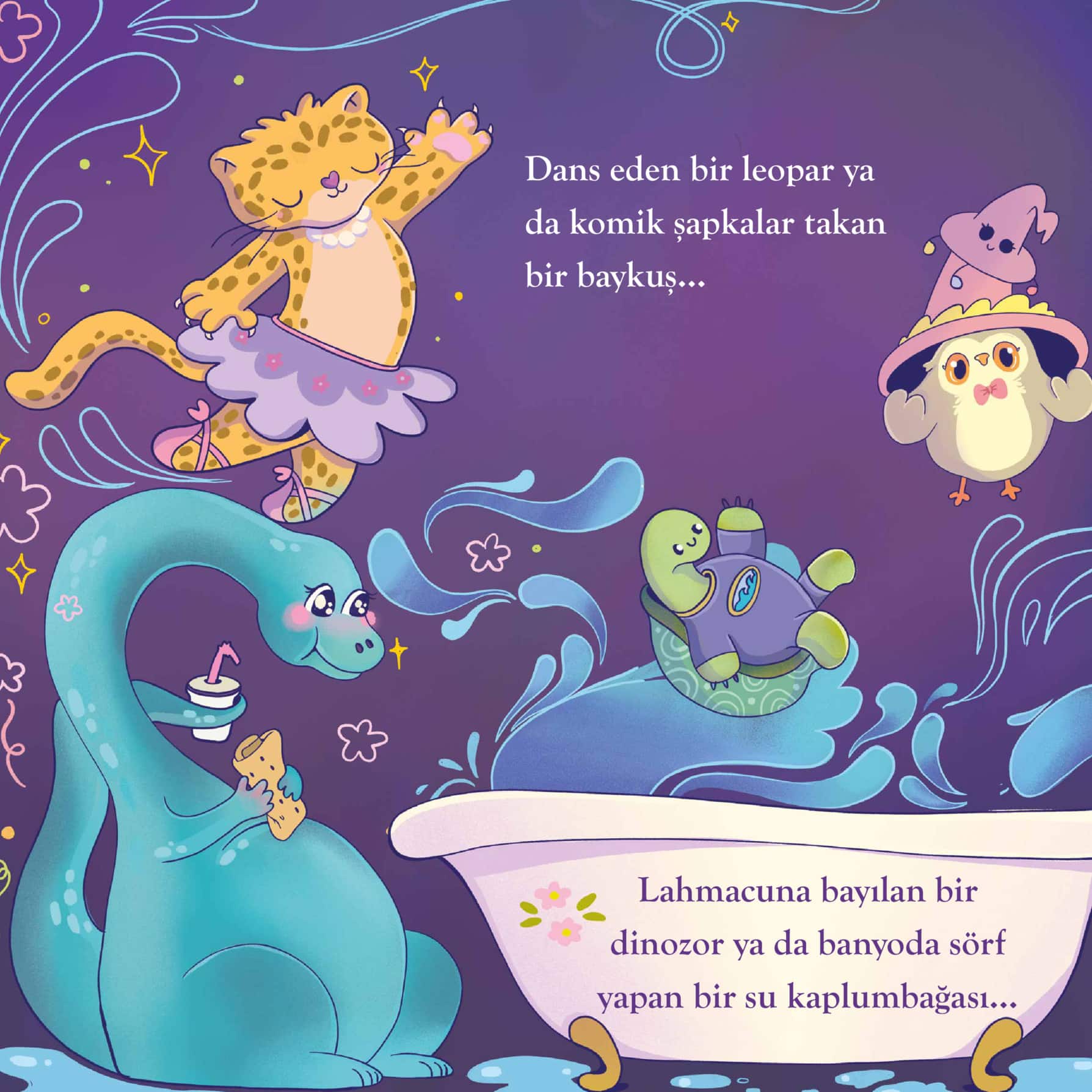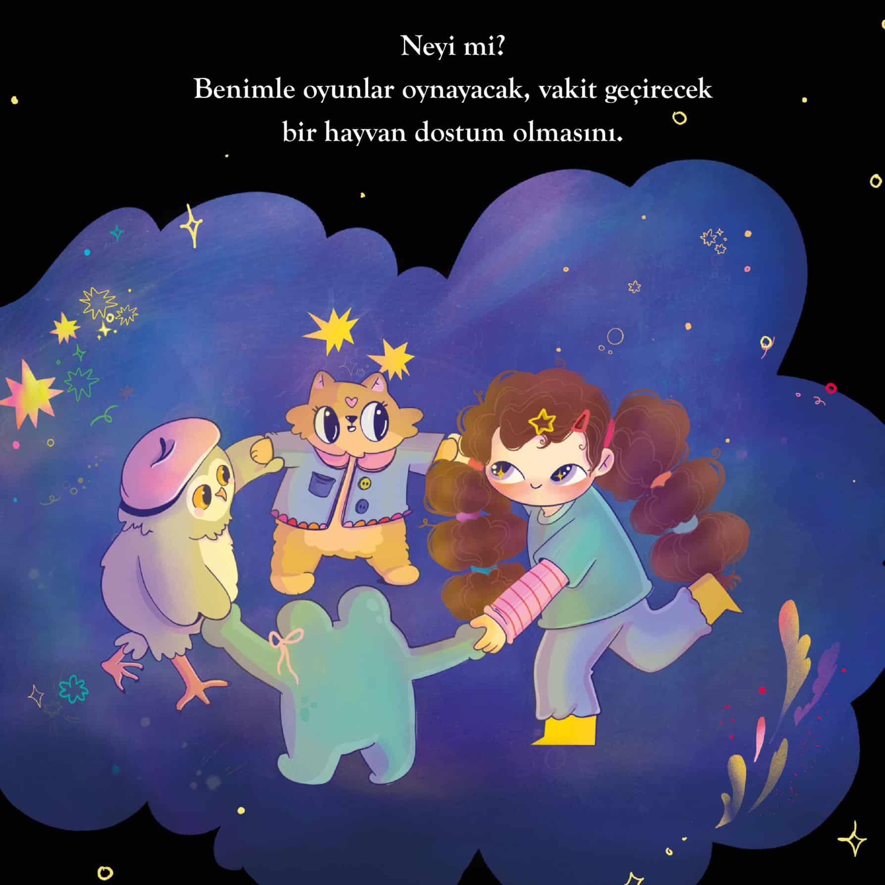 Oyun arkadaşını aramaya ne dersin? Dans eden bir leopar mı, yoksa lahmacuna bayılan bir dinozor mu? Basketbol oynayan bir panda mı, yoksa paten kayan bir zürafa mı? Bu kitapta, oyun arkadaşını arayan minik bir çocuğun, ailesini ikna etme çabasına ve başından geçen birbirinden komik maceralara tanık olacaksınız. Caner Sarıoğlu, hayal gücünün sınırlarını zorlayan bu eğlenceli öyküyle, minik okurları bol kahkahalı bir serüvene çıkarıyor! Haydi, sayfaları çevir ve sen de hayalindeki oyun arkadaşını bul!