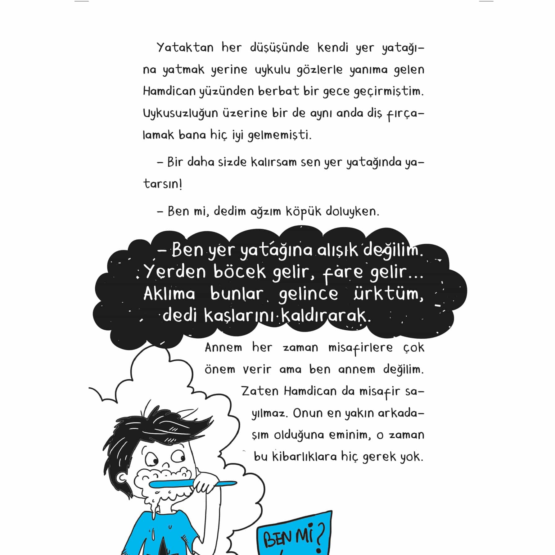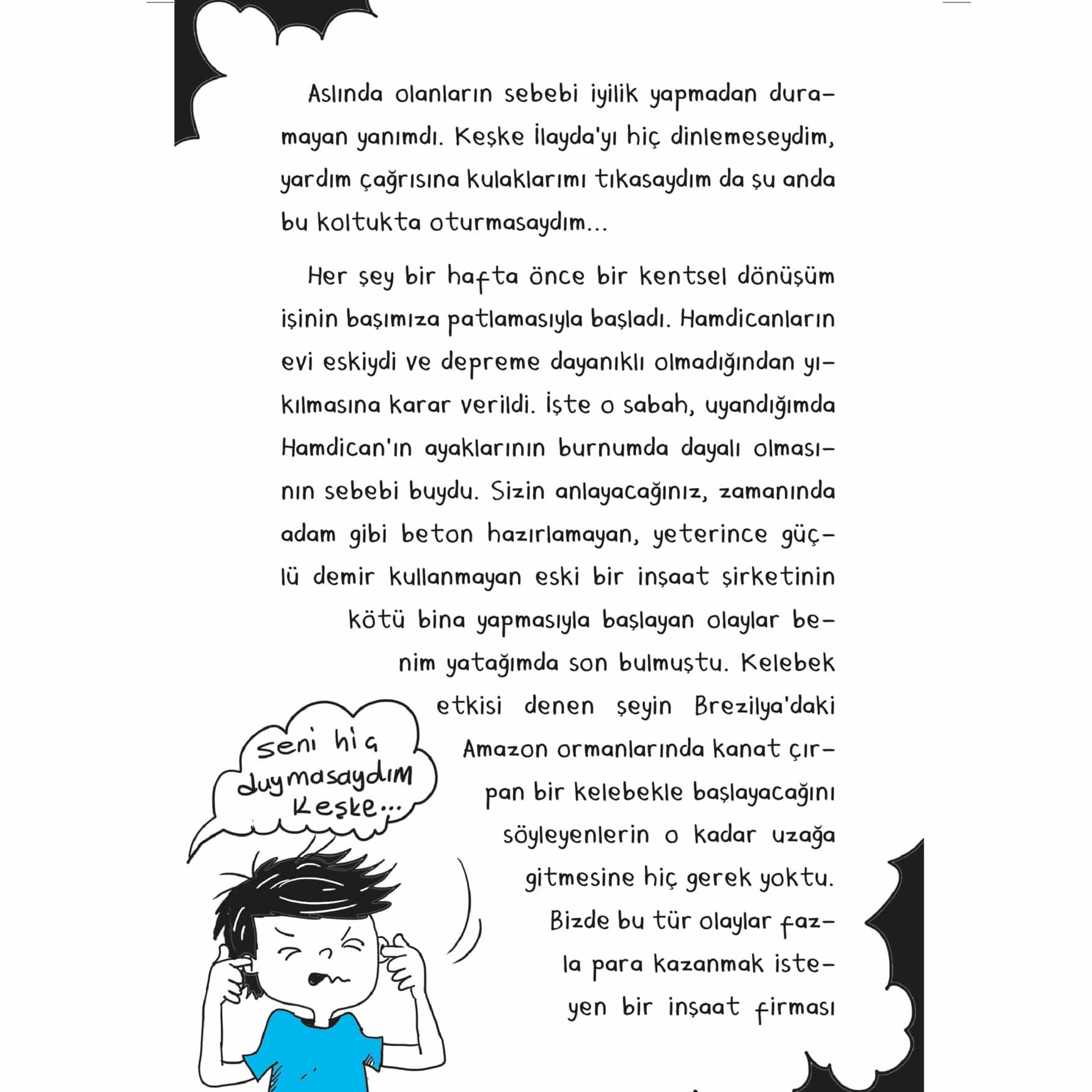 Aklıma izafiyet teoremi geldi. Yaptıklarımız, bizim taraftan havalı ve iyi, başka bir taraftan kötü gözükebilirdi. Hangisi doğruydu acaba? Ben, her şeyi iyi niyetle yaptığıma göre kesinlikle benim baktığım yer doğruydu bence. Yoksa değil miydi? Harika bir ekip olduğumuzu, etrafa huzur ve mutluluk dağıttığımızı biliyordum. Bunda bir kötülük yoktu ki. Var mıydı acaba? Zorbalık mı? Zorbalık da nereden çıktı, biz adalet dağıtıyoruz! Cemcan ve arkadaşları yeni maceralarında ekip olmakla zorbaya dönüşmek arasındaki ince sınırda dolaşırken okuyanları da kahkahaya boğuyor. Bu harika çocuklar, kurallara uymayan insanları yola getirmek için içlerinden gelen karşı konulamaz arzuyu frenlemeyi başarabilecekler mi? Her olayda kırmızı lensler, kara kostümlere başvurmak çok zevkli olsa da acaba doğru mu?