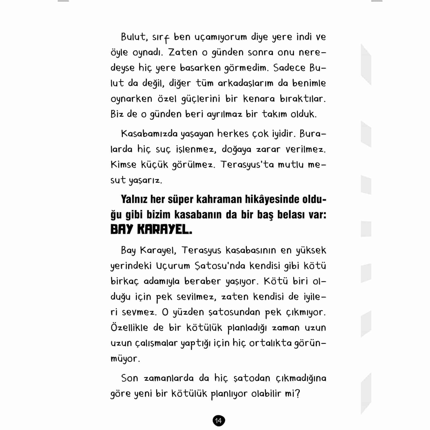 KAHRAMAN SÜPER, süper kahramanlarla dolu bir kasabada özel güçleri olmayan tek kişidir. Bir tırı tek elle kaldırabilecek kadar güçlü babası, ellerinden alev topları çıkartabilen ablası, görünmez olabilen annesi, bıçak gibi keskin dişlere sahip kardeşi, uçabilen arkadaşlarıyla birlikte TERASYUS kasabasında yaşar. Bu EĞLENCELİ ve SIRA DIŞI kasaba BÜYÜK BİR SORUNLA karşı karşıya: BAY KARAYEL. En büyük hayali Terasyus kasabasını ele geçirmek olan Bay Karayel, her seferinde yepyeni ÇILGIN YÖNTEMLERLE kasabaya saldırıyor. Bu seferki planıysa… BEYAZ TEHLİKE!