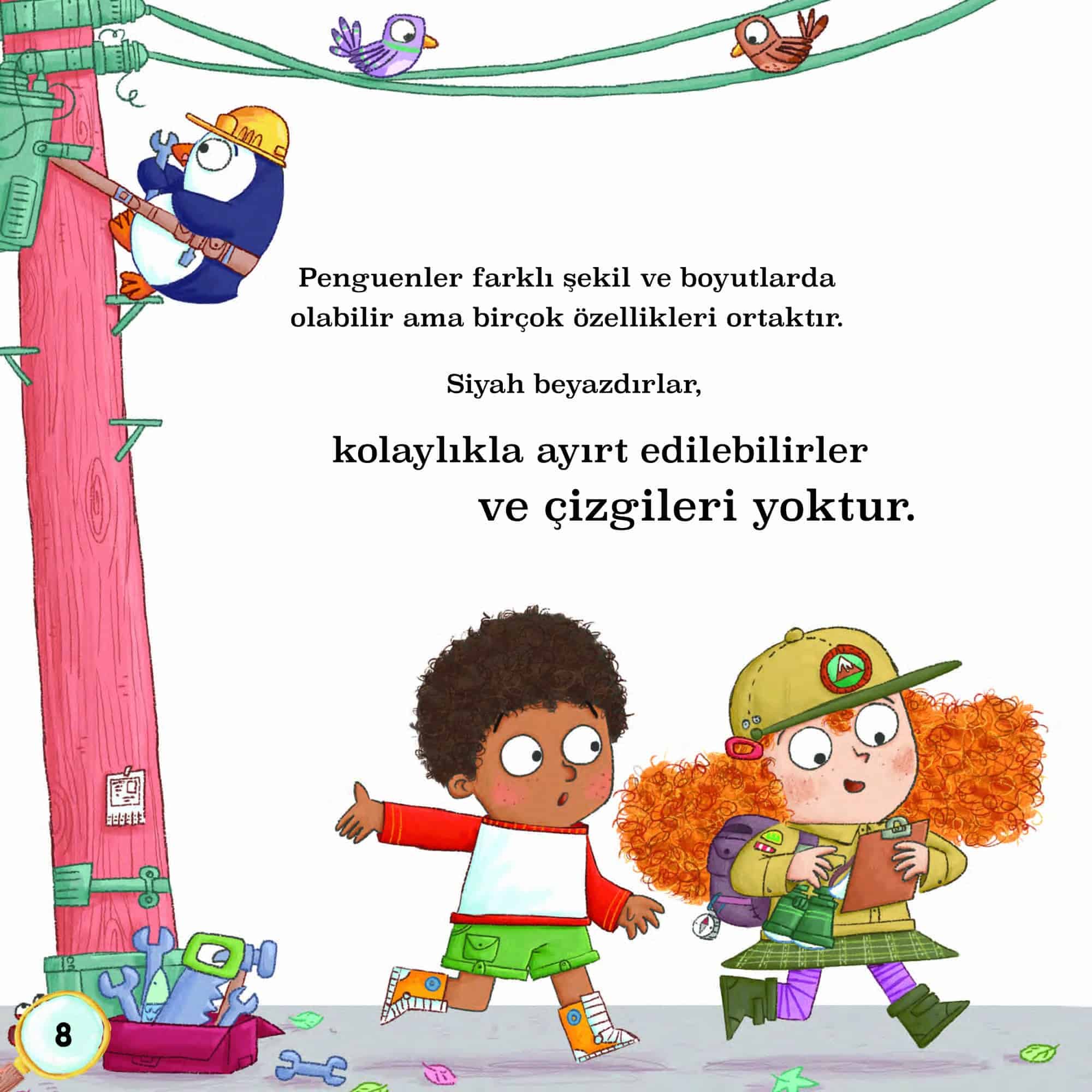 Eğlenceli bir kurguya sahip öykünün içerisinde hayvanları ara bul özelliği de eklenmiştir. Küçük okuyucular her sayfada gizlenen pengueni arayacaklardır. Her sayfada tanıtılan yeni hayvanlar bulunur. Kitabın sonunda ise bu hayvanların isimleri ve özellikleri paylaşılır. Okuma ve dinlemene alışkanlığı pekiştirecek eğlenceli bir eser. Çocuklardaki keşfetme ve merak etme duygusunu destekleyecek bir eser.