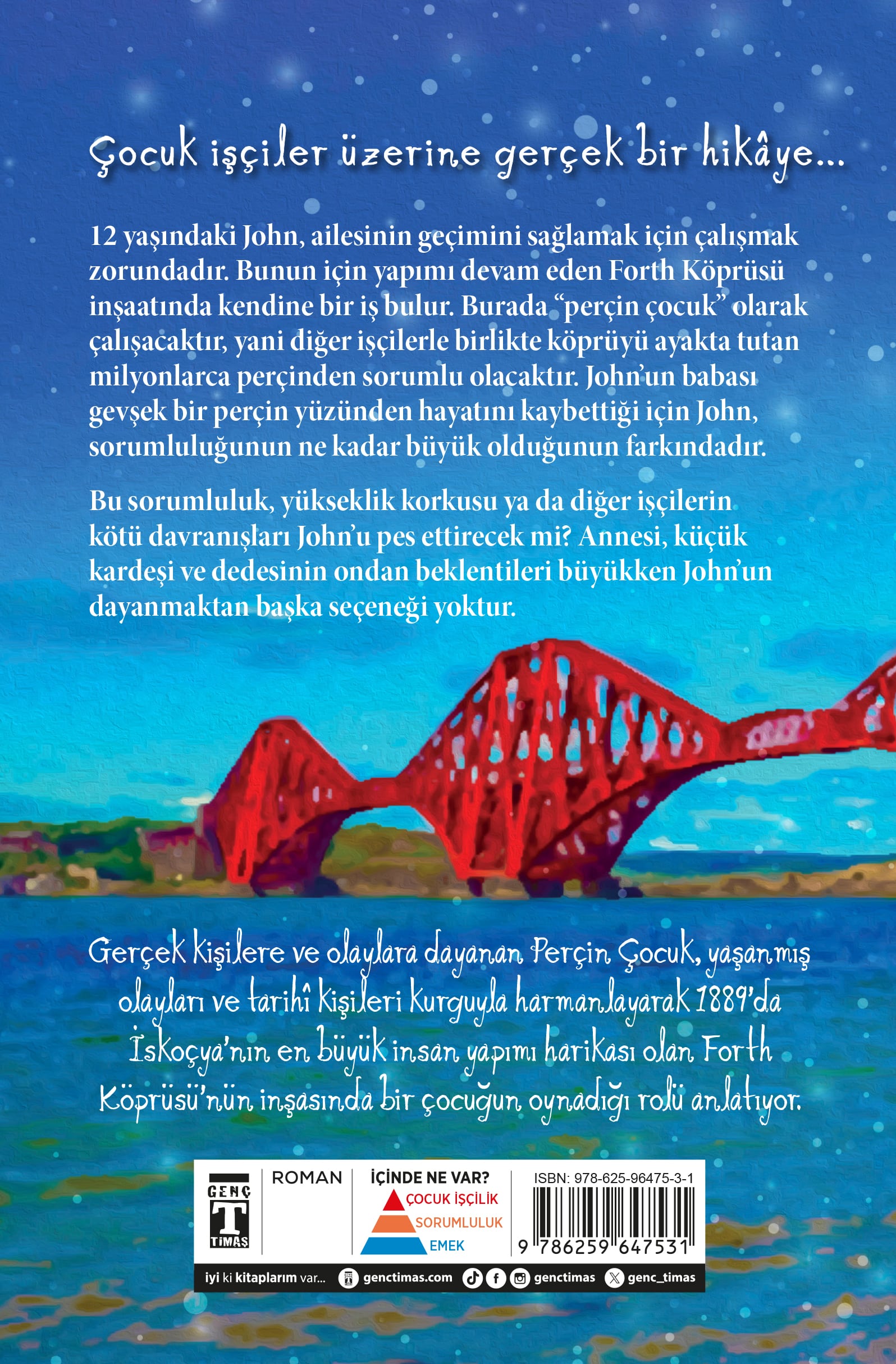 Perçin Çocuk, gerçek bir tarihî olaydan (Forth Köprüsü’nün inşaatı) esinlenerek, emeğin, yoksulluğun ve dayanışmanın iç yüzünü bir çocuğun gözünden anlatıyor. 19. yüzyılın işçi sınıfını, sanayi devriminin çocuklar üzerindeki etkisini sade, içten ve dokunaklı bir dille görünür kılıyor. Okuma sevgisini, bilginin dönüştürücü gücünü ve eğitimin bir insanı nasıl kurtarabileceğini merkeze alıyor. Hem tarihî hem insani bir hikâye: geçmişi öğretirken duygusal derinliğiyle bugüne de ayna tutuyor. Kitap, tarih, edebiyat ve değerler eğitimi açısından mükemmel bir kesişim noktası sunuyor. Okur; Zorluklar karşısında azim, sabır ve sorumluluk bilinci kazanır. Empati duygusunu geliştirir; işçi sınıfı çocukların yaşadığı adaletsizliğe farklı bir pencereden bakar. Kendi yaşıtlarının ağır şartlarda çalışmak zorunda kaldığını görerek, farklı yaşam koşullarına duyarlılık geliştirir. Çocuk olmanın sadece yaşla değil, haklarla da ilgili olduğunu kavrar, “çocuk hakları” kavramı üzerine düşünür. Sanayi devrimi döneminde çocukların hangi koşullarda yaşadığını öğrenir, bugünkü hakların tarihsel bir mücadeleyle kazanıldığını keşfeder. Sanayi çağının çocuklar üzerindeki etkisini görür; geçmişi anlayarak bugünün sosyal koşullarını daha bilinçli değerlendirir.
