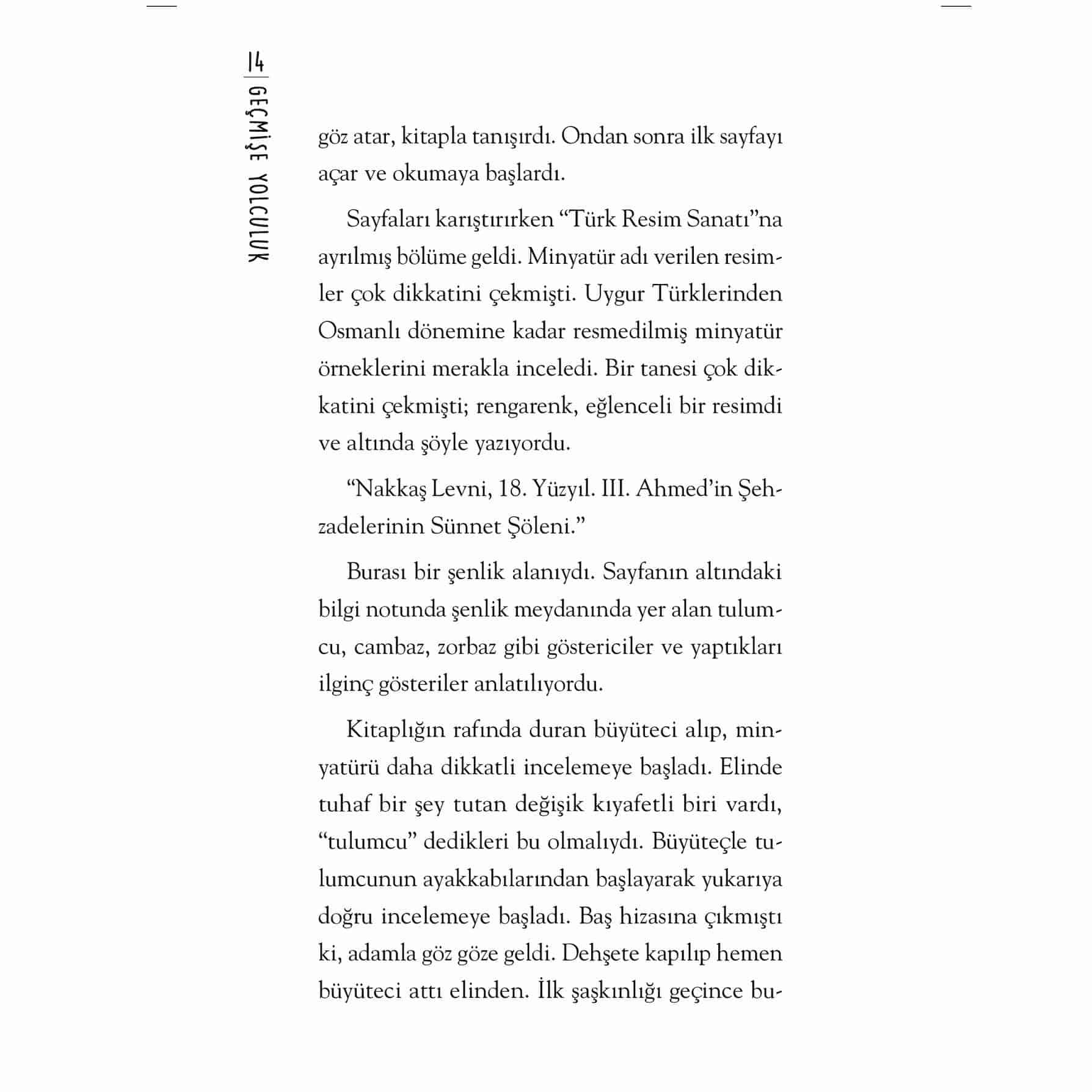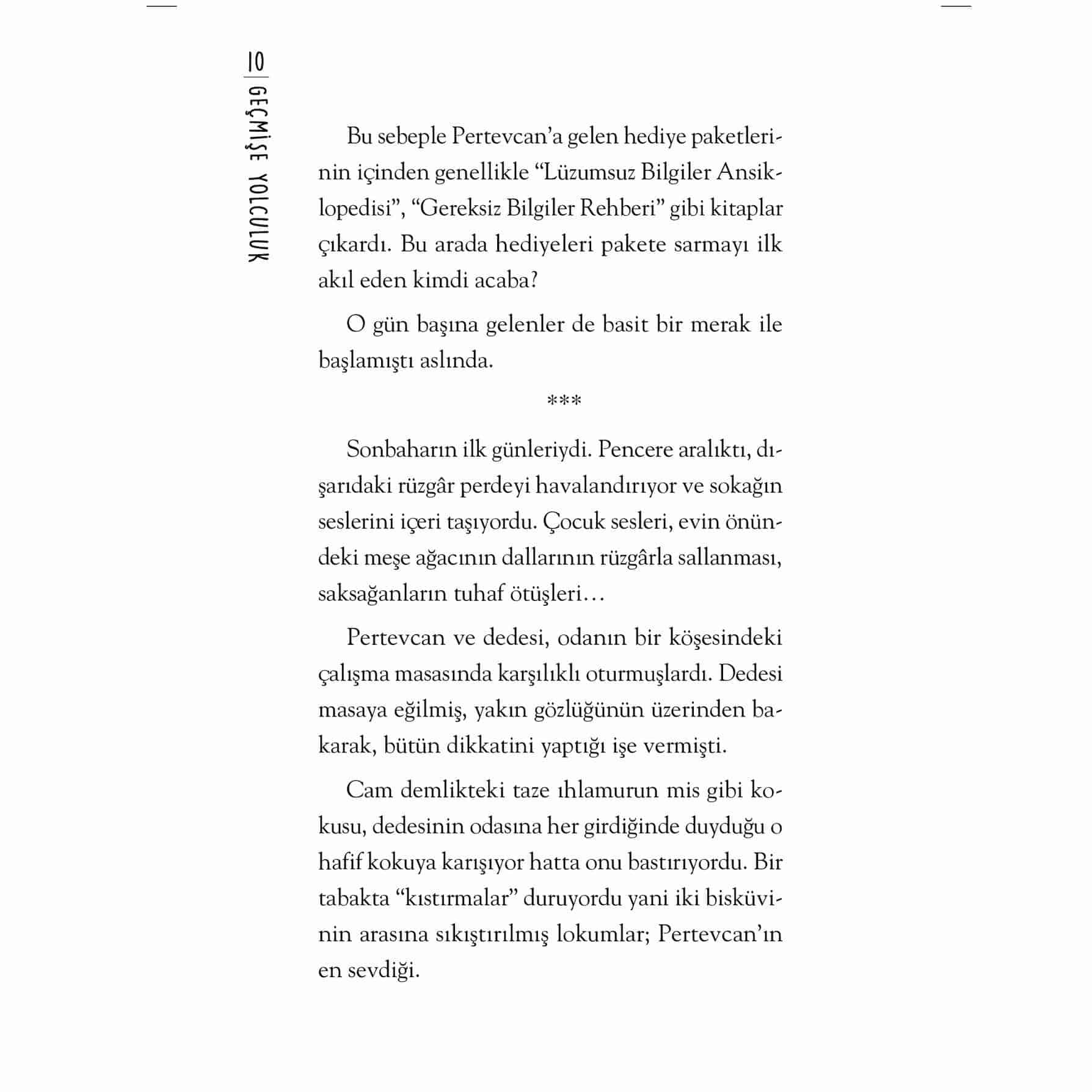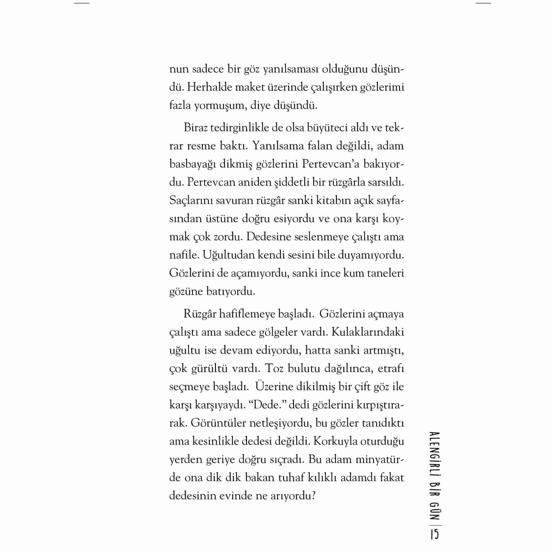 Her şey alengirli bir günde meraklı Pertevcan’ın kitaplığın tozlu raflarından eski bir kitabı bulmasıyla başlar. Gizemli bilmeceler, sırlı mürekkepler, hangi kapıyı açacağı bilinmeyen anahtarlar… Ejderhalar, laleler, şeker bahçeleri, aynalar… Her sözün başka başka anlamları, her pusulanın işaret ettiği yollar var. Okuyup çözebilene… Bakıp, anlayabilene… Pertevcan bulmacaları çözüp, geleceğin ve aslında yaşadığı zamanın kapısını açacak anahtarı bulabilecek mi? Bu tuhaf yolculukta ona eşlik eden esrarlı arkadaşıyla, hapsolduğu geçmişten kurtulabilecek mi? Yoksa gelecekte bıraktığı evi ve hayatı, uyandığında yarım yamalak hatırladığı bir rüya olarak mı kalacak?" “Venedik’ten gelir bin bir hediye saraya Biri bin görürsün bakarsan aynaya, Önce söyletmelisin doğruyu kapıya Kavağa çık lakin inanma her duyduğuna, Çünkü biri yalan biri doğru söyler Aynayı ayna yapan ‘sır’ıdır derler.”