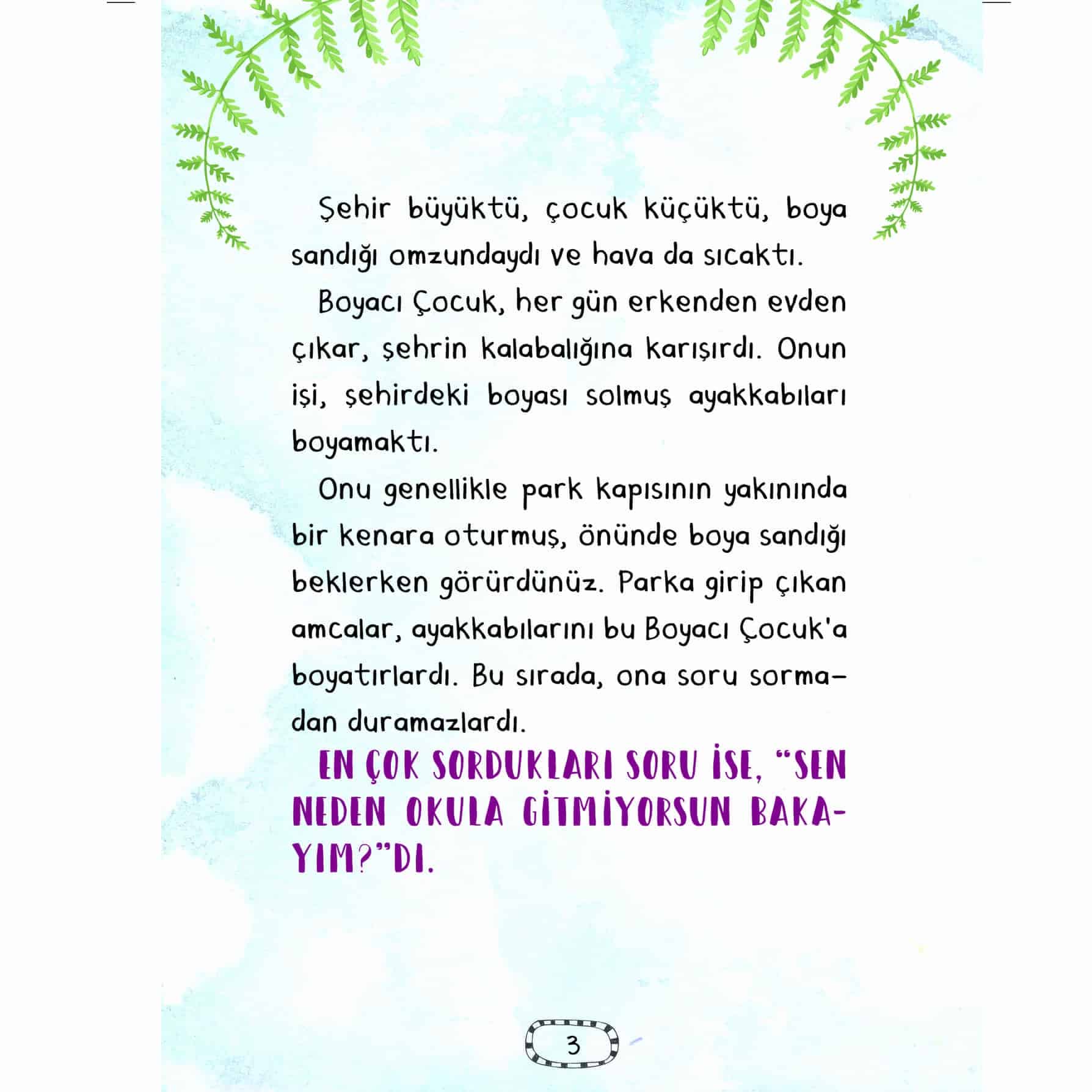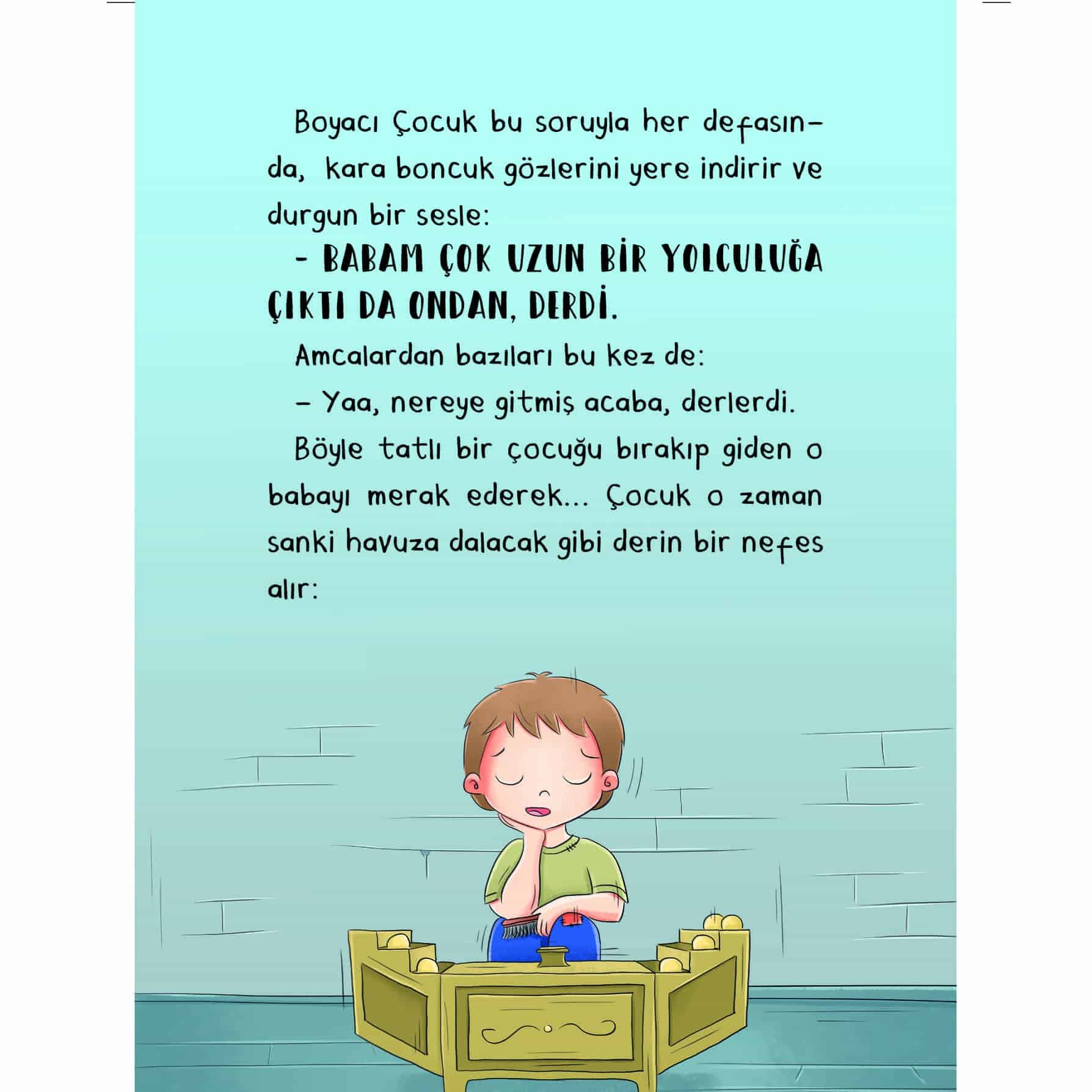 Boyacı Çocuk, kocaman bir şehirde yaşamaktadır. Her gün karşılaştığı, ayakkabılarını boyadığı amcalara, boya yaparken bir masal anlatır. Bu masalda baykuşlar, ağaçkakanlar, denizleri kirleten insanlara mürekkep fırlatan mürekkep balıkları ve daha neler neler vardır. Çocuk, bir gün uzaktaki bir adaya gitmeyi ve masalını orada anlatmayı ister. Peki Boyacı Çocuk, o adaya gerçekten gidebilecek mi? Öykü Makinesi, içindeki birbirinden farklı 10 öyküyle seni hayallerin ötesine götürecek. Makinelerin yönettiği şehirler, bulutların üstünde dolaşan çocuklar, misafirsever kediler ve daha pek çok kahraman, maceralarıyla seni öykülerin içine çekecek!