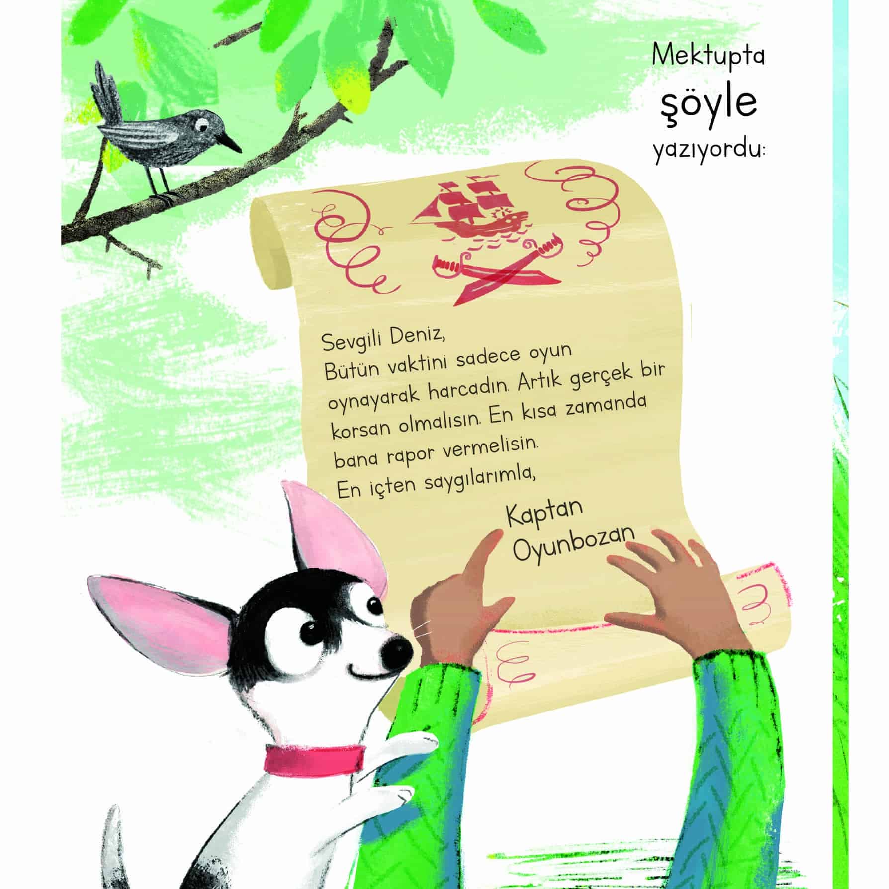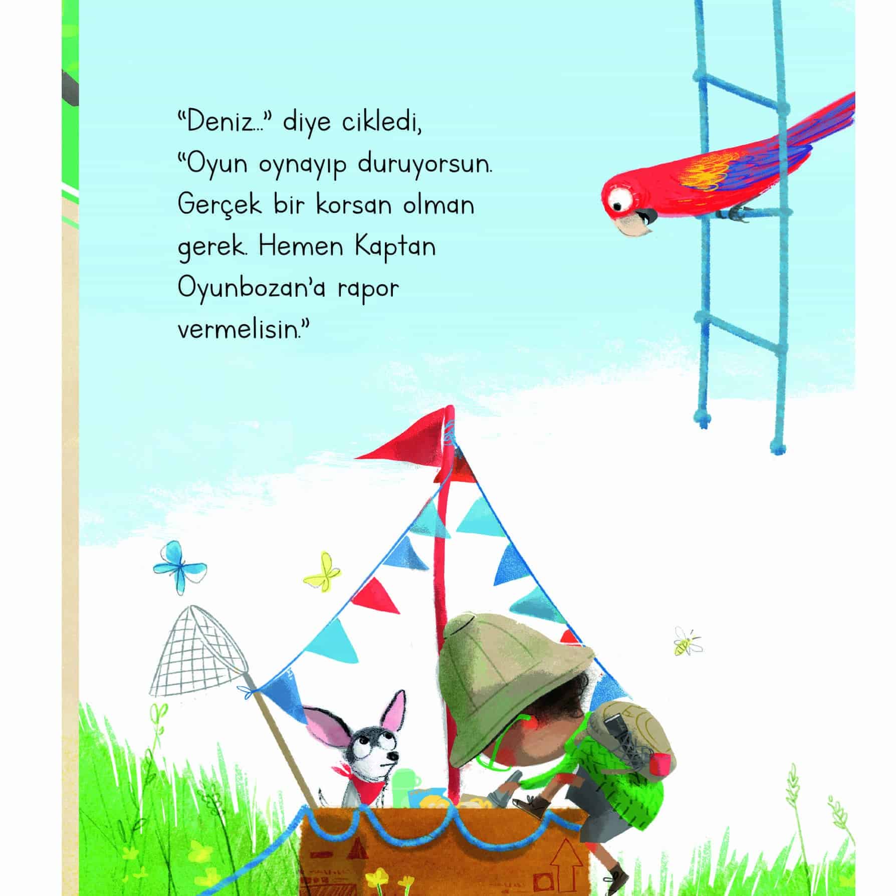 Oyun, bir çocuğun temel gereksinimidir ve ona oyunla pek çok şey öğretilebilir. Aynı zamanda hayal gücünün en çok kullanıldığı alandır. Tüm eğitimciler, oyunun gereksinim olduğu konusunda hemfikirdir. Çocuklarda hayal gücü ve yaratıcılığın ortaya çıkışı, oyun gelişimiyle paralel olarak ilerler. Hayal gücünü kullanarak oyun kuran çocukların ne kadar mutlu oldukları herkes tarafından görülür. Sen Gerçek Bir Korsan Değilsin, oyun ve hayal gücünü bir araya getiren bir kitaptır. Bu kitap, bir çocuğun oyun oynarken hayal gücünü ne kadar ustalıkla kullandığını gösterir ve çocuğun “gerçek bir korsan” olması beklenen ebeveyni de içine çeker. Anne ve babası tarafından gerçek bir korsan olması beklenen Deniz, “Bir dakikaya oradayım!” diyerek oyununu bırakmazken onları da oyununa katıyor. Böylece hep birlikte eşsiz maceralar yaşıyorlar. Sen Gerçek Bir Korsan Değilsin, günlük hayatta macera ve hayal gücünü bulmak ve onun bir parçası olmakla ilgilidir. Çocukların oyun aracılığıyla hayal güçlerini ve yaratıcılıklarını nasıl geliştirdiklerini, ebeveynlerin de bu sürece nasıl dahil olabileceklerini gösterir.