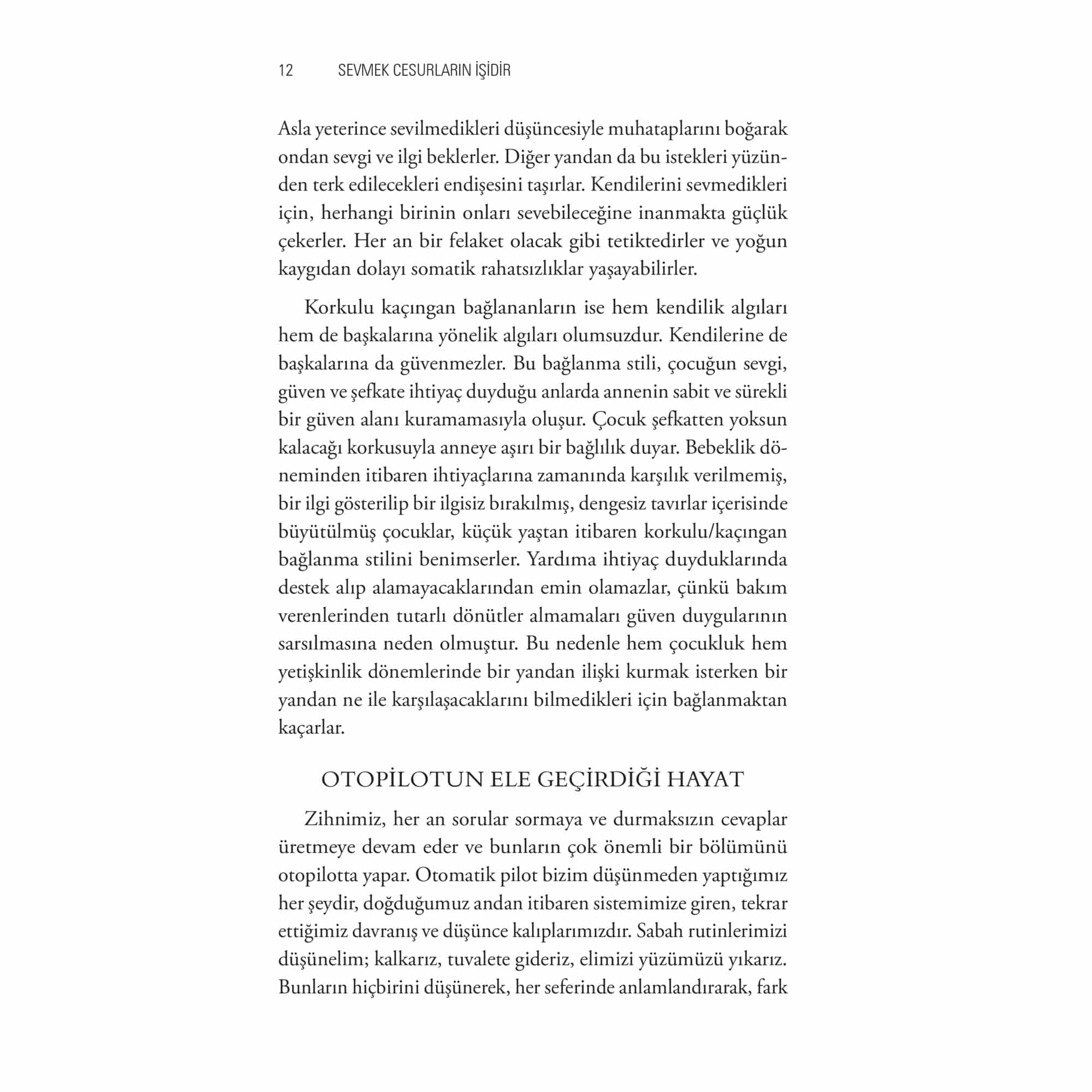 Nasıl oluyor da bazı insanlar daha kolay ve güvenli ilişki kuruyorlar? Neden bazıları ilişkilerde katı ve tutukken bazıları daha esnek? Neden kimileri kolayca affederken kimileri yanlışlara ömür boyu takılıp kalıyor? Neden bazı insanlar yeniliklere kolayca adapte olurken diğerleri acı çekiyor? Neden bazılarımız için geçmişin atlatılması bu kadar zor ve gelecek kaygı dolu? Neden kimi insanlar sorunlar karşısında korkusuzken bazıları en küçük bir sorunda pes edip yıkılıyor? Zihin yargılarla çalışır ve her an yeni bir yargı üretir. Sonra bir an gelir ve bu otomatik kalıpların artık yaşam doyumumuzu kısıtladığını hissederiz. “Başka bir yol mümkün mü?” düşüncesi içimizde uyanır. O yolda kendimizle, alışkanlıklarımızla, otomatik pilotumuzla, duygularımızı nasıl işlediğimizle veya işleyemediğimizle, hasetle, şükranla, kayıpla, yasla, öz şefkatle, aşkla ve insan olmaktan kaynaklanan pek çok halle karşılaşır, bunları tecrübe ederiz. Bu tecrübelerden geçmek yani yaşamak için sevmek gerekir. Sevmek; aktif bir sevme işi ve iradi olarak verdiğimiz cesaret isteyen bir karardır. Sevmek cesurların işidir. Birini veya bir şeyi sevdiğimizde eyleme geçme ihtiyacı duyarız. Ona kalbimizde ve hayatımızda bir alan açar ve o alanda genişlemesini mutlulukla karşılarız. Üstelik bunu terk edilme, kaybetme ihtimalimize ve korkularımıza rağmen yaparız. Bir anlam dünyası inşa edebilmek için yola çıkarız. Öyleyse sevgisizlik aslında eylemsizlik ve korkaklıktır. Psikoterapist ve psikodramatist Ayşe Melek Sevmek Cesurların İşidir’de kendimizi keşfetme yolculuğumuza çok yönlü bir kılavuz sunarak rehberlik ediyor.