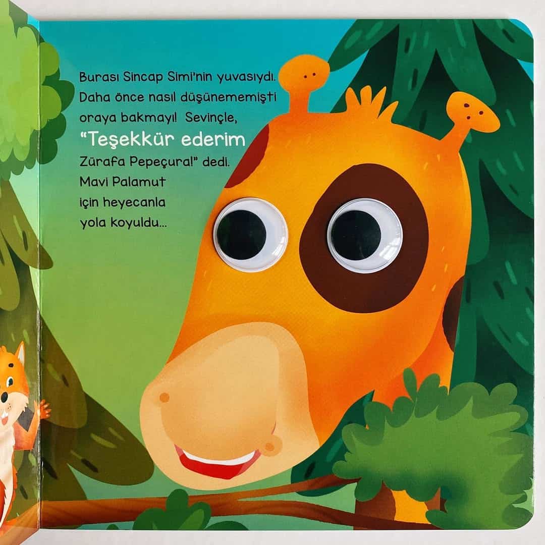 BU KOCAMAN GÖZLER KİMİN?- SİNCAP SİMİ ve Sevimli Dostları Ormanın sevimli canlılarını eğlenceli büyük gözleri ile görmeye hazır olun! Sincap Simi, Aslan Kükrek, Fil Fino, Maymun Macun ve Zürafa Pepeçura… Çocuğunuz bu kitaptaki kahramanlarla tanışırken farkındalık ve istikrar gibi kavramları da eğlenerek öğrenecek.