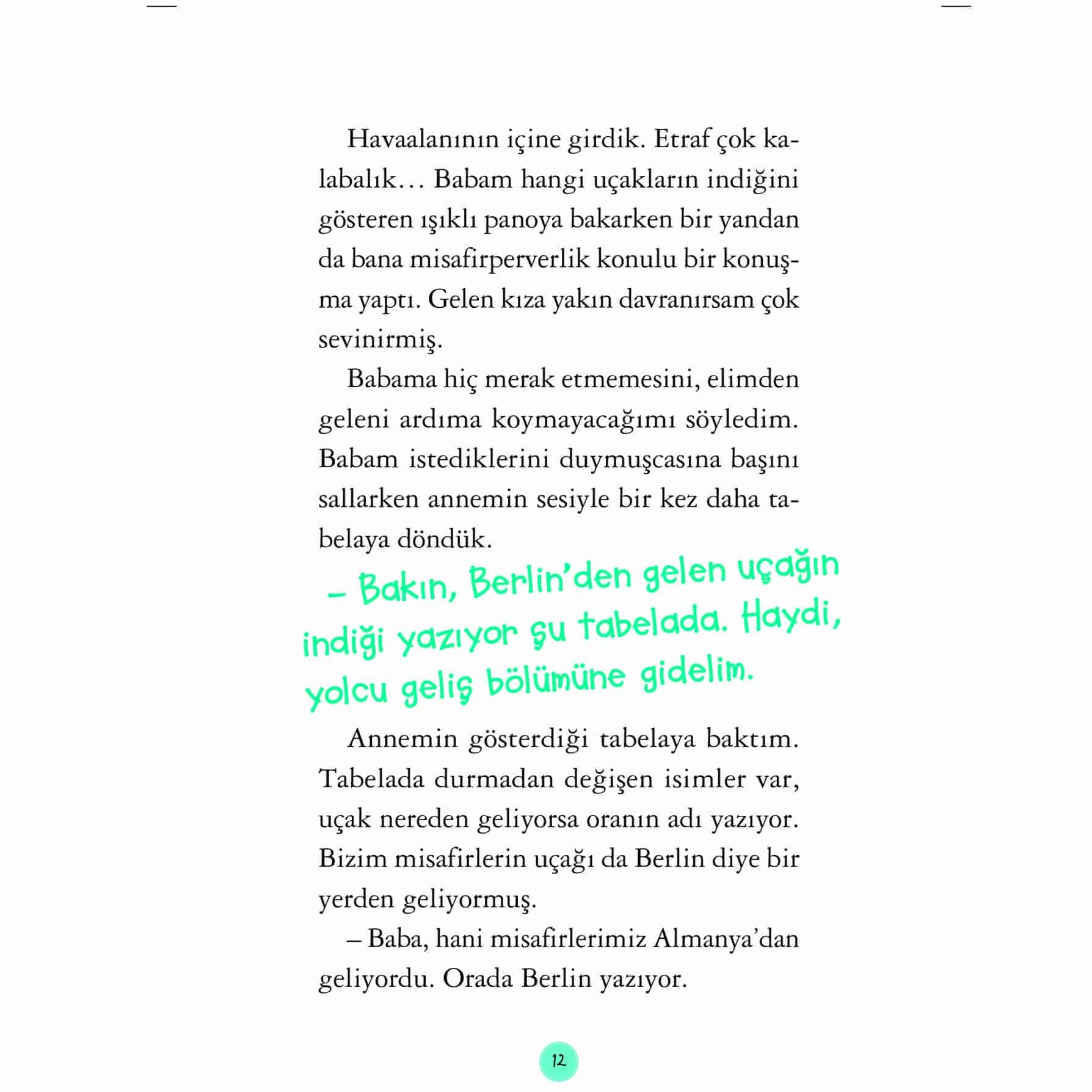 Havaalanının içine girdik. Etraf çok kalabalık… Babam hangi uçakların indiğini gösteren ışıklı panoya bakarken bir yandan da bana misafirperverlik konulu bir konuşma yaptı. Gelen kıza yakın davranırsam çok sevinirmiş. Babama hiç merak etmemesini, elimden geleni ardıma koymayacağımı söyledim.” Bu kitapta Şirin’le birlikte Ortaköy’ü Emirgan’ı, Kanlıca’yı gezecek ve çoook eğleneceksiniz!