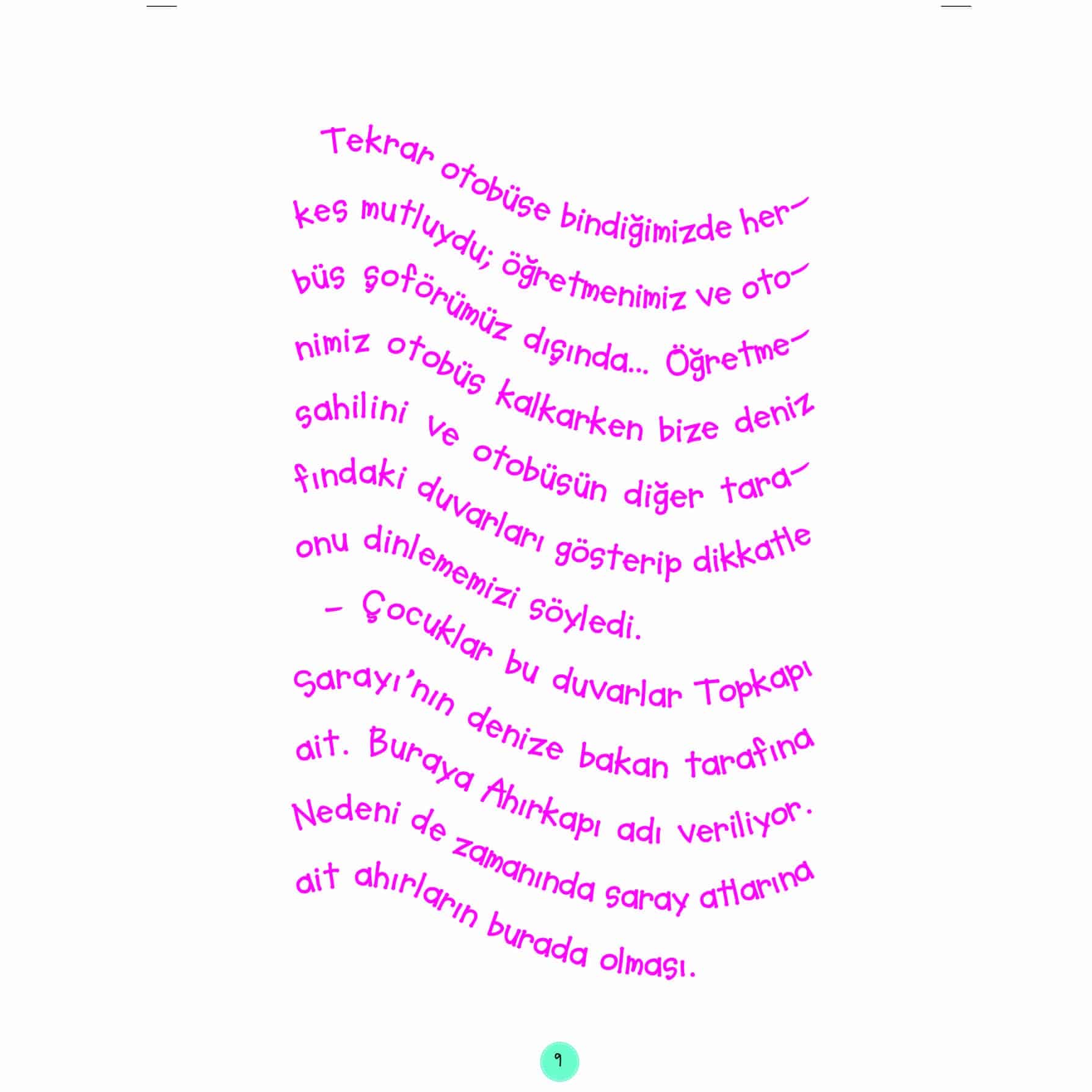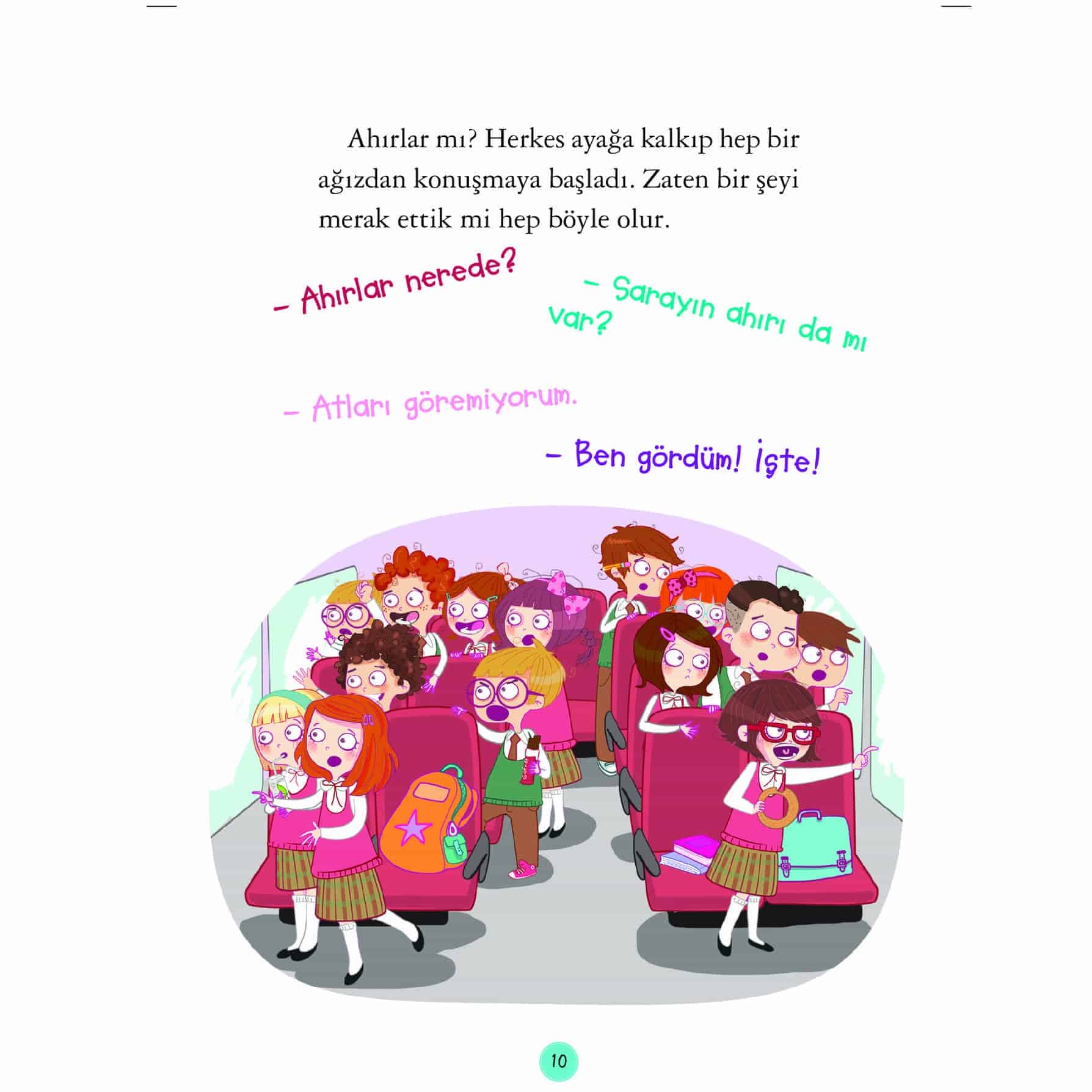“Ben tahtı seyretmeye öyle dalmışım ki sınıftakilerin odanın diğer tarafına geçtiğini fark etmemişim bile. Tam onların yanına gidecekken odaya simsiyah giyinmiş iki kişi girdi. Fısır fısır konuşuyorlardı. Tahtın yanına kadar geldiler. Biraz ürperdim.” Bu kitapta Şirin’le birlikte Topkapı Sarayı’nın birbirinden ilginç odalarını gezecek ve çoook [...]