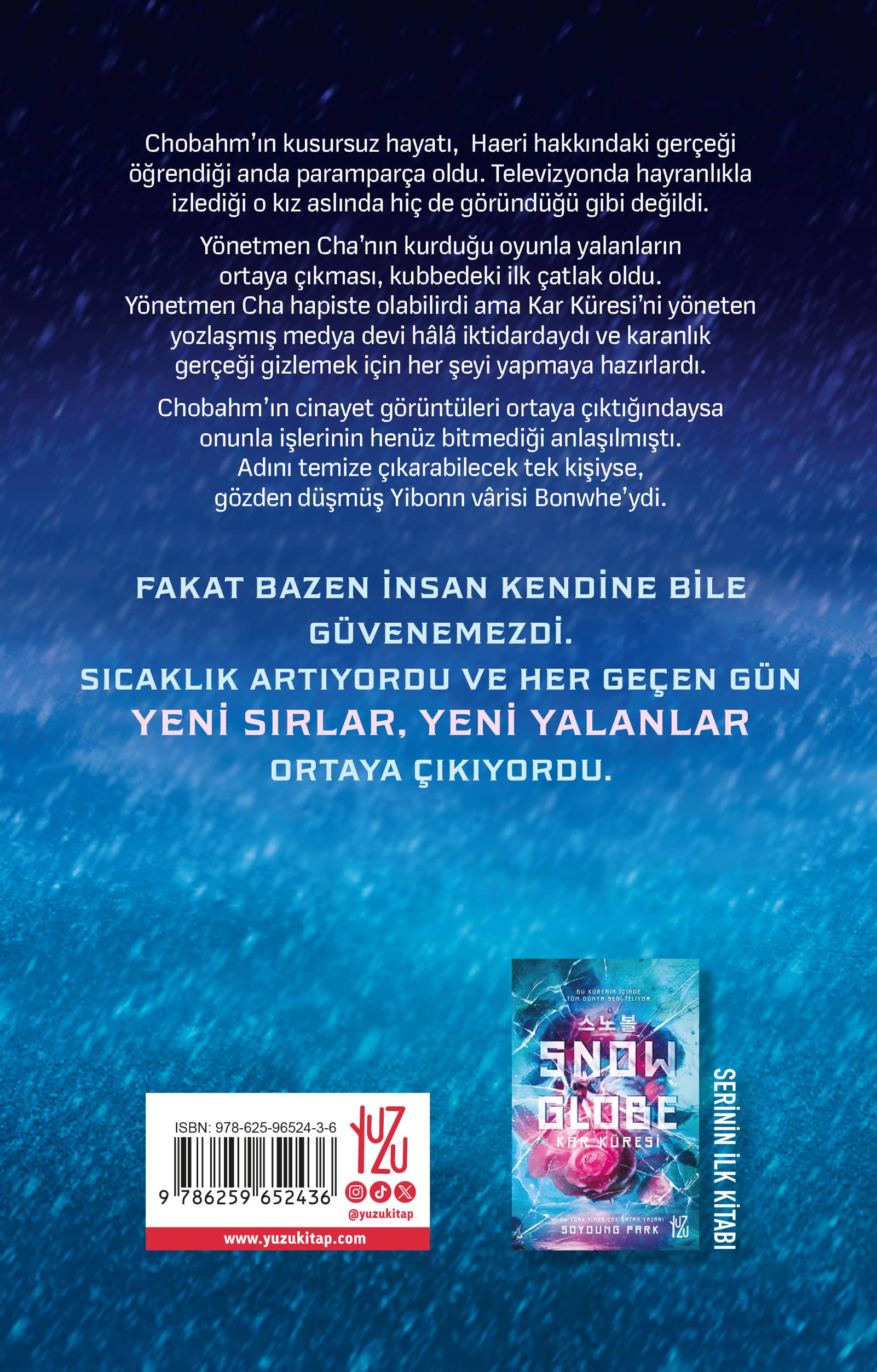 -New York Times Çok Satanı -Kore'de çığır açan distopya serisinin son kitabı. -“The Hunger Games” ve “Squid Game” atmosferini birleştiren sürükleyici bir roman. -Kore ve Amerika’da çığır açan distopya serisinin final kitabı olan Snowglobe 2, gerçeklik, medya ve kimlik üzerine keskin bir toplumsal eleştiri sunuyor. -Gerilim, teknoloji ve insanlık arasındaki sınırları sorgulayan roman, umut, direniş ve dayanışma gibi kavramları irdeleyerek insan olmanın özüne dair eleştirel bir bakış sunuyor. -Medya ve teknoloji çağında bireyin özgürlük mücadelesini çarpıcı bir dille ele alıyor.