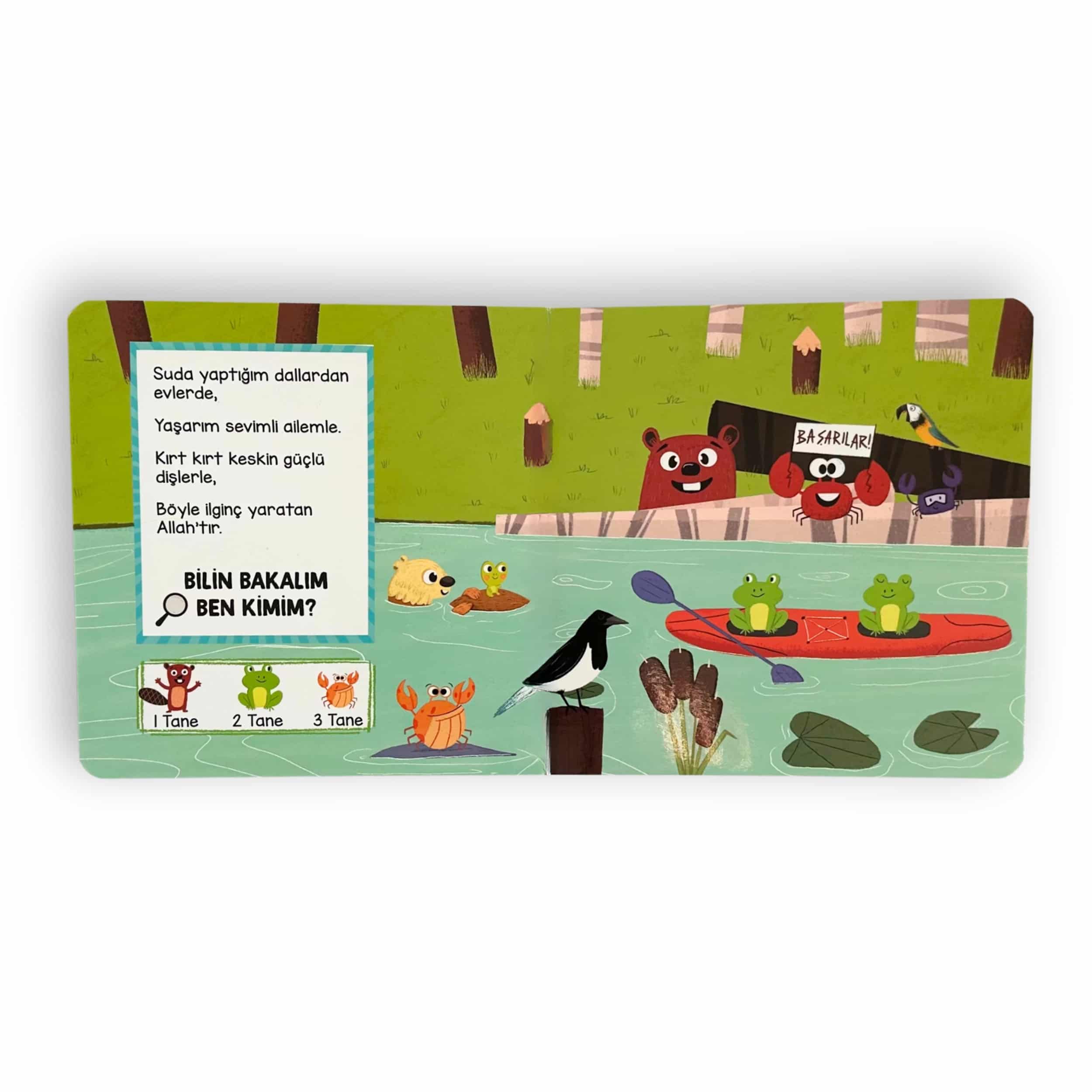 Merhaba dünyayı ve canlıları yeni yeni öğrenen minik okur.Hayranlıkla baktığın bu şirin hayvanlar ne kadar da güzel değil mi! Onları, tıpkı senin gibi, bu kadar güzel yaratan Allah. Haydi açalım kitabımızı ve senin için hazırladığımız sürprizleri beraber görelim.