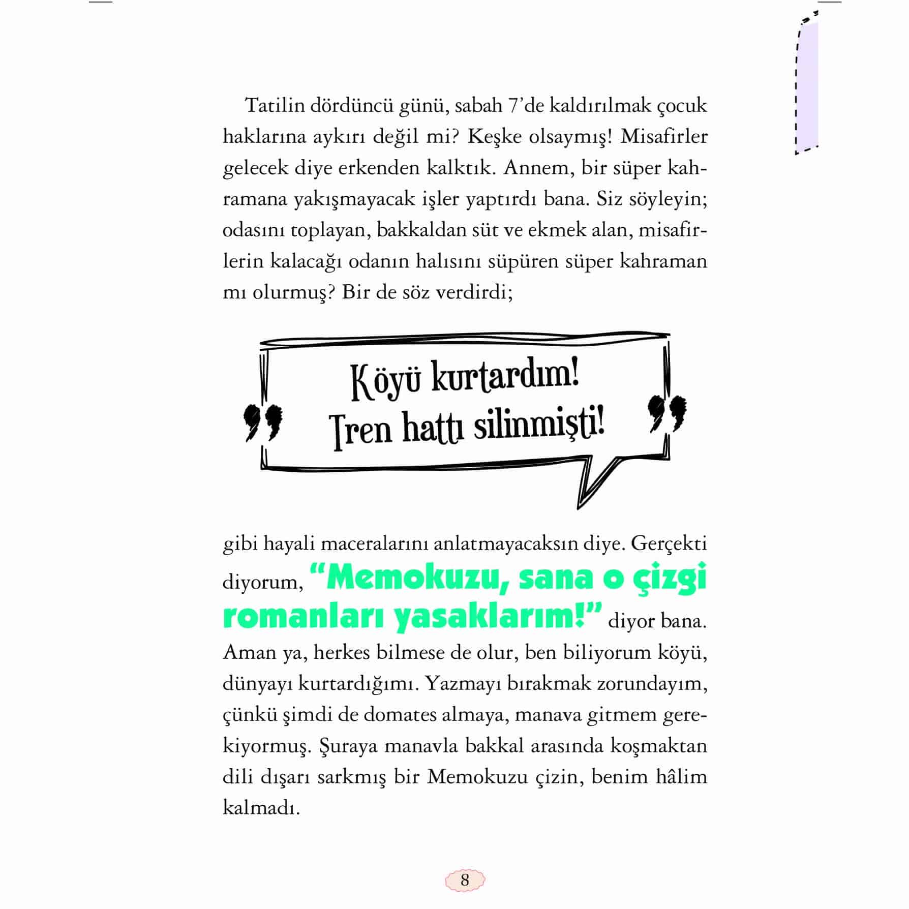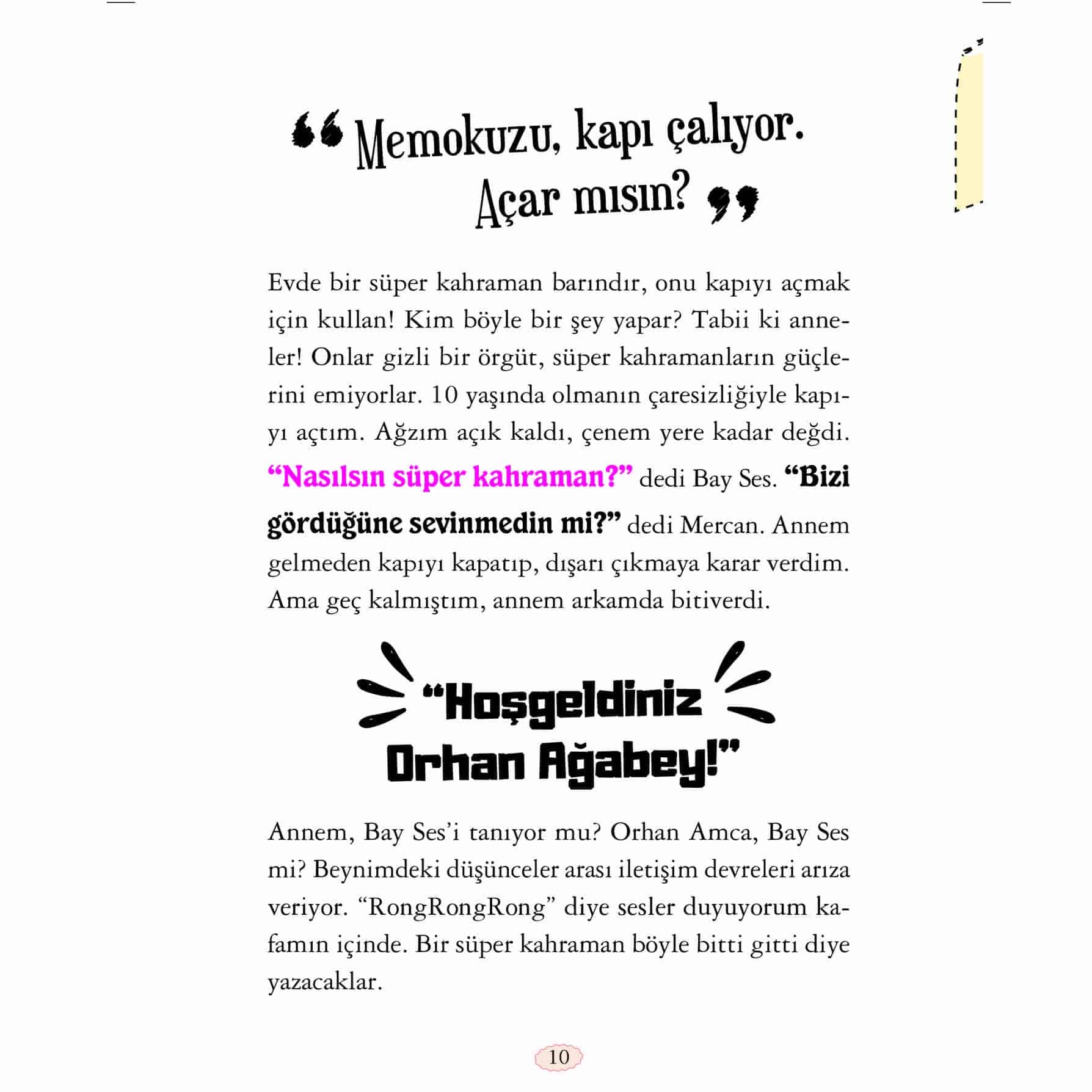 O bir süper kahraman olduğunu farkında olmayan süper kahraman. O bir Memokuzu. O bir MK. Süper kahraman olmanın öyle kolay olmadığını, maceraların onu tatilde bile bırakmayacağının ise farkında değil! Ta ki evlerinin kapısı çalınıp da Bay Ses ve Kırmızı Saçlı Ses’i karşısında görene kadar. Üç köprülü şehrin denizlerinde garip araçlar görülmeye, balıkçı motorları ortadan kaybolmaya başlamıştır. Bilim insanları çaresiz, şehirde yaşayanlar şaşkındır. Sırlar, gizemler, kaybolanlar denilince de akla bir tek süper kahraman gelir; Memokuzu. Ama bu sefer işi biraz daha zor, karşısında çok zeki, her türlü olasılığı hesaplayan, tuzaklı oyunlar hazırlayan bir yapay zekâ var. Ama yapay zekânın da işi zor, çünkü her türlü sorunu çözmeye programlanmış zekâda bir süper kahramanla daha önce karşılaşmadı. Memokuzu’nun bu macerada onun kadar zeki, heyecanlı, hızlı yardımcılara ihtiyacı var. Haydi sevgili okur, DÜŞÜN, ÜRET, YAZ. Süper Kahraman’a yardım et!