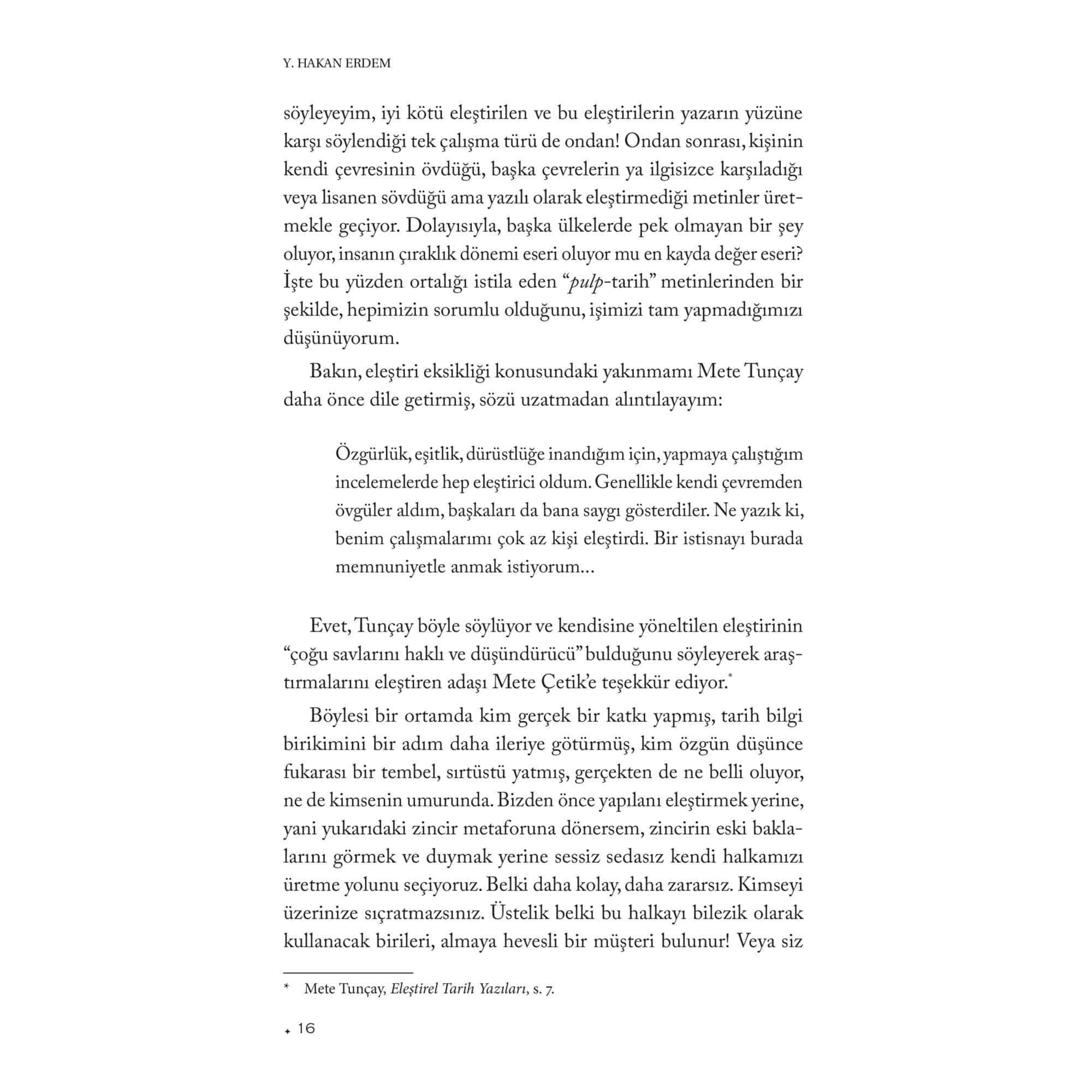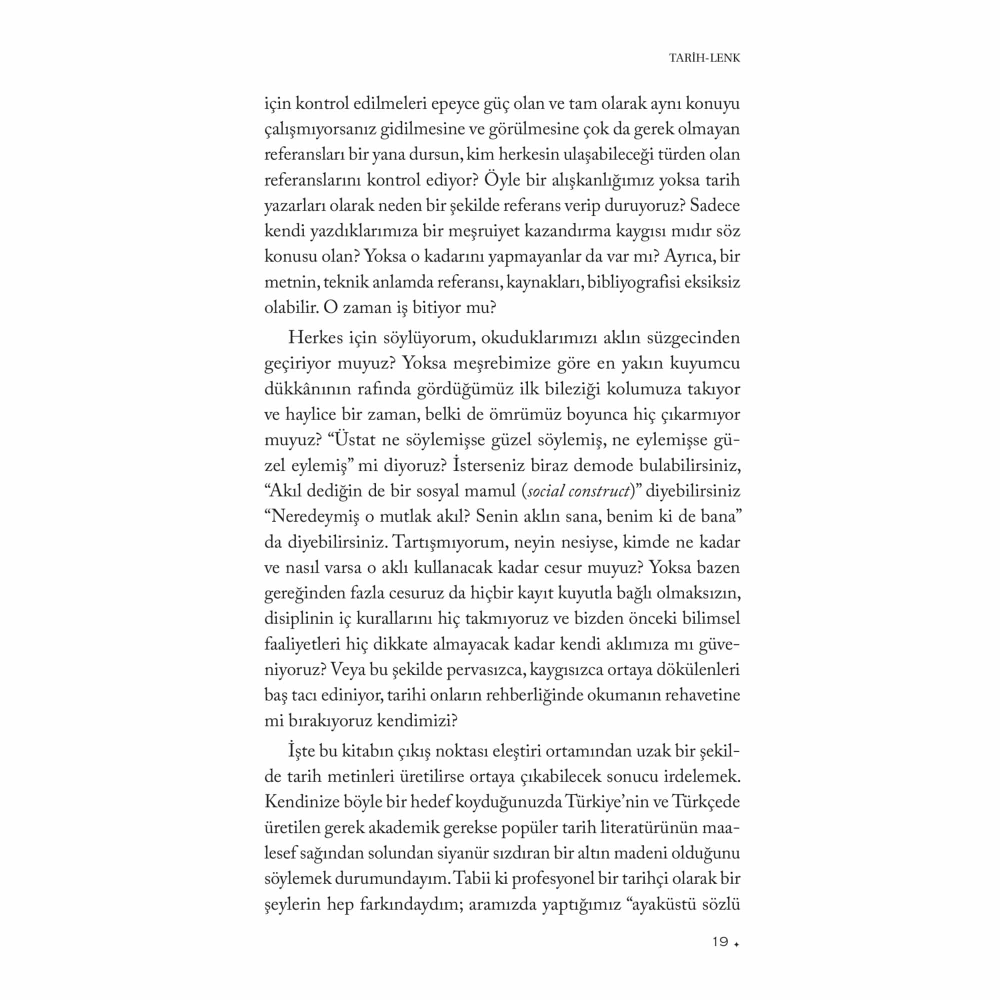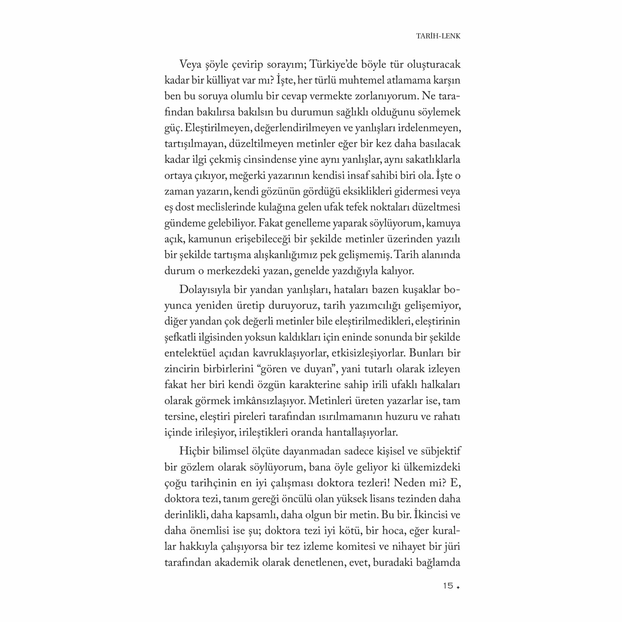 Gerek tarih, gerekse kurmaca alanında ortaya koyduğu eserlerle hem Türkiye’de hem de dünyada kendini kanıtlamış değerli bir kalem olan Y. Hakan Erdem’in tarih yazımı alanında efsaneleşen eseri Tarih-Lenk, tarihî serüvenine Timaş Yayınları’yla devam ediyor. Tarih, maalesef, Türkiye’de herkesin çok iyi bildiğini iddia ettiği bir alan olmasının yanı sıra günlük tartışmaların da odağında olan bir disiplin. Aynı zamanda herkesin kendine göre bir tarafından çekiştirdiği ve bu nedenle de epeyce istismar edilmiş bir alan. Y. Hakan Erdem, Tarih-Lenk isimli bu eserinde anlı şanlı akademisyenlerin ve araştırmacıların kaleme aldıkları tarih metinlerindeki -sıradan okuyucu tarafından genelgeçer doğrular olarak kabul edilmeye başlanan- akılalmaz hataları gözler önüne seriyor, meşhur kalemlerin kendilerine değilse de kâğıttan metinlerine savaş açıyor. Bir taraftan popüler tarih yazarlarının ve bazıları da alanında otorite olarak görülen isimlerin hatalarını düzeltirken bir taraftan da Türkiye’de tarih alanında üzerinde durulmaya korkulan eleştiri türünün güçlü bir örneğini ortaya koyuyor. Artık, tarih namına bildiklerinizin doğruluğundan kuşkulanma zamanı...
