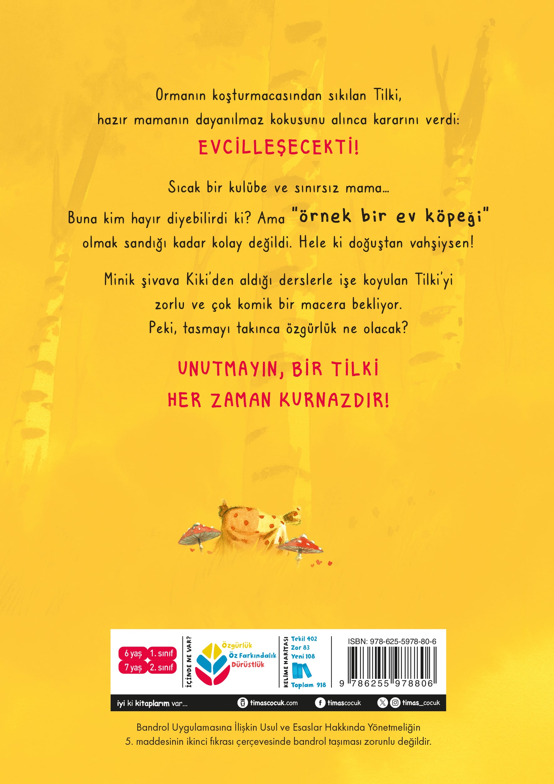 Bu kitap, eğlenceli bir hikâyenin ötesinde miniklere değerli bir yolculuk sunuyor. Tilki’nin evcilleşme çabası, sonunda en önemli gerçeği ortaya koyuyor: Gerçek mutluluk, başkası olmaya çalışmakta değil, kendin kalabilmekte gizli. Mizah dolu anlatımıyla hem güldürüyor hem de çocuklara özgünlük ve özgürlük üzerine düşündürücü bir farkındalık kazandırıyor.