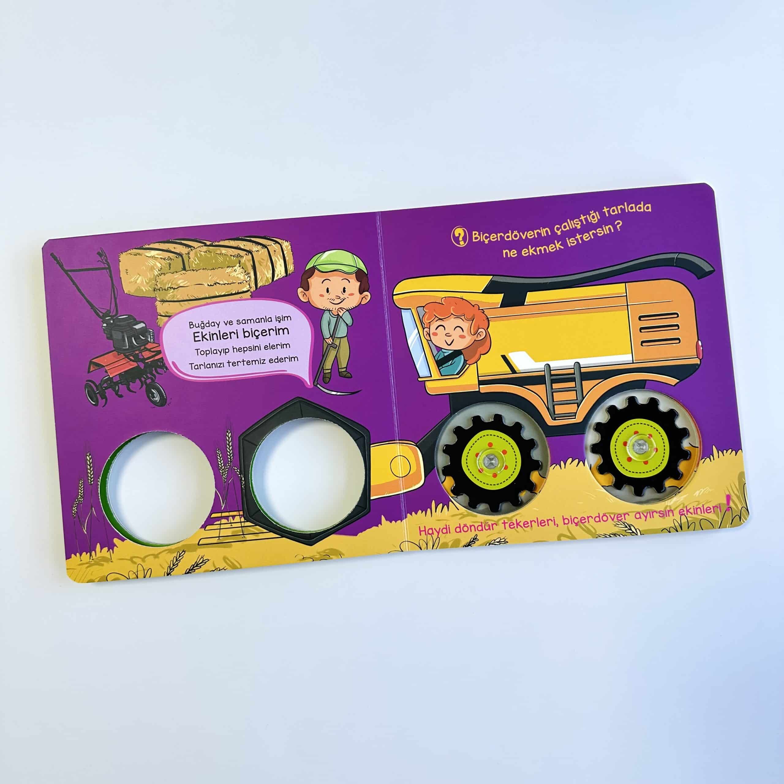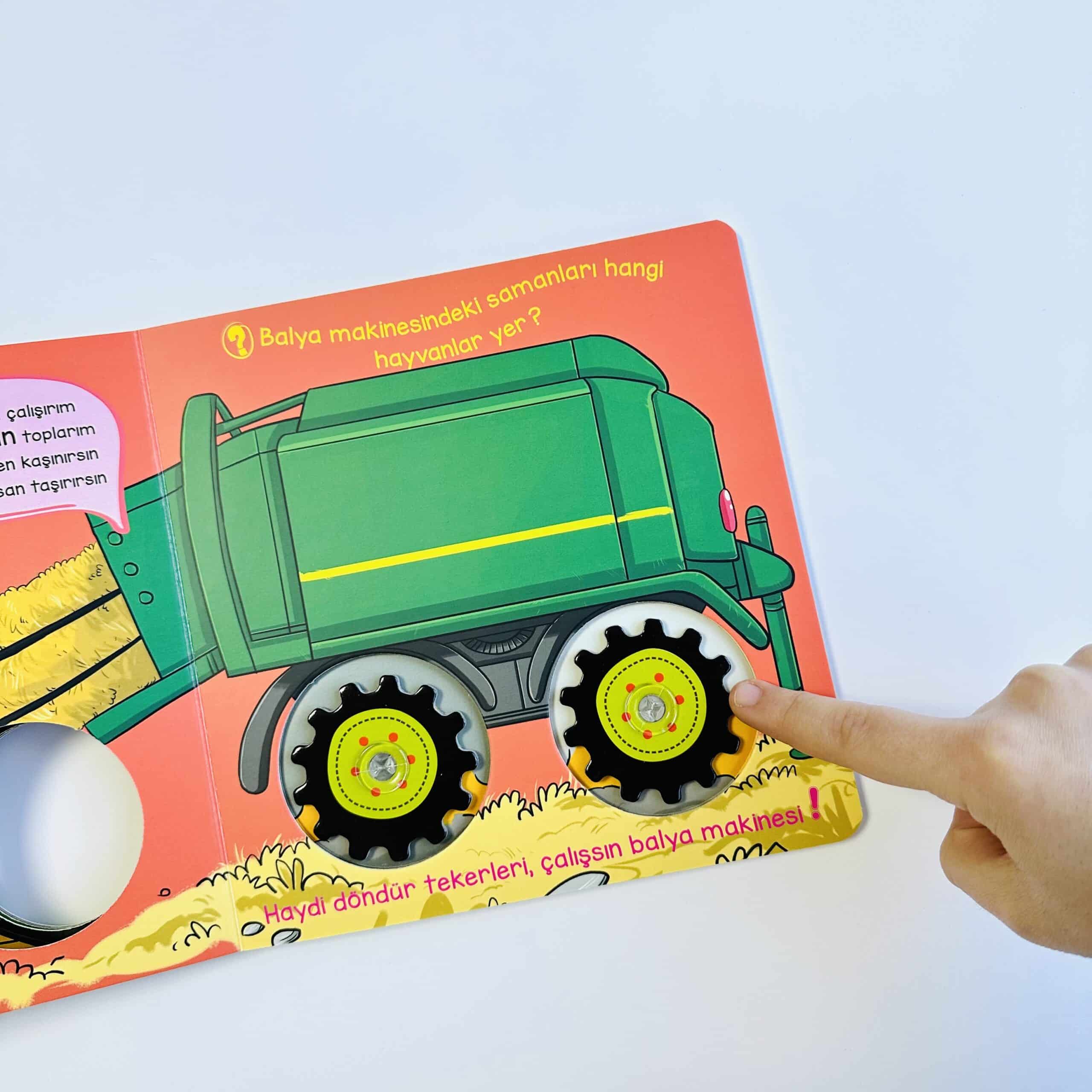 TEKERLEKLER İŞ BAŞINDA - Çalışkan Çiftlik AraçlarımÇiftlik araçlarının hareketli dünyasında bir yolculuğa çıkmaya ne dersin? Traktör, römork, biçerdöver, saman balyası makinesi, süt kamyonu ve daha fazlası bu kitaplarda. Haydi seçtiğin aracı sür, tekerlekleri özgürce döndür!