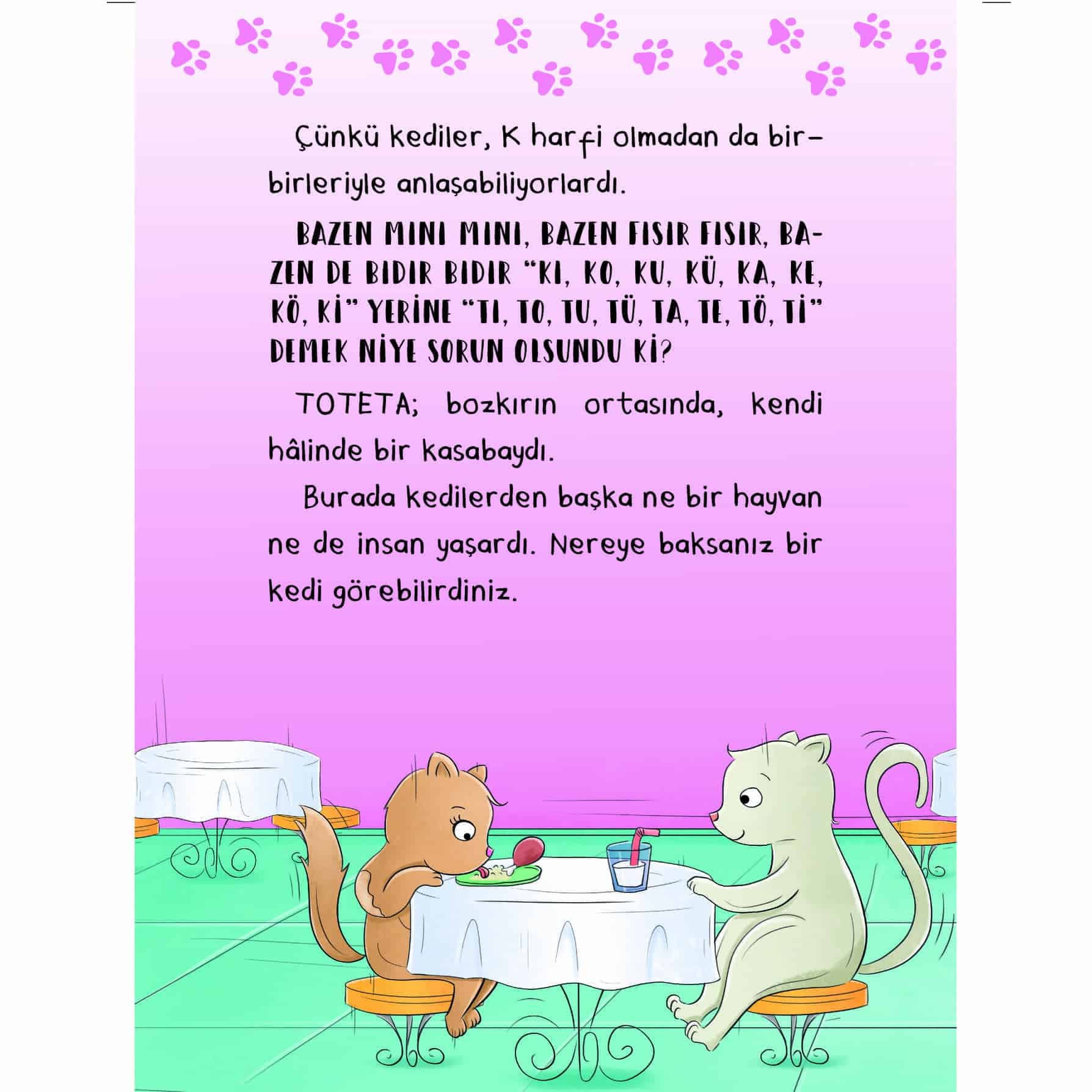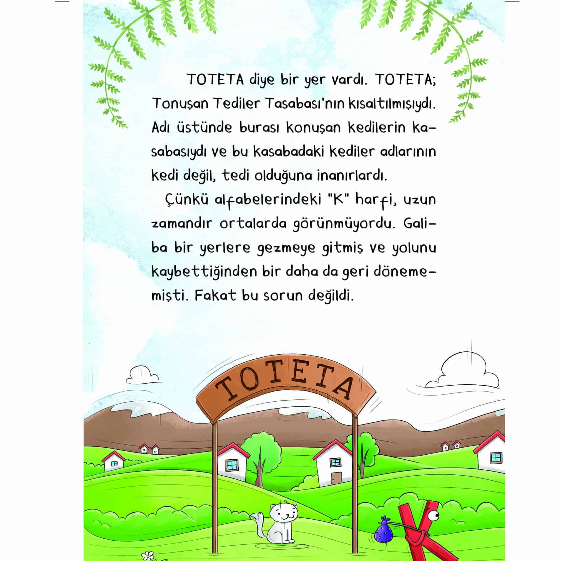 Toteta, sadece kedilerin yaşadığı bir kasaba. Bu mutlu kasabada yaşayan kedilerin tek bir sorunu var: O da “K” harfini söyleyememeleri. Çünkü “K” harfi Toteta’daki alfabede kaybolmuştur. Onun yerine bütün kediler “T” harfini kullanmaktadır ve kendilerini de “Tedi” sanmaktadırlar. Bir gün ormana çok uzaklardan misafirler gelir. Peki Totetalı Tediler, “K” harfi olmadan anlaşabilecekler mi? Öykü Makinesi, içindeki birbirinden farklı 10 öyküyle seni hayallerin ötesine götürecek. Makinelerin yönettiği şehirler, bulutların üstünde dolaşan çocuklar, misafirsever kediler ve daha pek çok kahraman, maceralarıyla seni öykülerin içine çekecek!