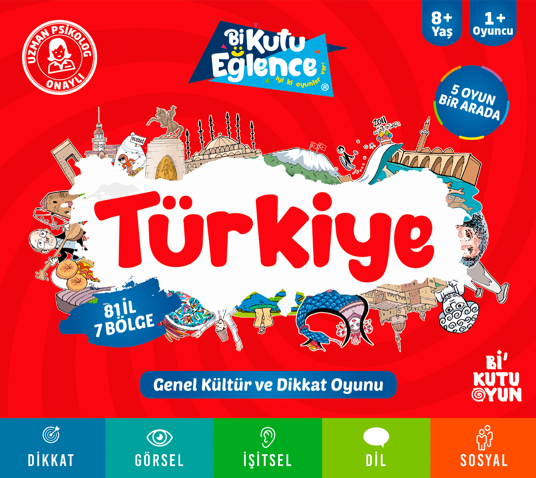 Ülkemizin tanıtıldığı, yedi bölgenin güzelliklerini işlendiği bir oyun. Bölgeler ve bu bölgelerdeki iller ele alınmış. İllerin tarihi, turistik, doğal güzellikleri dikkat, genel kültür ve hafıza düşünülerek işlenmiş Zil, kazanımlar, müfredat uyumluluğu bir yana eğlencesiyle de sevilecek bir settir.
