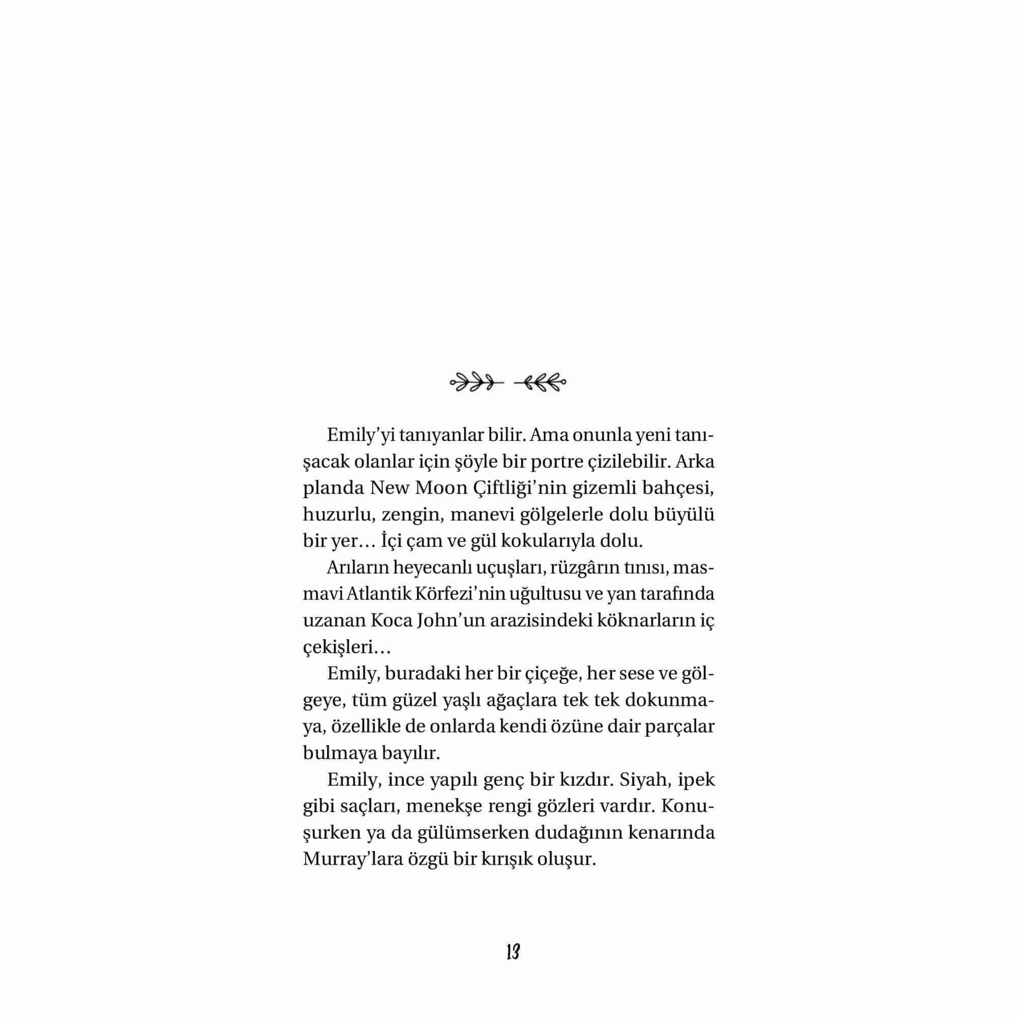 Dört yaşında annesini, on bir yaşında da çok sevdiği babasını kaybeden Emily, Prens Edward Adası’ndaki New Moon Çiftliği’nde yeni bir hayata başlamıştı.Serinin her kitabında yeni maceralara kanat açan Emily, bu kitapta yazmaya olan tutkusunu bir adım ileriye götürüyor. Yazıları artık hatırı sayılır dergilerde yayınlanmaya başlıyor.Shrewsbury’deki okulunu ve lise yıllarını geride bırakan Emily yeniden New Moon Çiftliği’ne döner. Yazılarında olduğu gibi iç dünyasında da bazı değişimler yaşar. O, artık kalbinde rengarenk kelebeklerin uçuşmaya başladığı bir genç kızdır. Hayatında aldığı yeni kararlar, yaşadığı yeni olaylar Emily’i derinden etkiler. Tüm dostlarının kendi hayat yolculuklarına çıkmaya başladığı dönemde, acaba Emily kendisi için doğru yolu bulabilecek mi? Yüzleşmesi gereken problemlerin karşısına çıkacak cesareti gösterebilecek mi?Bu kitapta Emily, daha duygusal bir serüven yaşıyor ve umut mevsiminin çiçekleri birer birer açılıyor.