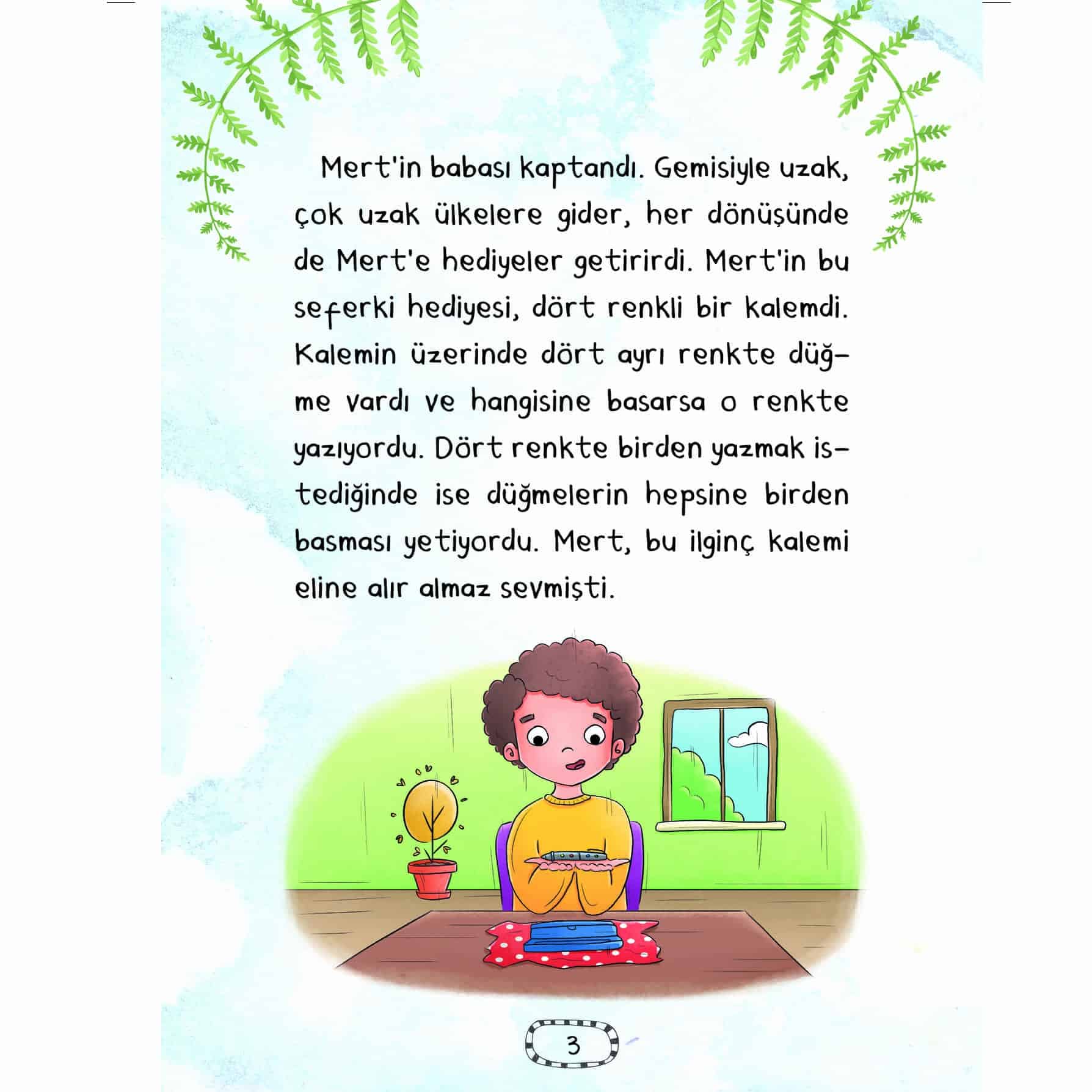Mert'in babası kaptandır. Bir gün uzaklardan ona dört renkli bir kalem getirir. Mert, bu kalemle resimler çizer ve her defasında kendini çizdiği resmin içinde bulur. Böylece bir gün resmini çizdiği gemiyle yolculuğa çıkar, diğer gün kiraz bahçesine gider ve başka bir gün tamamen ortadan kaybolur. Sen de Mert'e eşlik etmek ister misin? Öykü Makinesi, içindeki birbirinden farklı 10 öyküyle seni hayallerin ötesine götürecek. Makinelerin yönettiği şehirler, bulutların üstünde dolaşan çocuklar, misafirsever kediler ve daha pek çok kahraman, maceralarıyla seni öykülerin içine çekecek!