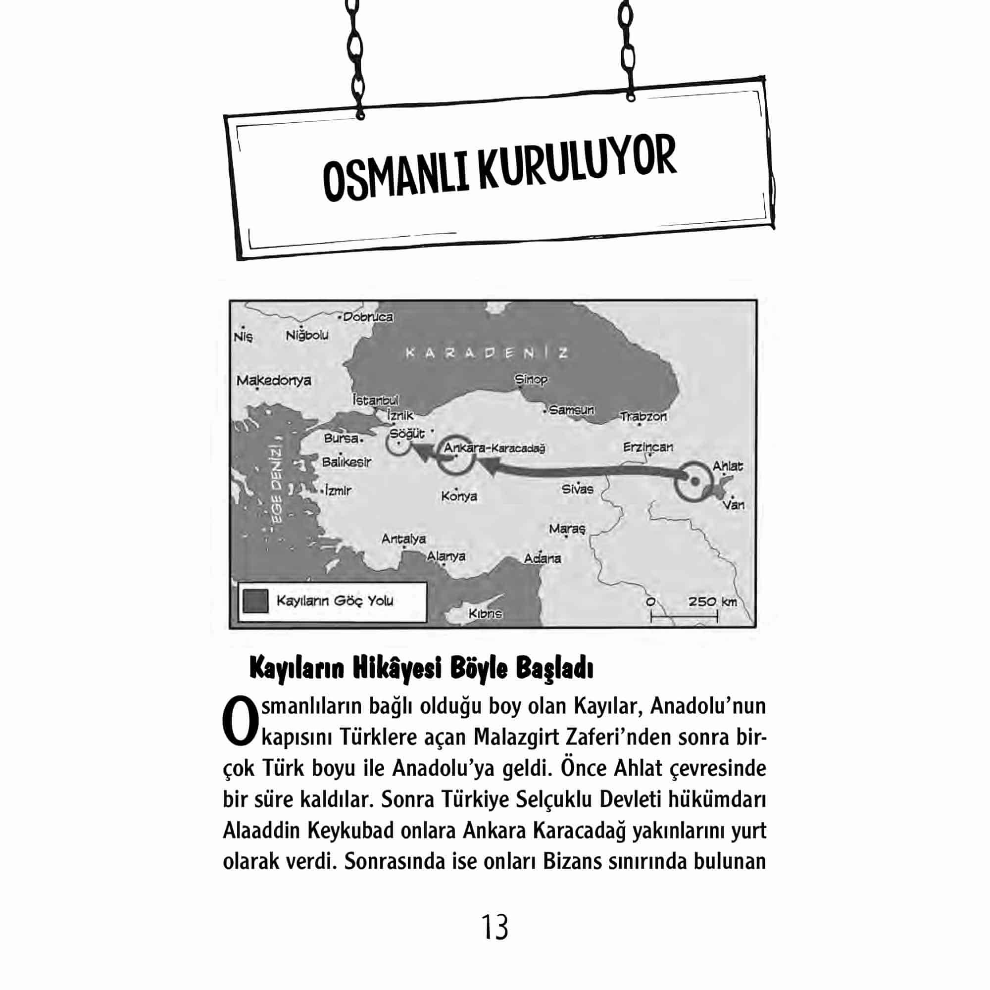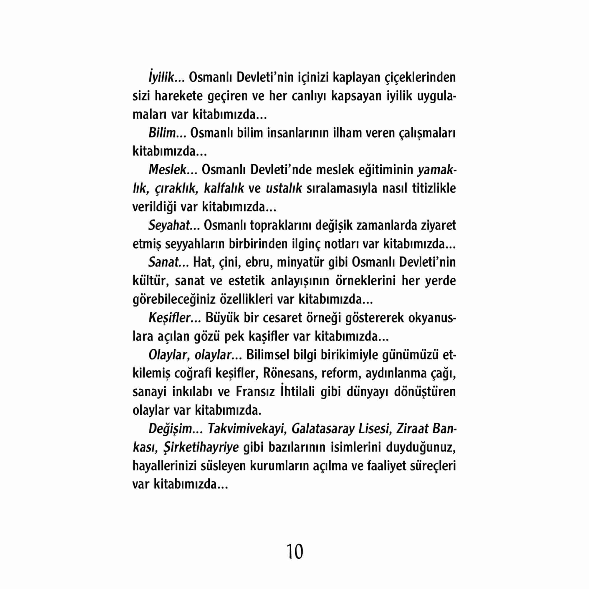 Osmanlı dönemine bir kitapla hâkim olmaya ne dersin? Cevabın “Evet” ise “Ver elini Osmanlı!” diyelim ve 700 yıl öncesine doğru bir zaman yolculuğuna çıkalım. Bu yolcukta muhteşem Osmanlıları daha yakından tanıyacak, kudretli padişahlarla selamlaşacaksın. Zorlu savaşlarda zaferler kazanıp o döneme dair her detayı avucunun içi gibi öğreneceksin. Bu kitap senin rehberin olacak. Hem eğleneceksin, hem bilgi hazineni geliştireceksin hem de derslerin için önemli bir yardımcı elde etmiş olacaksın. Haydi, ver elini; Osmanlı dönemine gidiyoruzzz!
