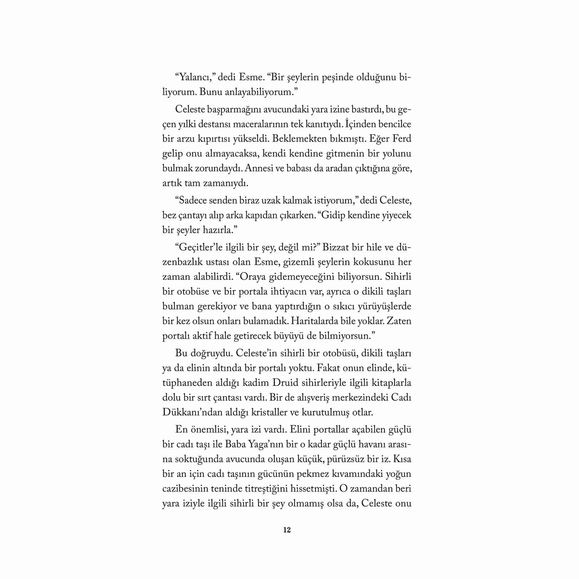 Yürekleri ağızlara getiren aksiyonlu sahneler ve unutulmaz karakterlerle dolu halk hikâyelerinden ilham alan bu kitap, 4 kitaplık fantastik seri Yedi Diyar Geçidi’nin ikinci cildi. Celeste geçen sene başından geçen destansı maceranın yeniden yaşanmasını beklerken Diyarlar Geçidi’nde bir isyan patlak verir. Ferd’ün görevi ise tüm bunların arkasında kimin olduğunu bulmaktır. Orman Diyarı’nda bir saldırı haberi alındığında, Celeste nihayet başka bir macera için şansını yakalar. Ancak daha fazlasını öğrenmek için araştırmaya başladıklarında geçit onları tropik bir ormana değil, dondurucu bir göle götürür. Her nasılsa kendilerini tehlikelerle dolu Buzlar Diyarı’nda bulurlar. Daha da kötüsü, başka bir cadı taşı tehdit altındadır. Maceracı ekip cadı taşını düşmanlarından önce bulmakta ve Celeste de geçmişteki kahramanlıklarının bir kerelik olmadığını kanıtlamaya kararlıdır. Ancak son macerasından kalan bir hatıra, kurtarma görevini baltalayınca, Celeste bu kez başarısız olmalarının sebebinin kendisi olup olmayacağından şüphelenmeye başlar.