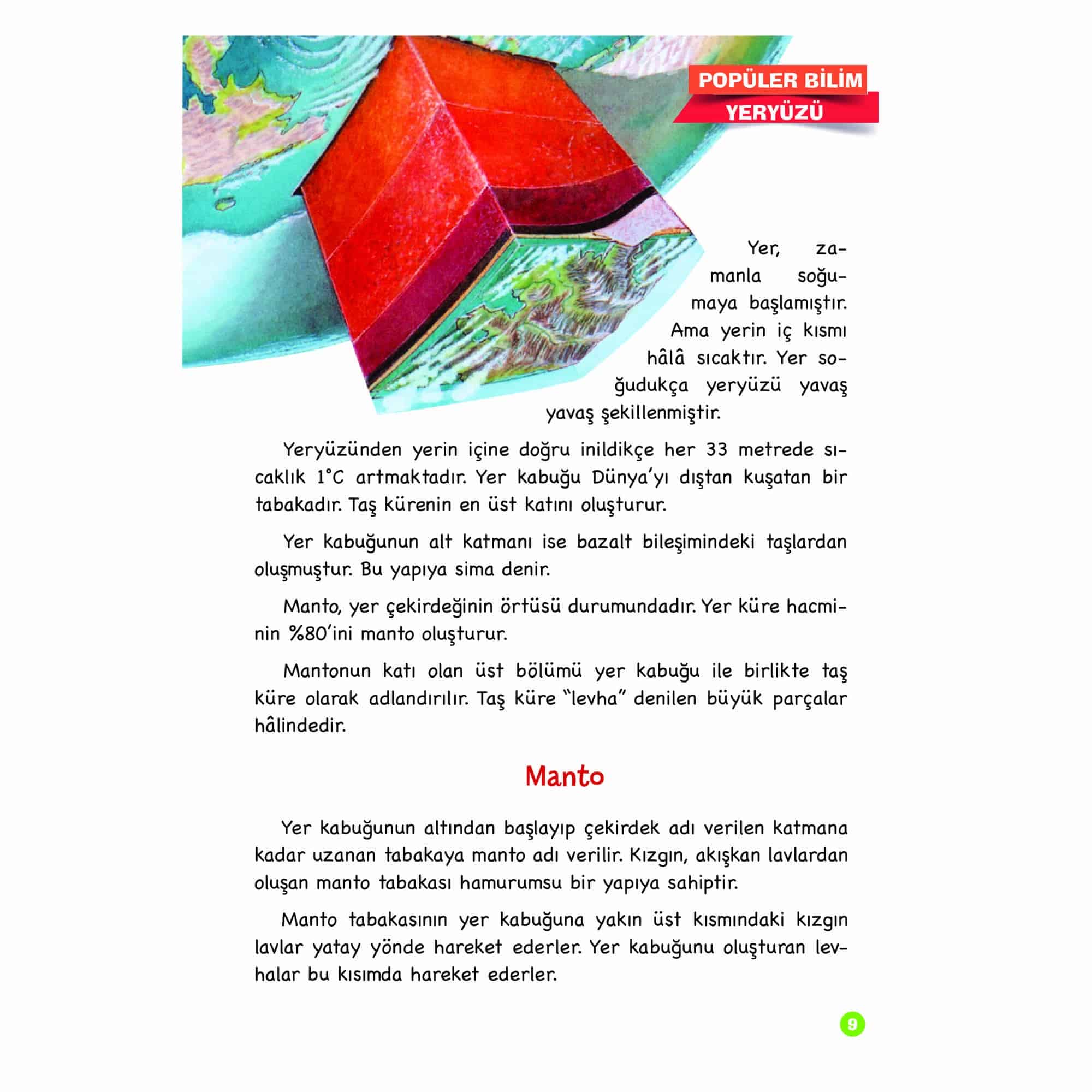 Sevgili Çocuklar, Timaş Yayınları’ndan çıkan Popüler Bilim – Coğrafya seti “Yeryüzü” siz çocuklar için hazırlanmış 48 sayfalık bir bilim kitabı… Açık, anlaşılır ve eğlenceli bir üslupla yazılmış. Metinler MEB öğretim programına uygun şekilde hazırlanmış, bilimsel danışman kontrolünden geçmiş, ayrıca kuşe kâğıda baskılı kitaplarda açıklayıcı, rengârenk resimlere yer verilmiş. Çocuklar, “Yer Kürenin İçinde Neler Oluyor?, Yerin Altında Neler Var?, Mineralleri Tanıyalım, Dağlar, Yanardağlar, Çöller, Mağaralar” gibi pek çok sorunun cevabını bu kitapta bulacaksınız. Bu kitaplar onlara bilim sevgisi aşılayacak… Bu serinin kitapları, dünyamızı, yaşadığımız coğrafyayı, açık, anlaşılır ve eğlendirici bir üslupla anlatıyor.