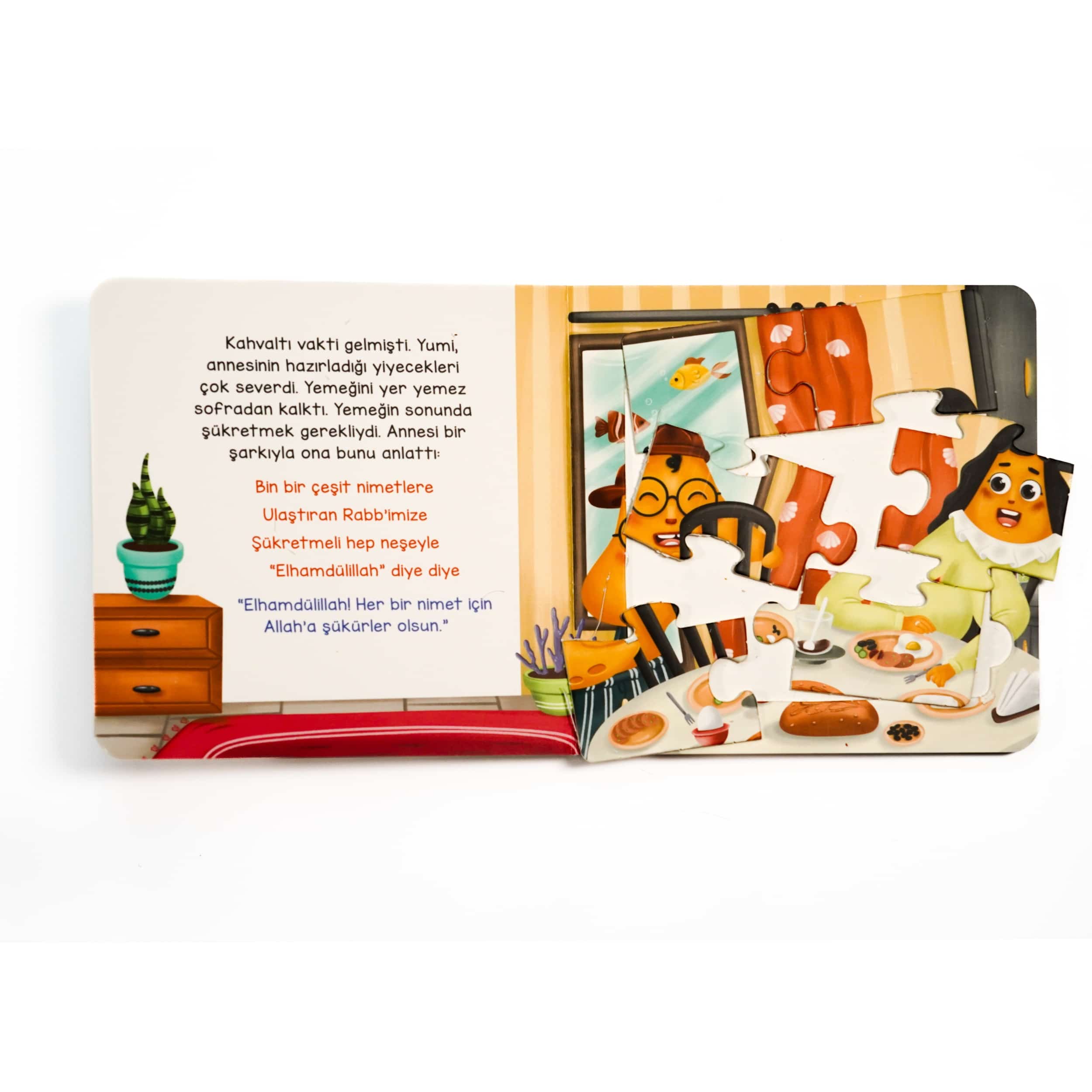 Şükretme bilinci kazandıran ve "Elhamdülillah" kelimesini öğreten "Yapbozlu" bu kitap çocukların ince motor becerilerinin gelişmesine de destek verdiği için önemlidir.