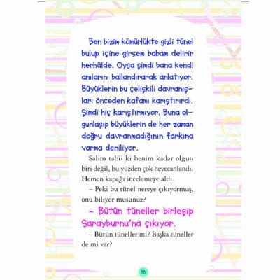 “Bugün gezip fotoğraflar çekeceğimiz bölge ağzına kadar tarihi eser dolu. Gez gez bitmez. Şimdiki hedefimiz Yerebatan Sarayı’ymış. Yerin altına yapılmış bir saray herkesin ilgisini çeker. Benim ilgimi de çekti. Yalnız yer altı tünelleri ve yer altı sarayları olduğuna göre benim şehrimin yer altına bayağı meraklı olduğu da dikkatimden kaçmadı tabii [...]