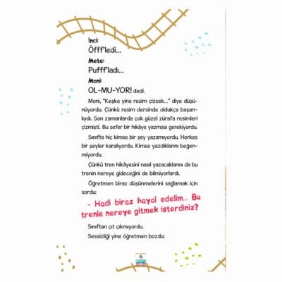 Benim Zürafam Uçabilir kitabının yazarından yine muhteşem bir macera!  Hayallerinize giden bir trene binmeye hazır mısınız? Öğretmen, bu sefer de sınıfa bir tren hikâyesi yazma görevi verdi. Bu bir ekip çalışması olacaktı. Moni ve arkadaşları sıra dışı bir tren hikâyesi yazmak için heyecan dolu bir maceraya başladı. Bu tren Cumburlop Kasabası’na [...]